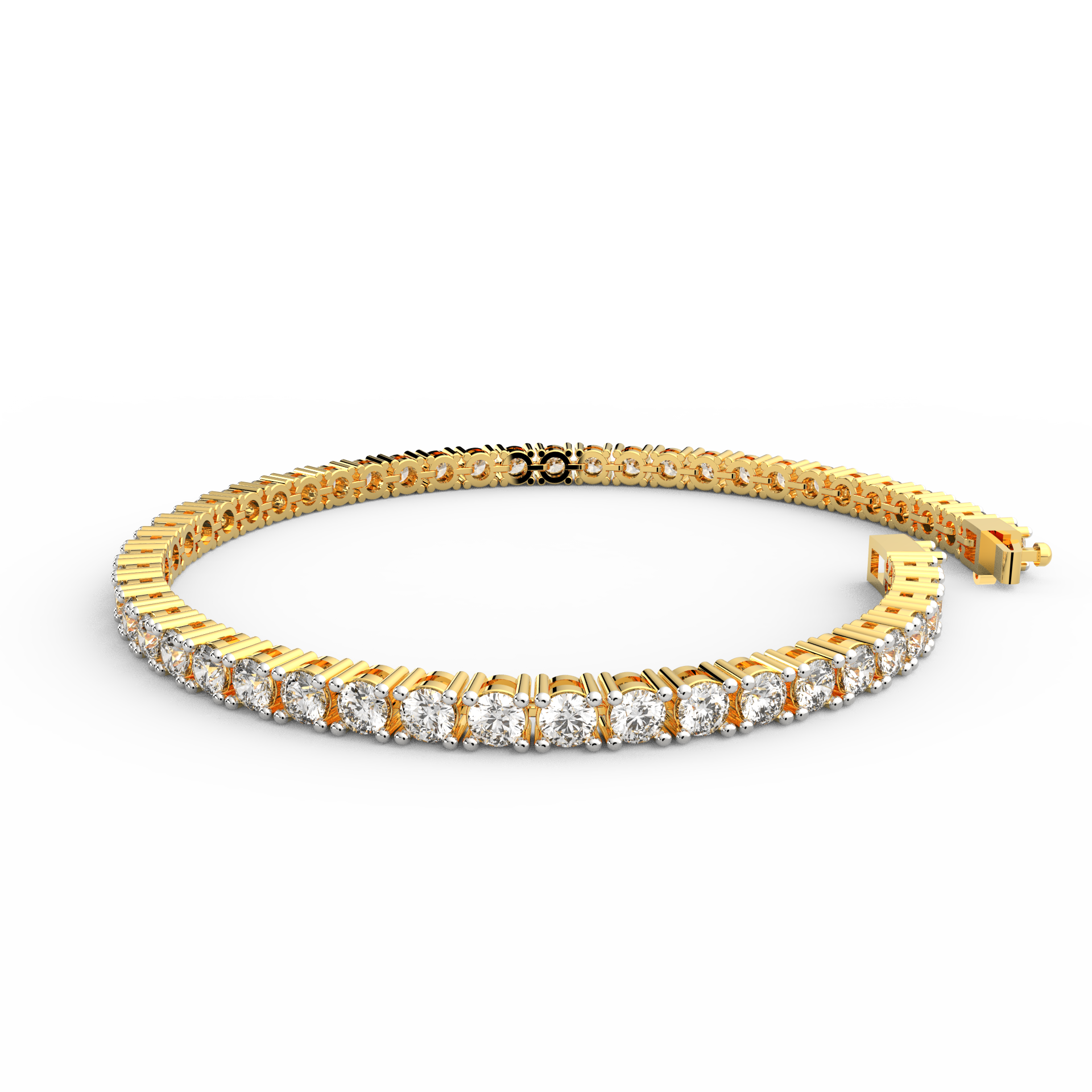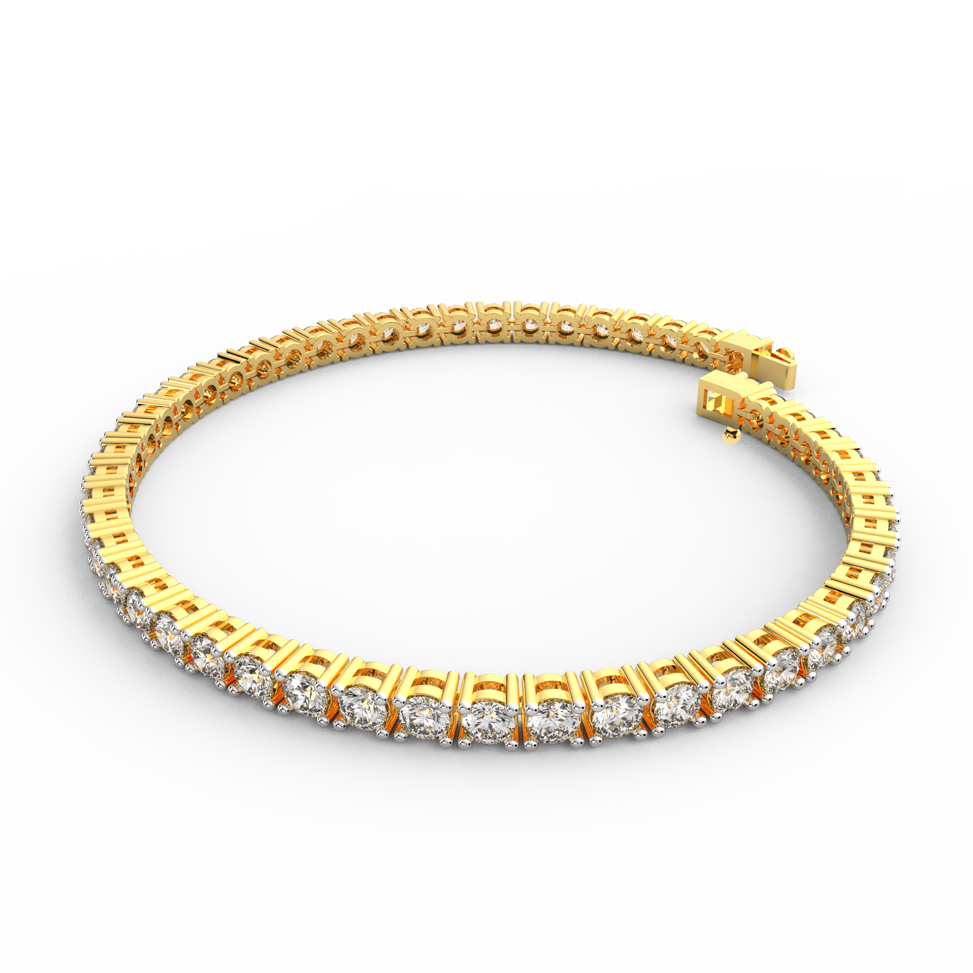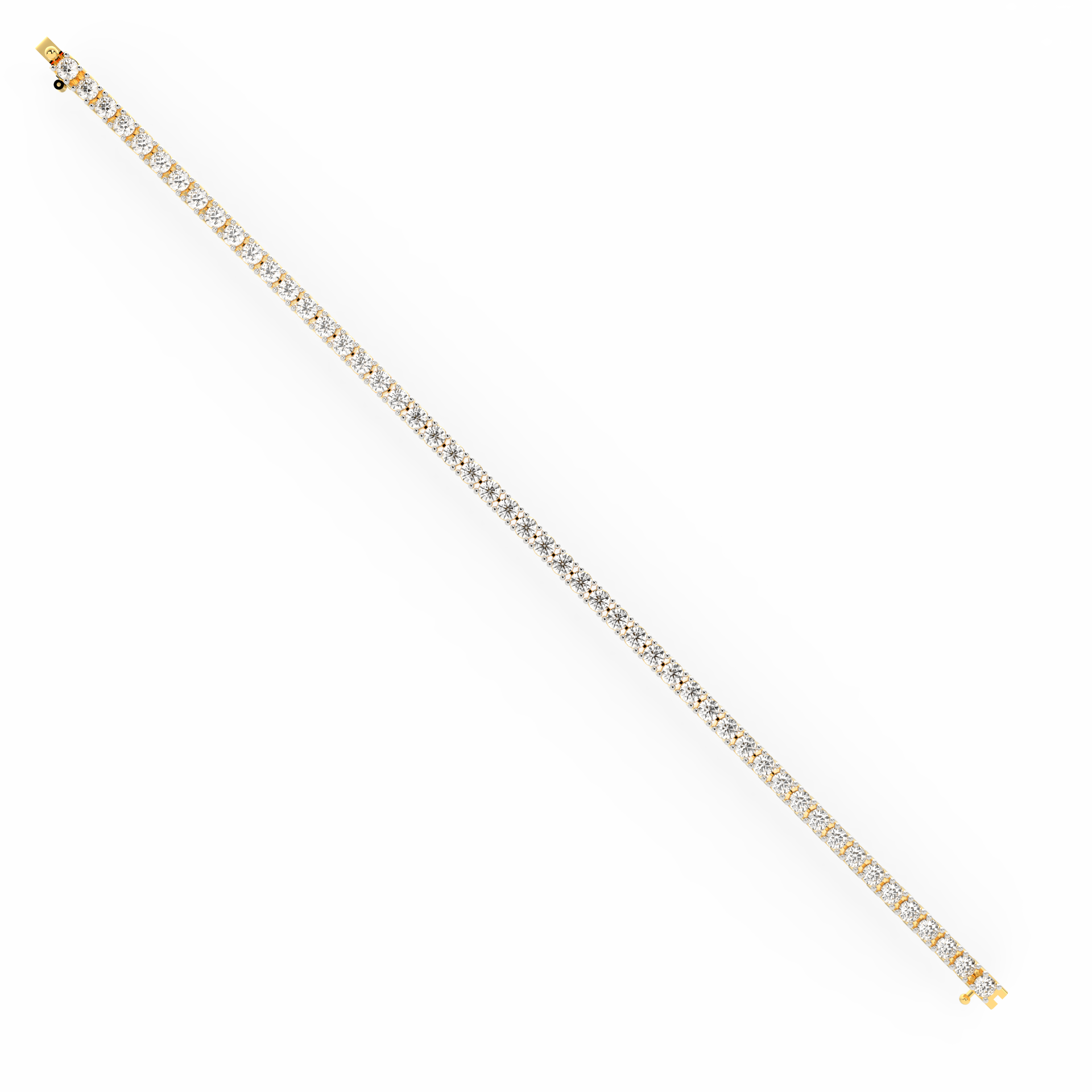 This lab grown diamond tennis bracelet is a timeless symbol of balance and brilliance. It features 51 perfectly matched round-cut diamonds totaling 5.64 carats. Each diamond is prong-set to enhance sparkle and movement. The warm gold tone adds glow and grace, making it feel light, elegant, and radiant.