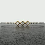This lab grown diamond mangalsutra bracelet redefines tradition with modern style. The Twilight Luster design features alternating black beads and diamonds across a polished gold link. It’s bold, graceful, and perfect for every mood.