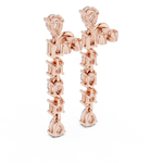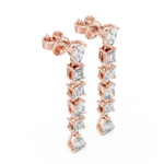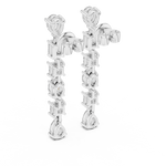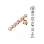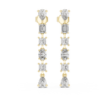 Architectural elegance meets fluid expression in these lab grown diamond dangler earrings, designed as a refined vertical journey of contrasting diamond cuts. Each segment introduces a new shape—pear, emerald, princess, oval—creating a deliberate rhythm that feels modern, balanced, and visually engaging. The elongated silhouette draws the eye effortlessly, offering a statement that is structured yet graceful.