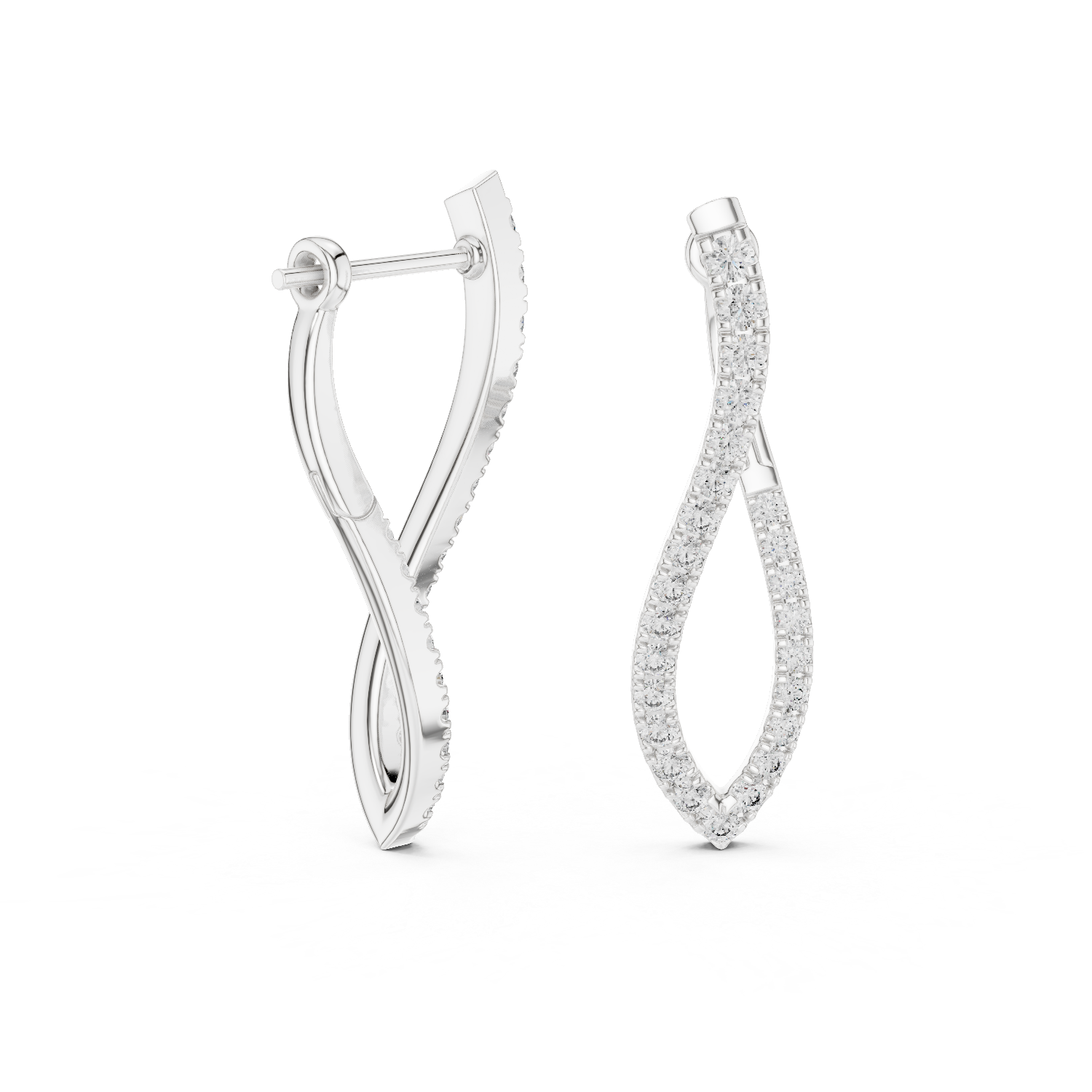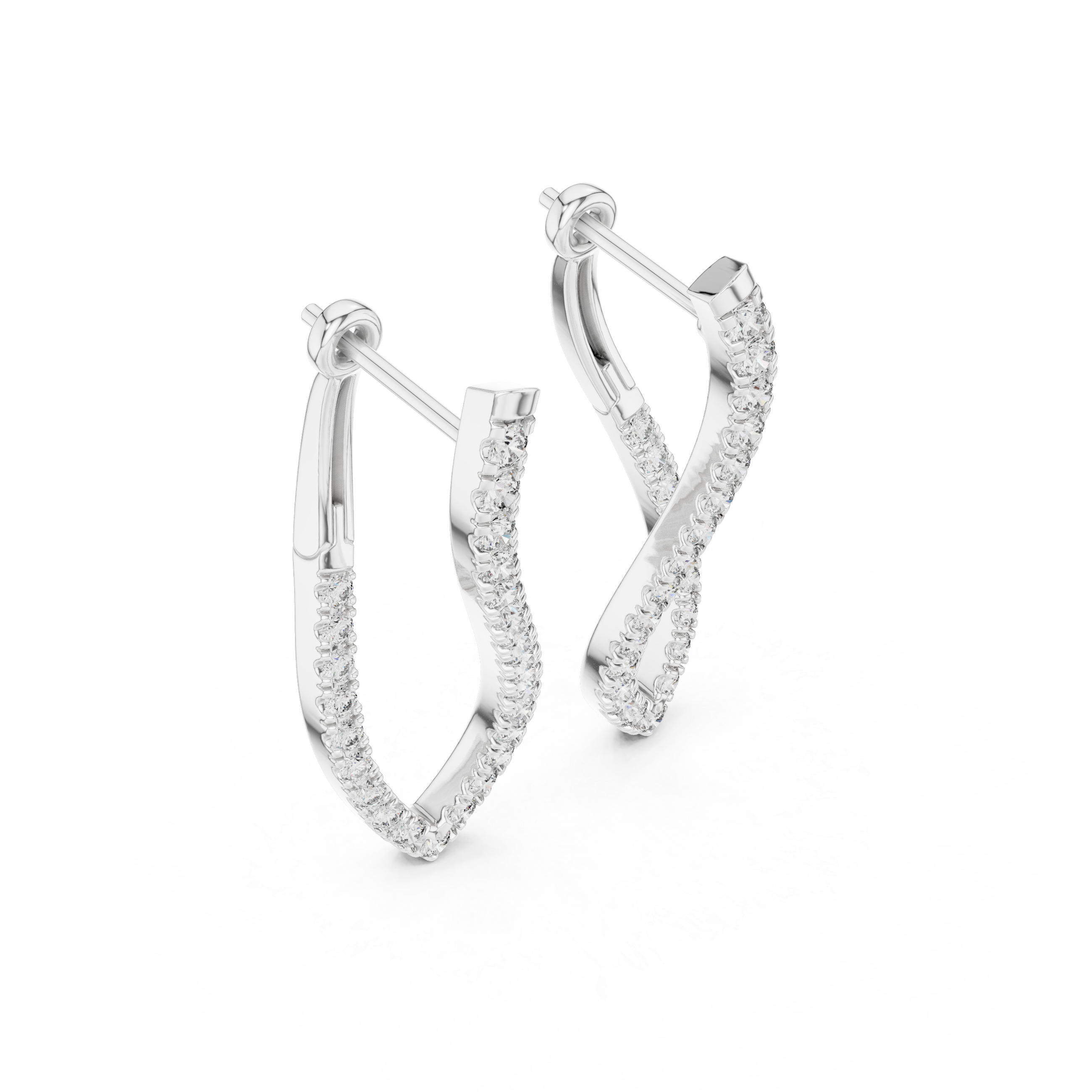 The lab grown diamond drop earrings are designed to celebrate movement, balance, and modern femininity. This sculptural pair features an elegant open-drop silhouette traced with a continuous line of round lab-grown diamonds. The gently tapered form elongates the profile, creating a graceful flow that feels light, fluid, and refined.