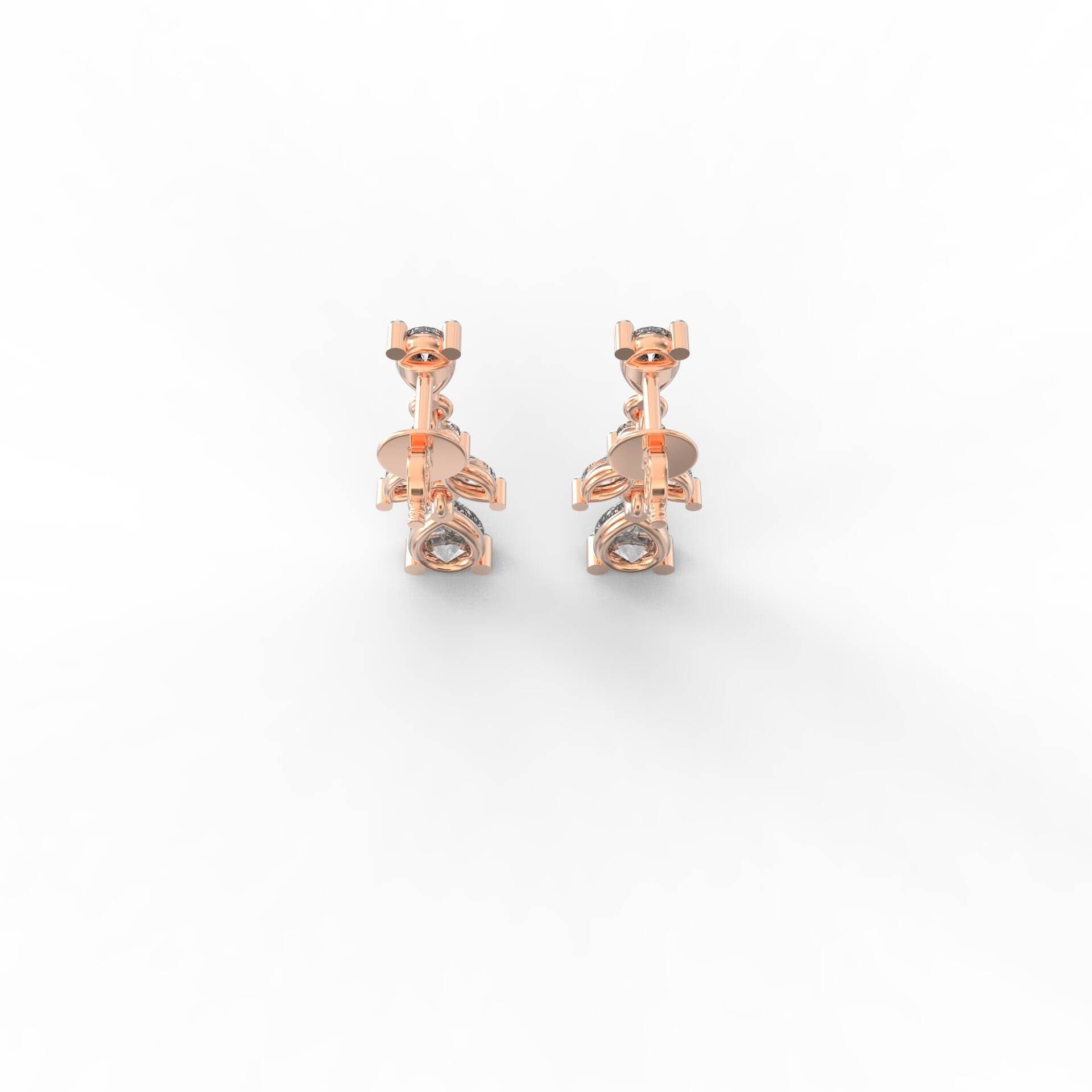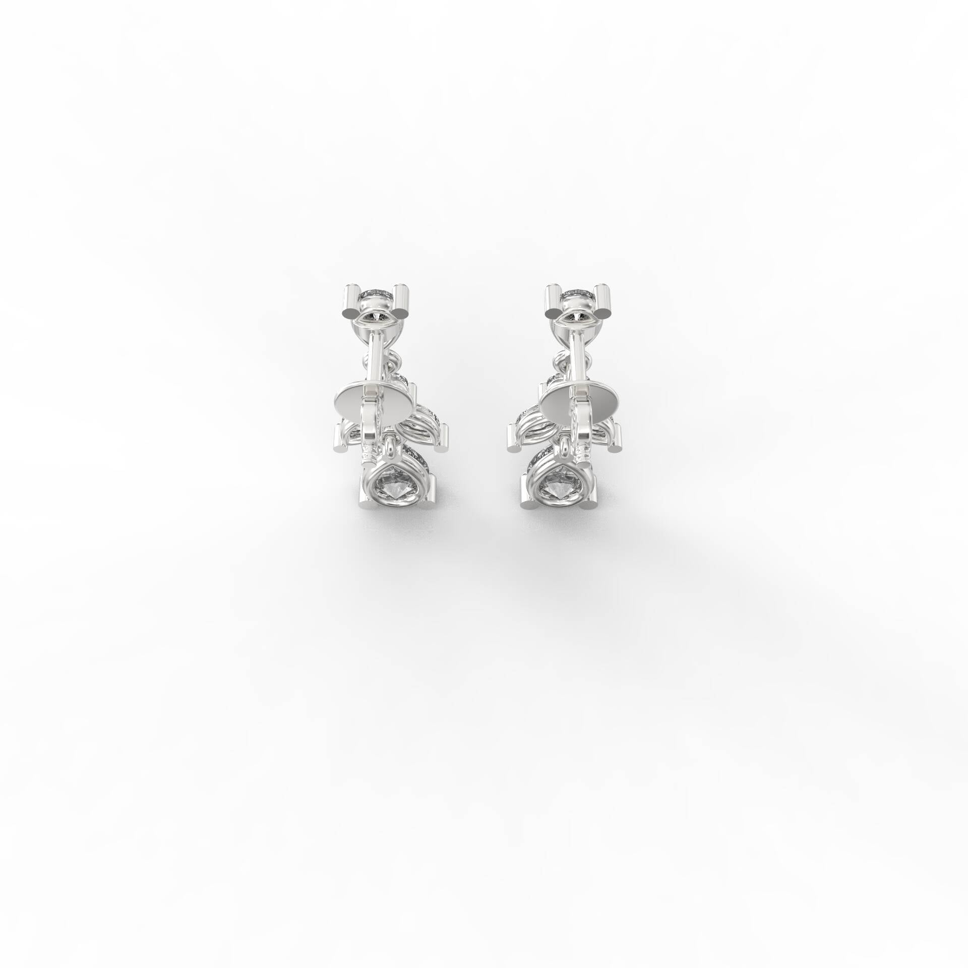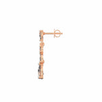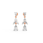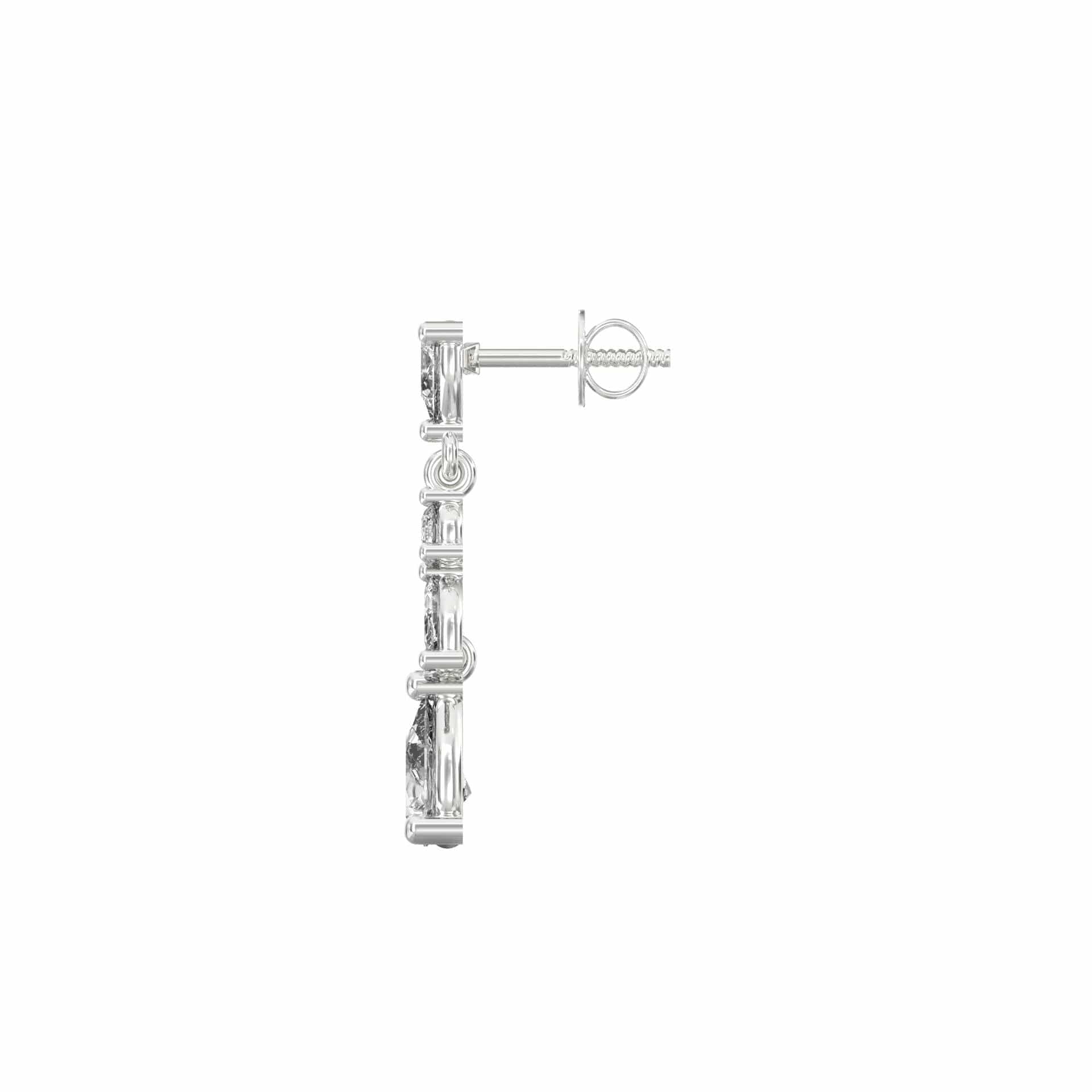 These elegant drop earrings showcase a cascading leaf-inspired design, crafted with pear, marquise, and round motifs. The visual symmetry and delicate articulation reflect the essence of blooming foliage. Each segment transitions gracefully, ending in a sparkling pear-shaped base that adds balance and sophistication to the silhouette.