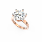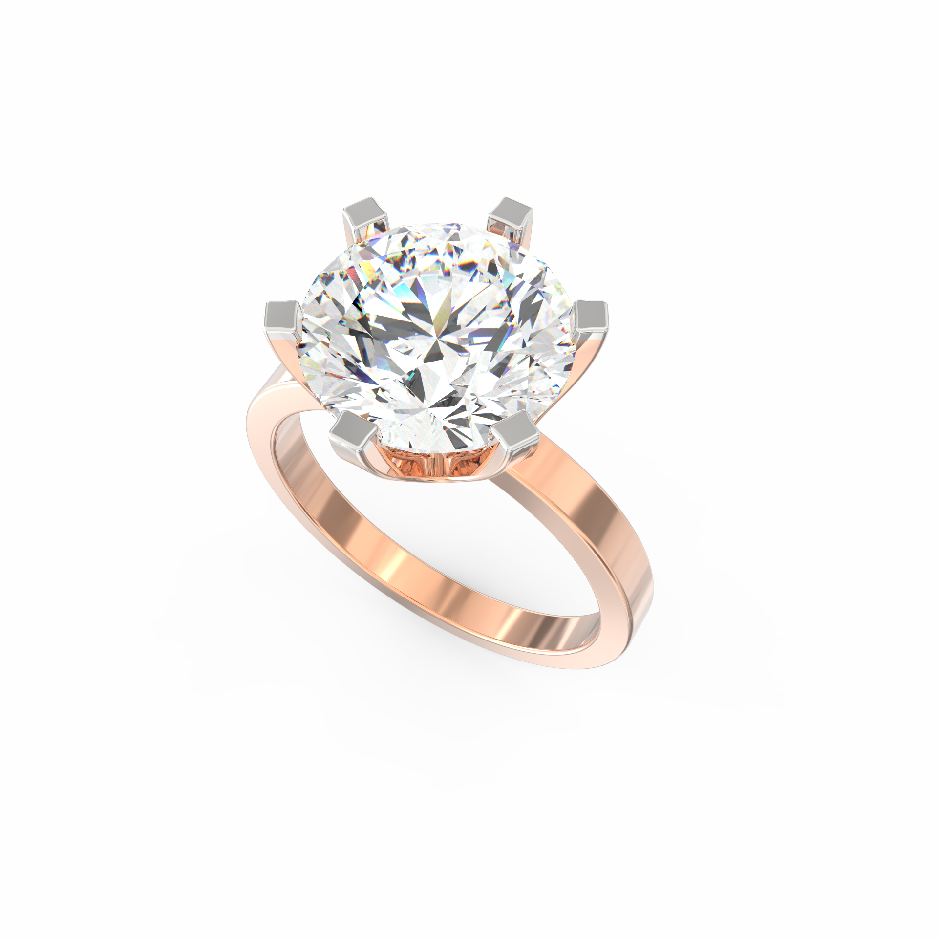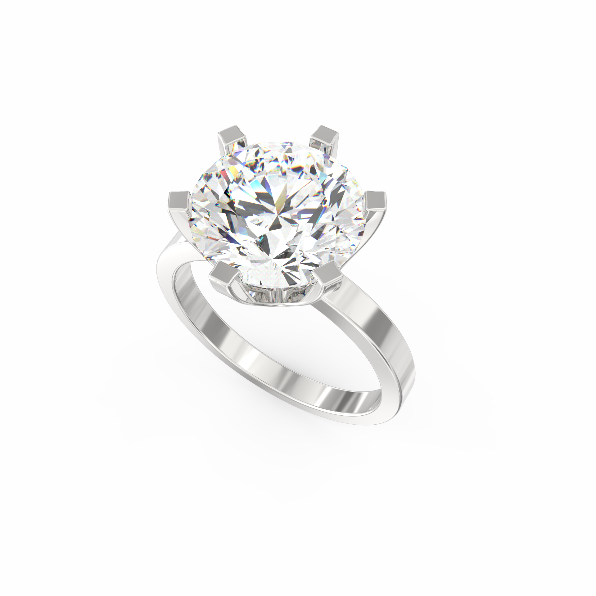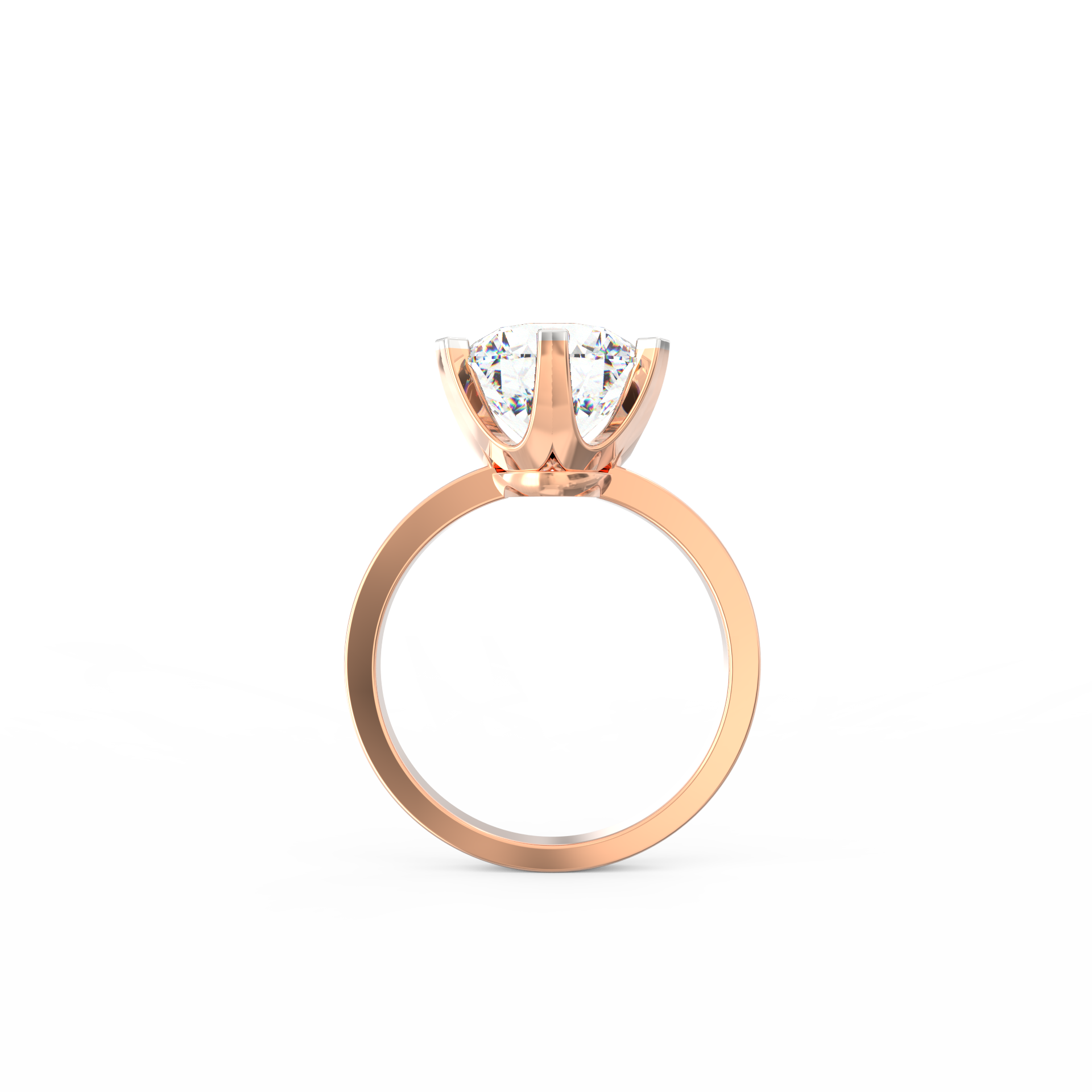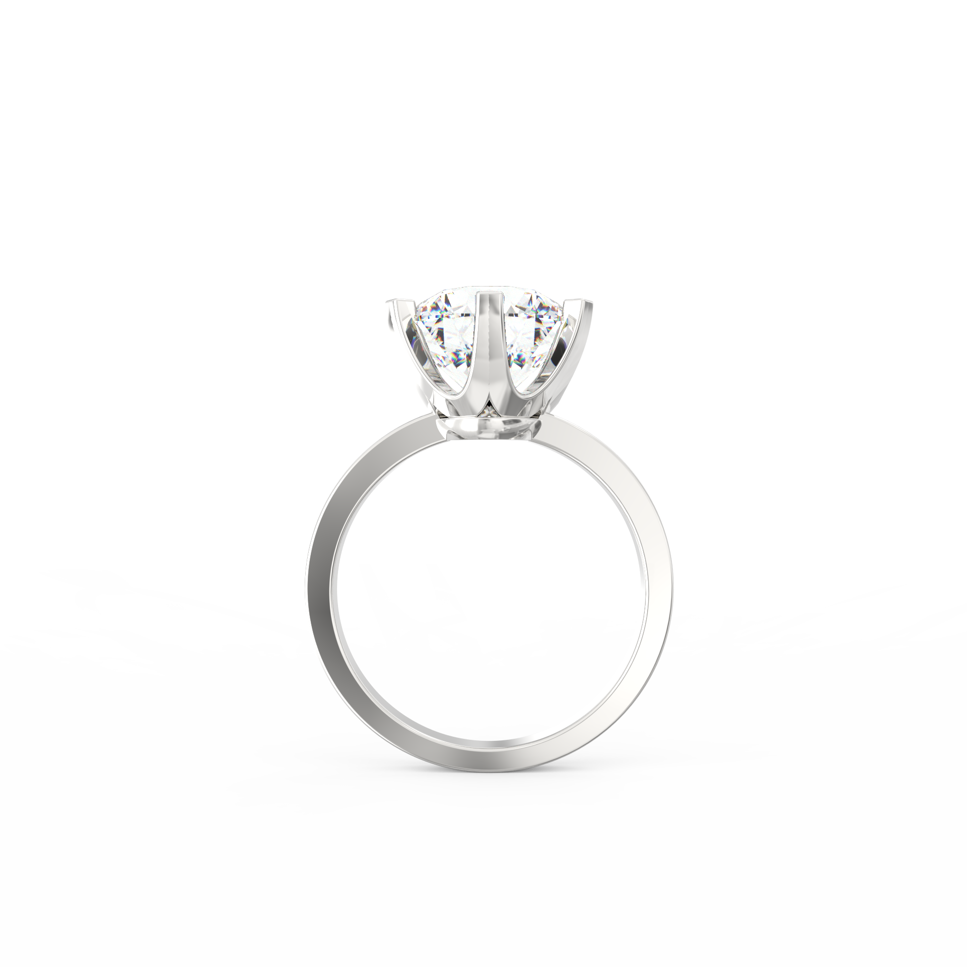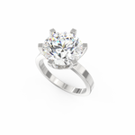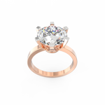 The Astraea lab grown diamond ring brings together clarity, strength, and celestial inspiration. Its name comes from Astraea, the Greek goddess who ascended to the stars, and the ring reflects this sense of light and purity. At the center rests a 3.15 Ct round-cut lab-grown diamond, held securely in a six-prong setting that lifts the stone and allows light to travel through every facet. Because of this elevated structure, the diamond shows remarkable brightness from all angles.