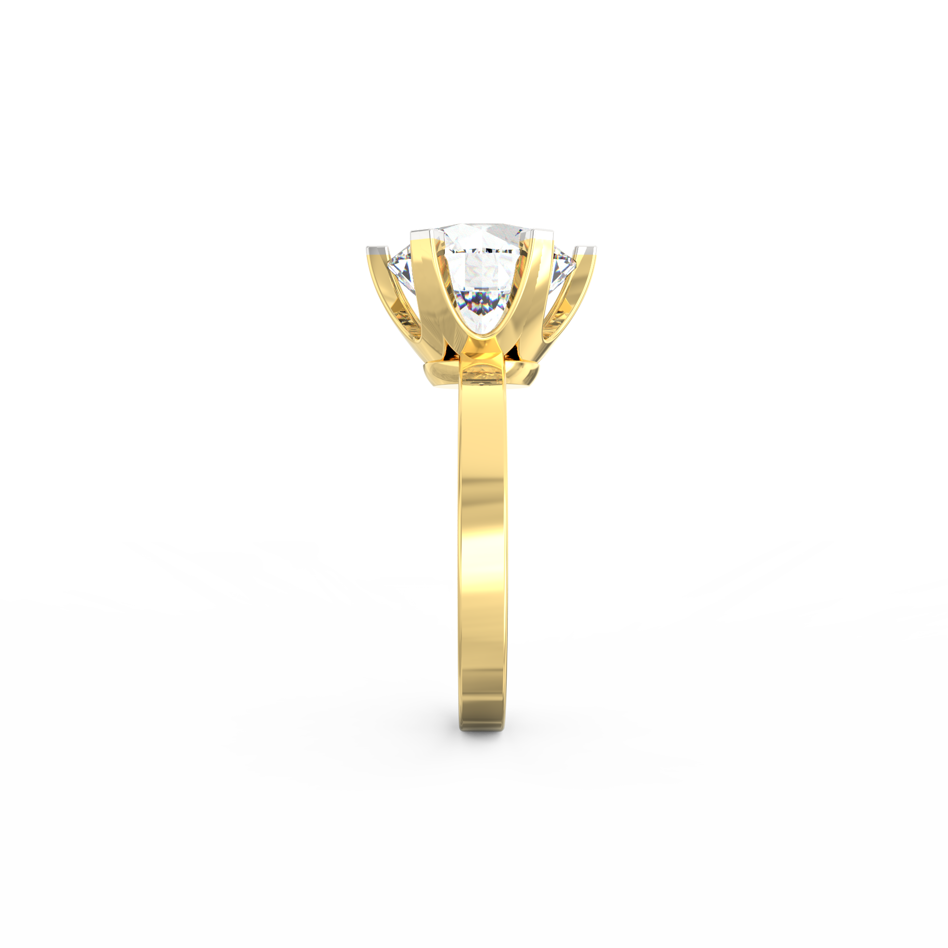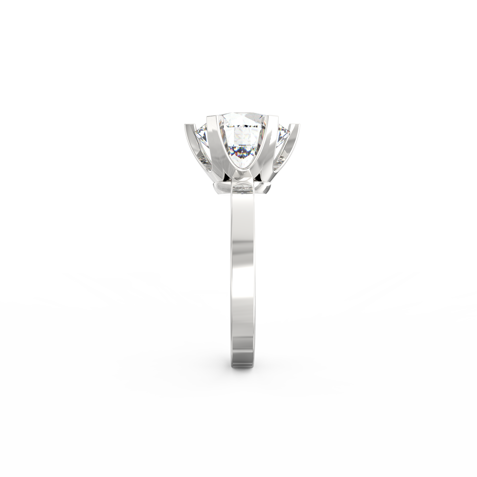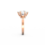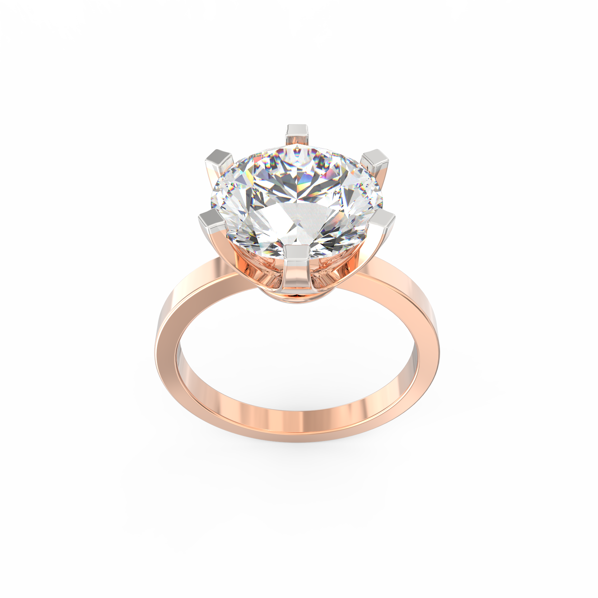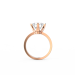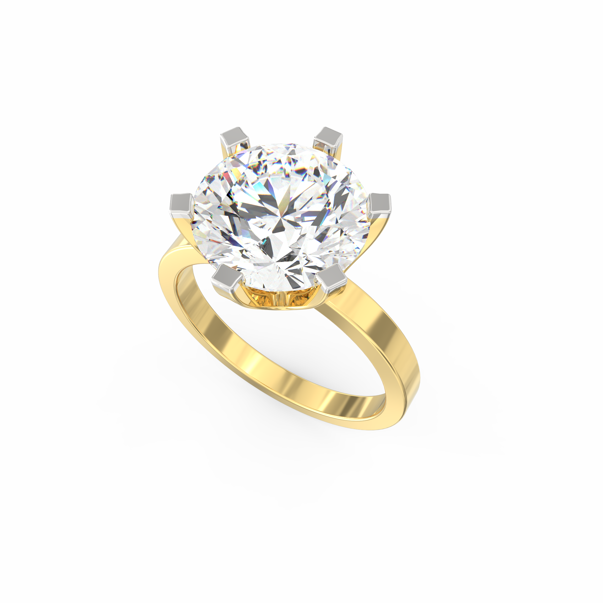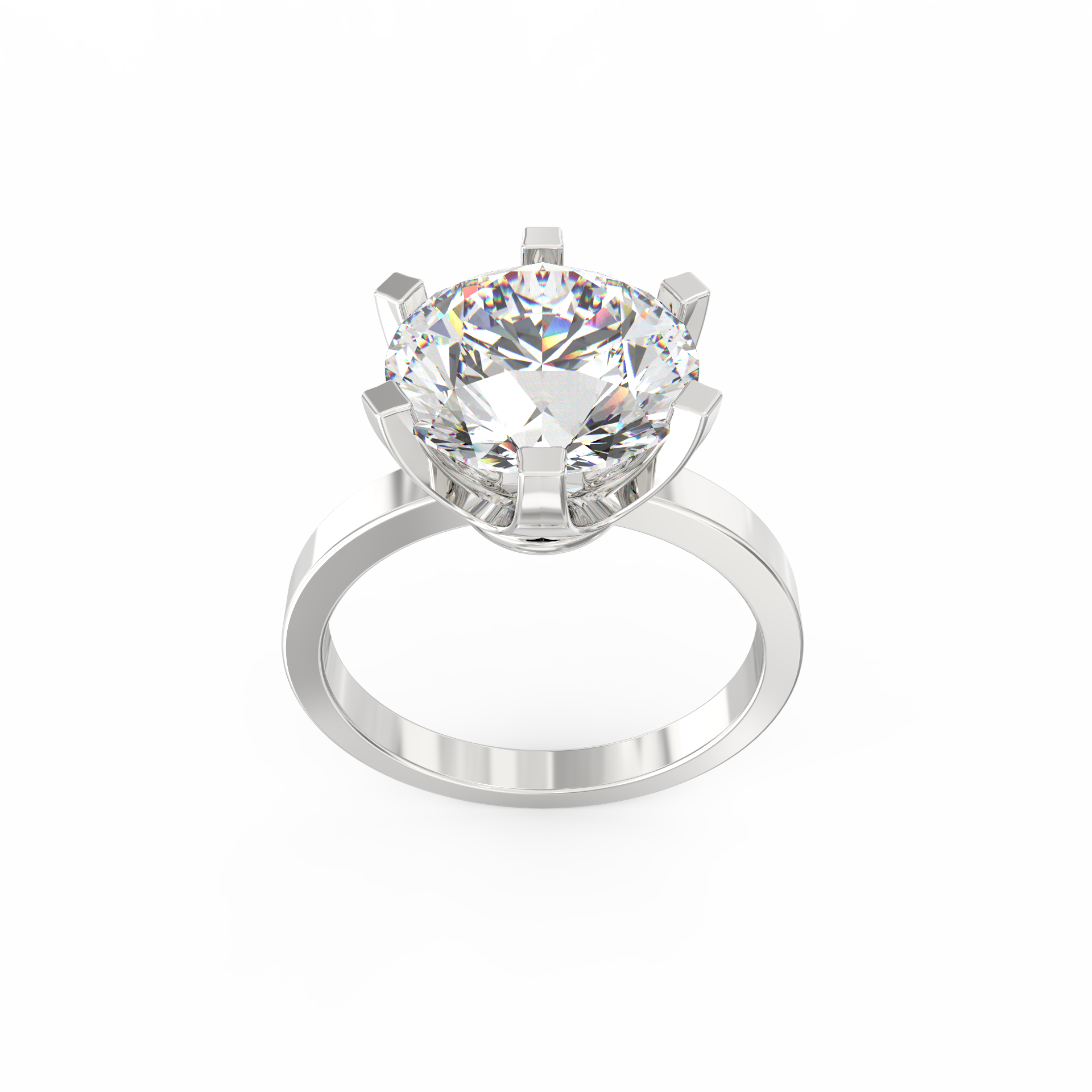 The Astraea lab grown diamond ring brings together clarity, strength, and celestial inspiration. Its name comes from Astraea, the Greek goddess who ascended to the stars, and the ring reflects this sense of light and purity. At the center rests a 3.15 Ct round-cut lab-grown diamond, held securely in a six-prong setting that lifts the stone and allows light to travel through every facet. Because of this elevated structure, the diamond shows remarkable brightness from all angles.