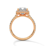 Halo and pavé band design for radiant allure