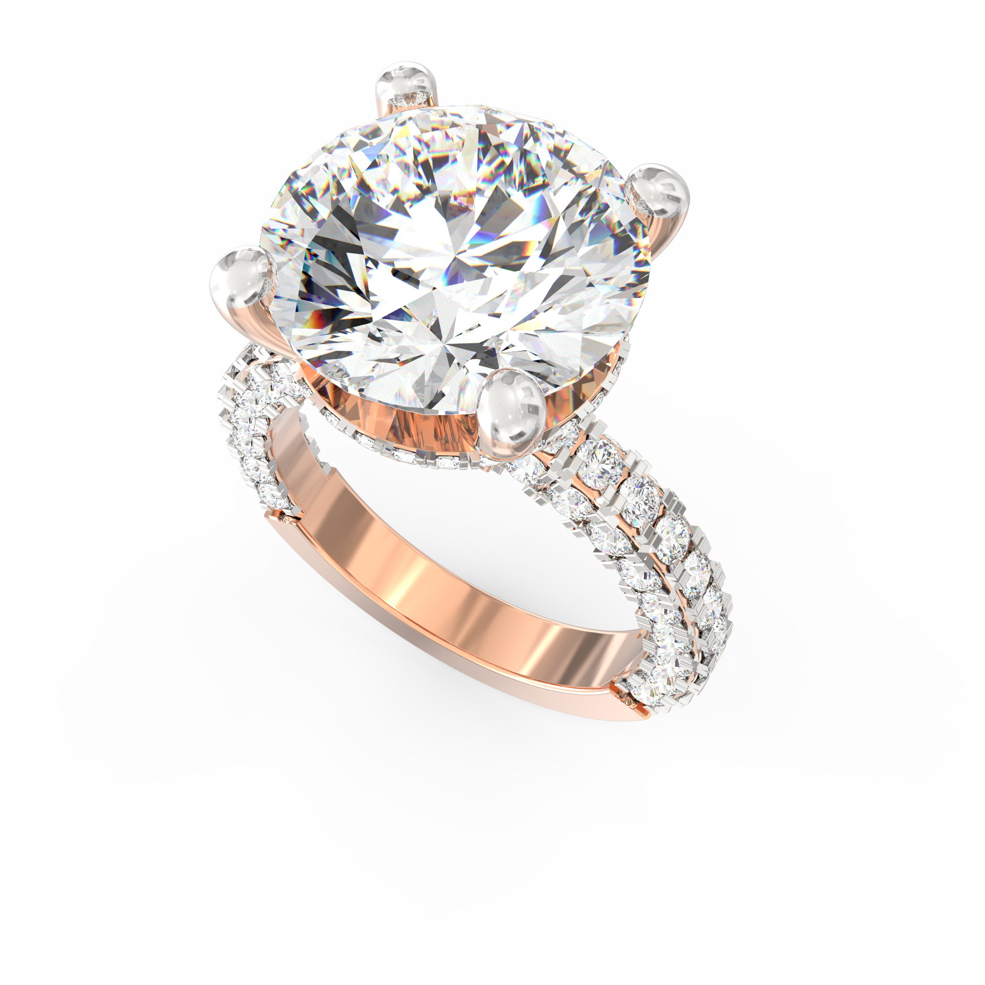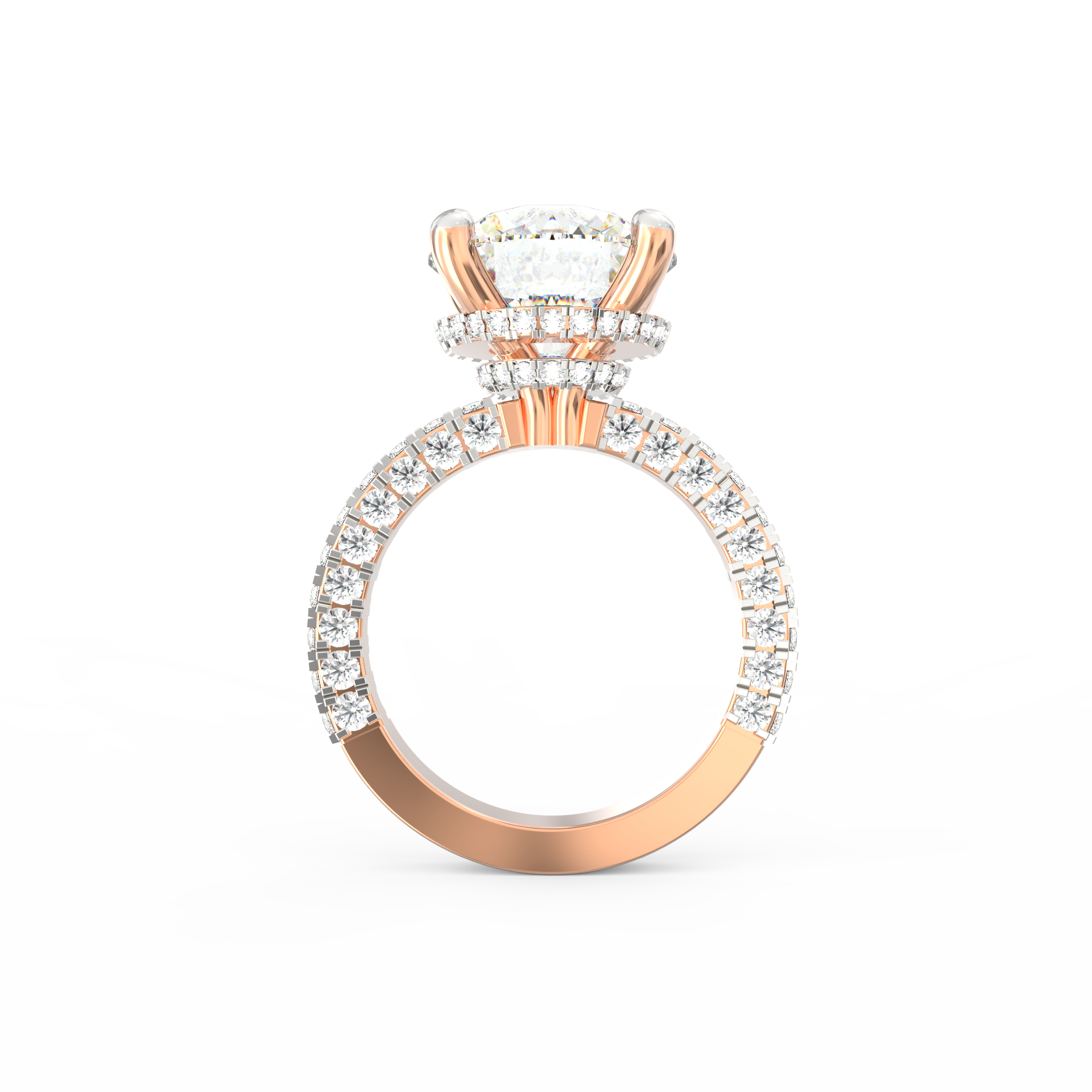 At its core sparkles a breathtaking 5.85 Ct round-cut lab grown diamond — a masterpiece of fire, clarity, and perfection.