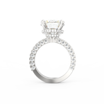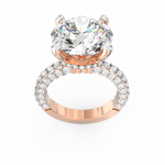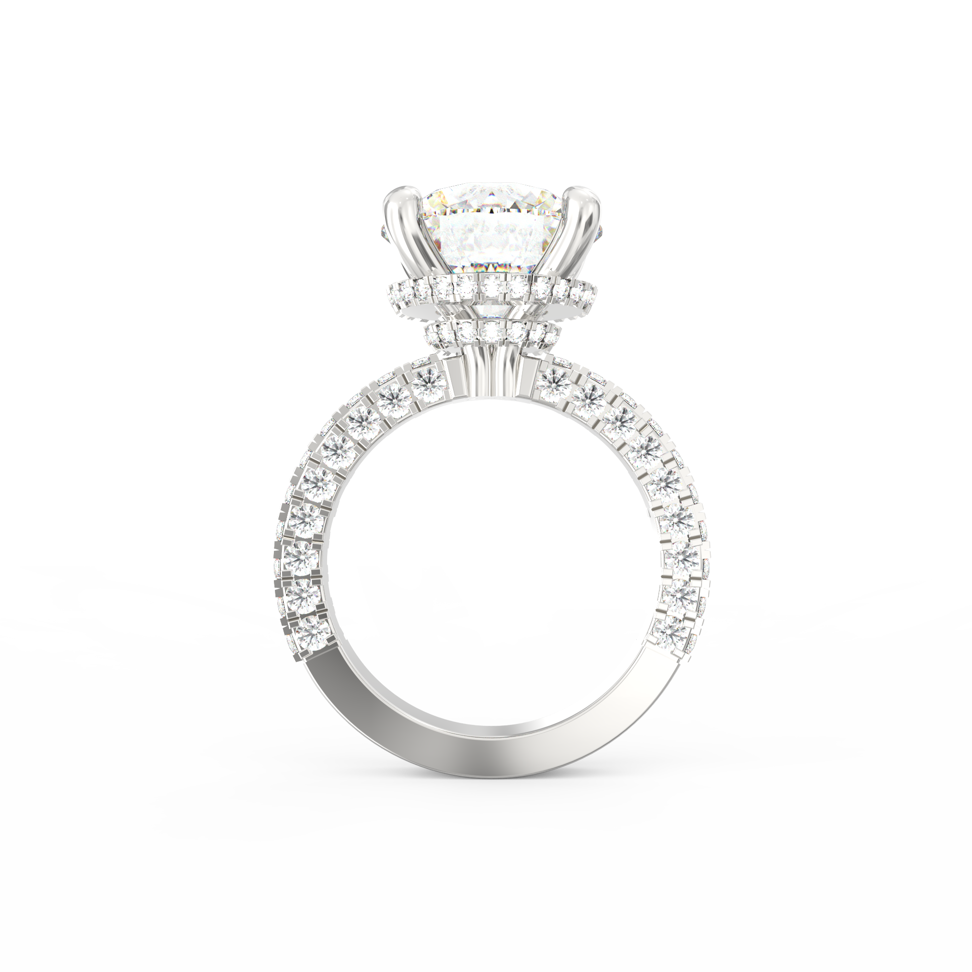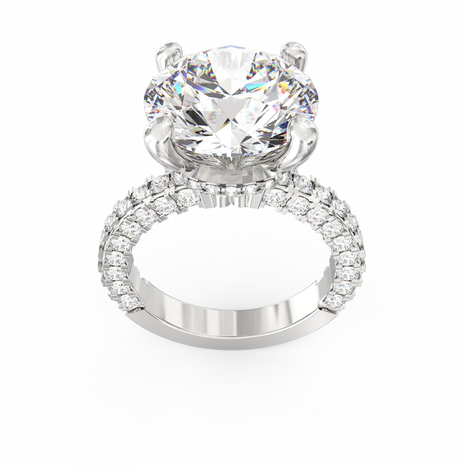 Its bold presence is elevated by a double-row pavé band, adorned with 98 smaller round diamonds totalling 1.708 Ct, creating an exquisite interplay of light and luxury.