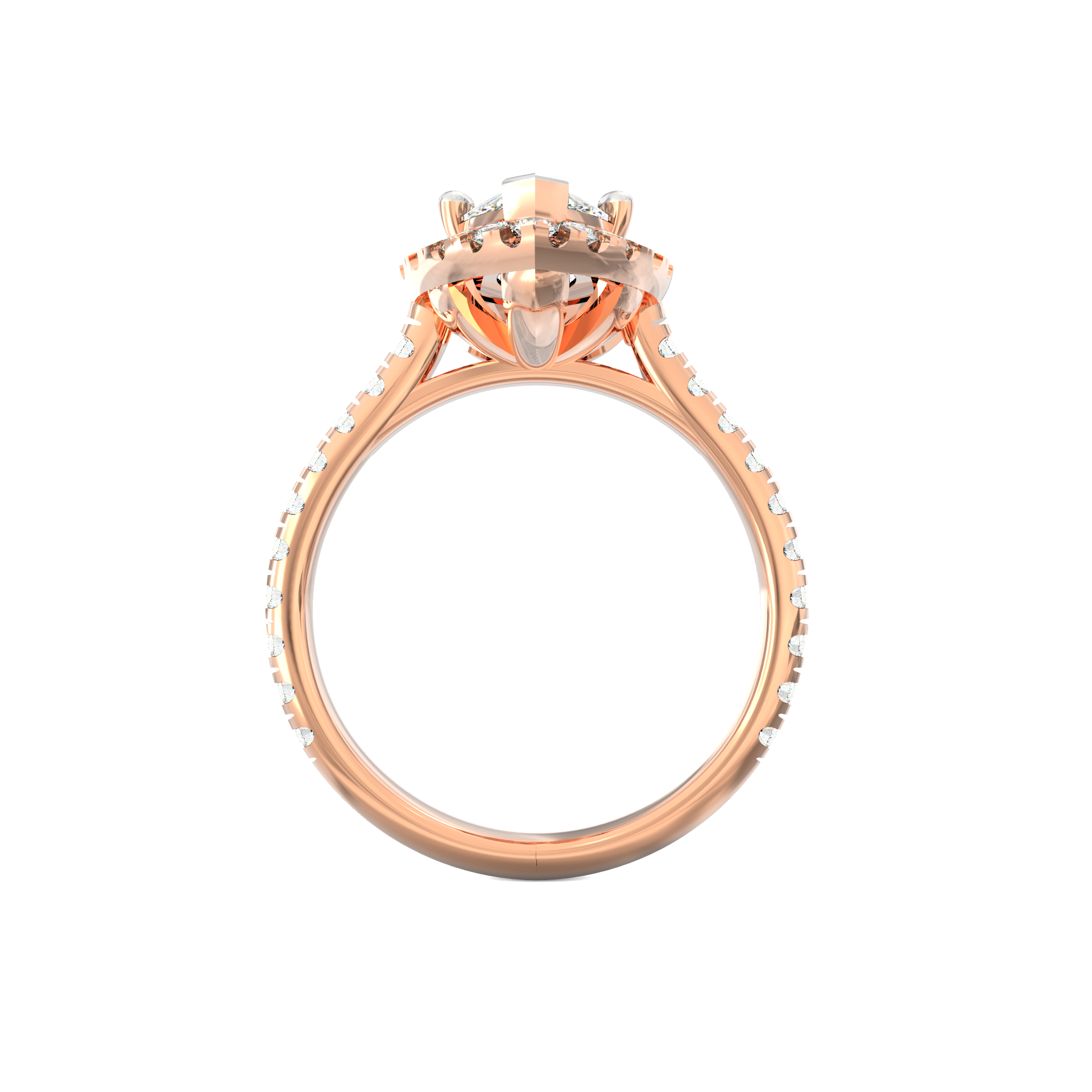 The Isolde lab grown diamond ring combines drama with timeless refinement. At its centre gleams a 2.00 Ct marquise-cut solitaire whose elongated shape instantly flatters the hand. Around it, a halo of round-cut lab-grown diamonds magnifies sparkle and depth. As a result, the design radiates brilliance from every angle while enhancing the centre stone’s size and allure.