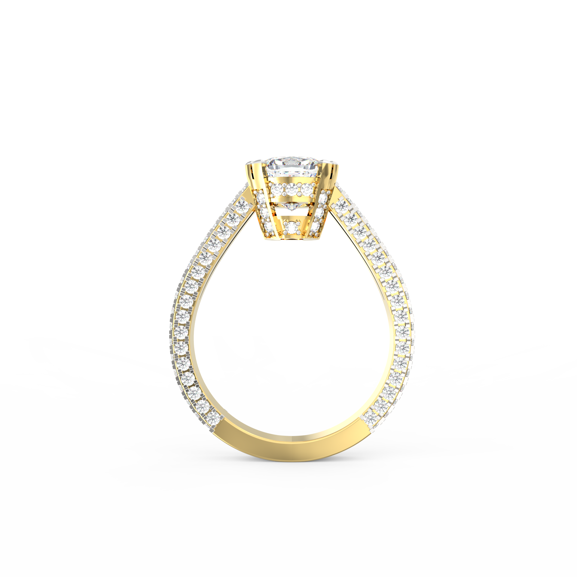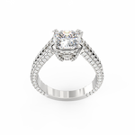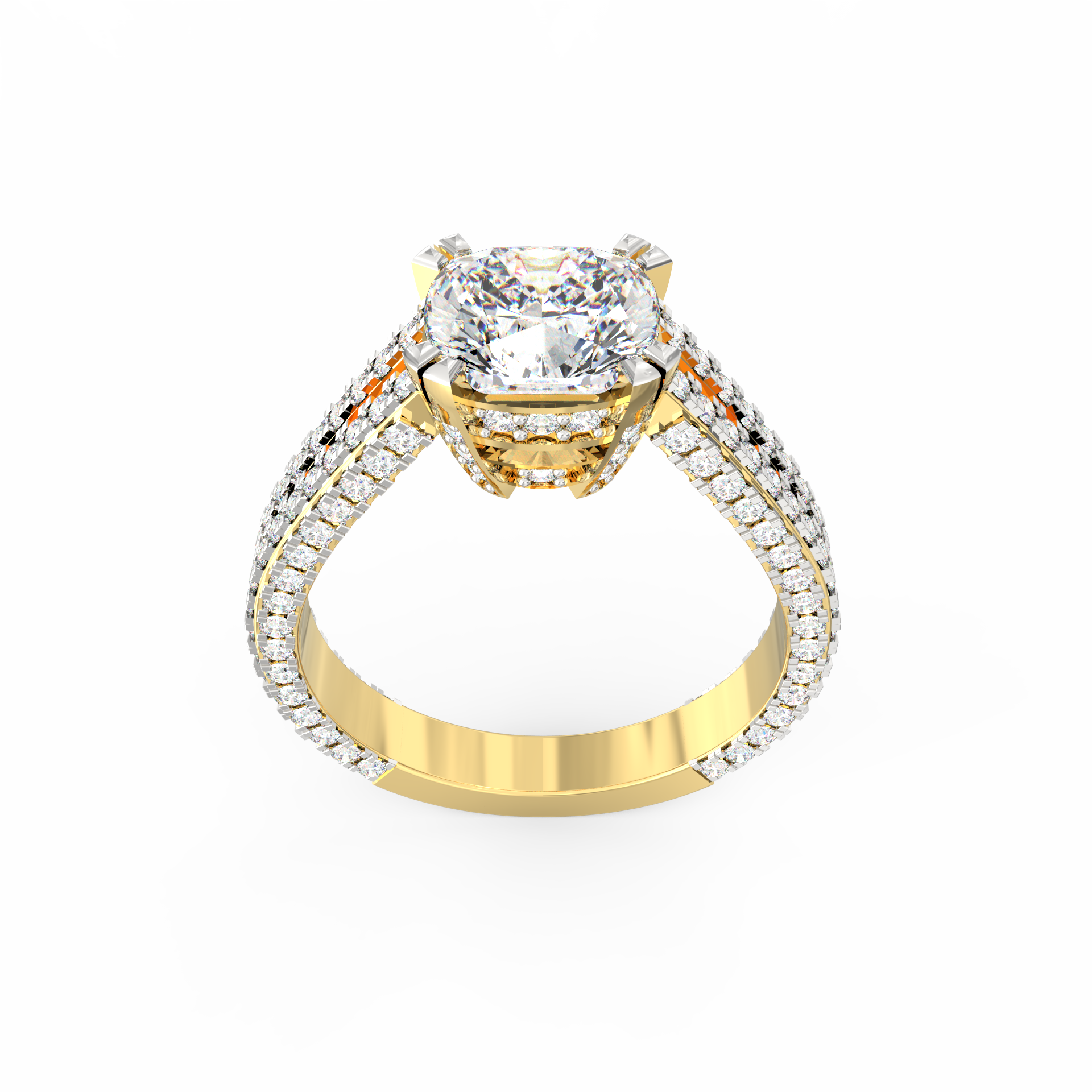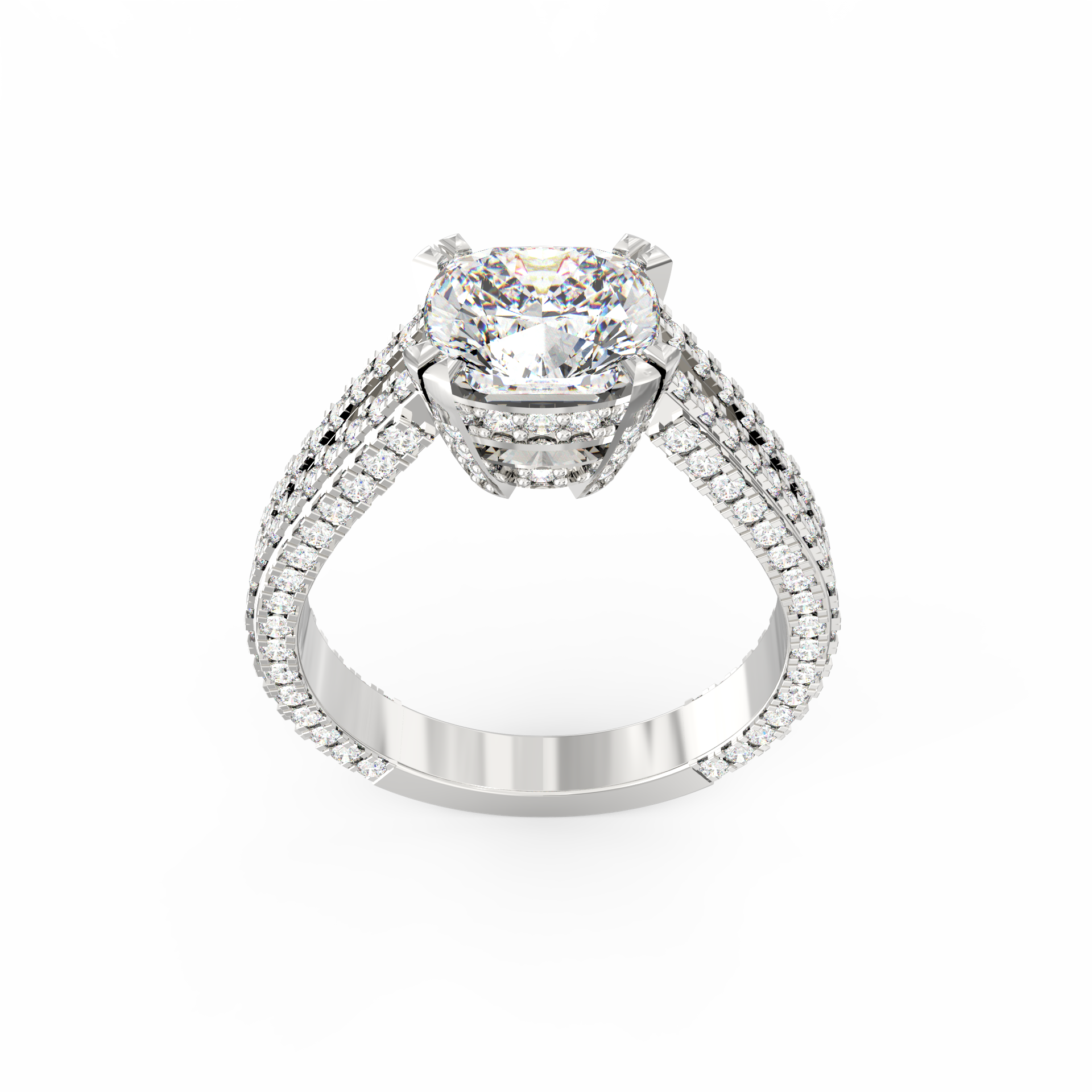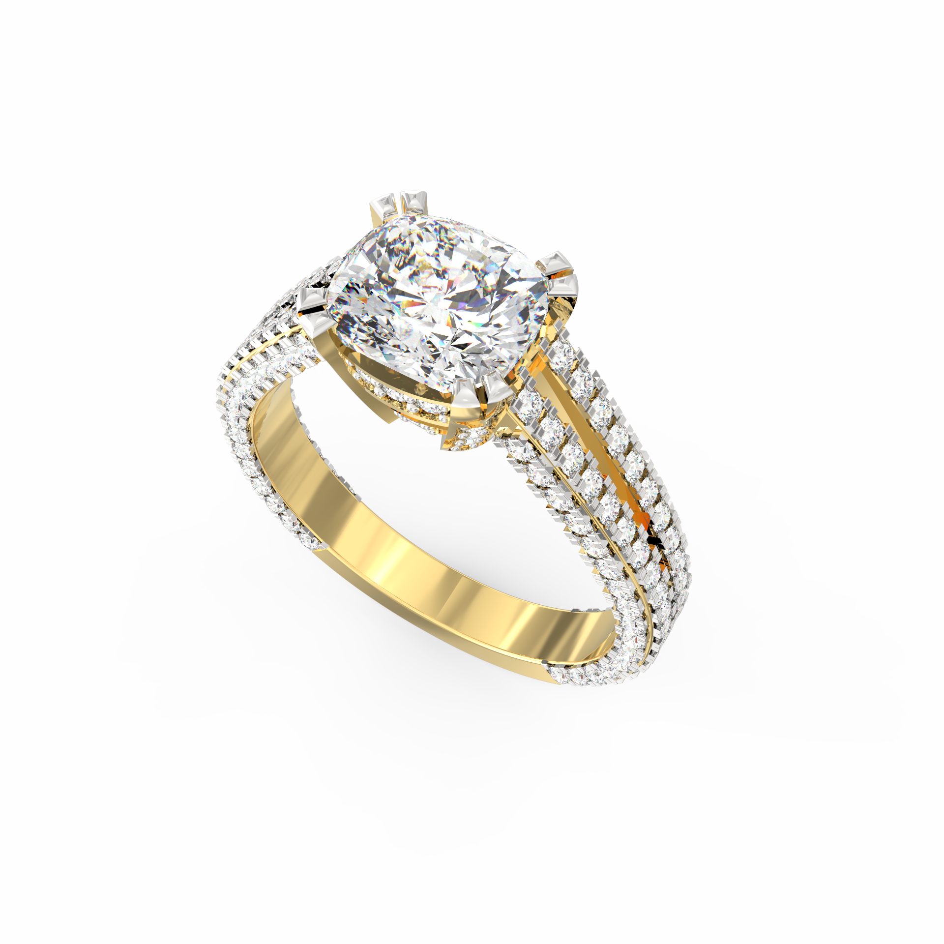The Lucenza lab grown diamond ring blends Italian artistry with modern character. Inspired by the word “Lucenza,” meaning radiance, this design brings together soft curves, fine detailing, and a powerful presence. At the center sits a 2.00 Ct cushion-cut lab-grown diamond, known for its smooth edges and strong sparkle. Its shape creates depth, while its faceting reflects light with a warm and steady glow.