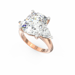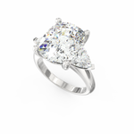 Ratnākara 6.35 Ct Cushion Cut Diamond Ring with Trillion Accents