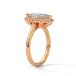 The Elaria lab grown diamond ring is a breathtaking expression of brilliance and grace. At its heart lies a 2.00 Ct marquise-cut solitaire, surrounded by a glowing double halo of round-cut lab-grown diamonds. The elongated marquise shape flatters the hand while symbolising clarity, vision, and enduring elegance. Moreover, the layered halo creates a spectacular depth, making the centre diamond appear even larger and brighter.