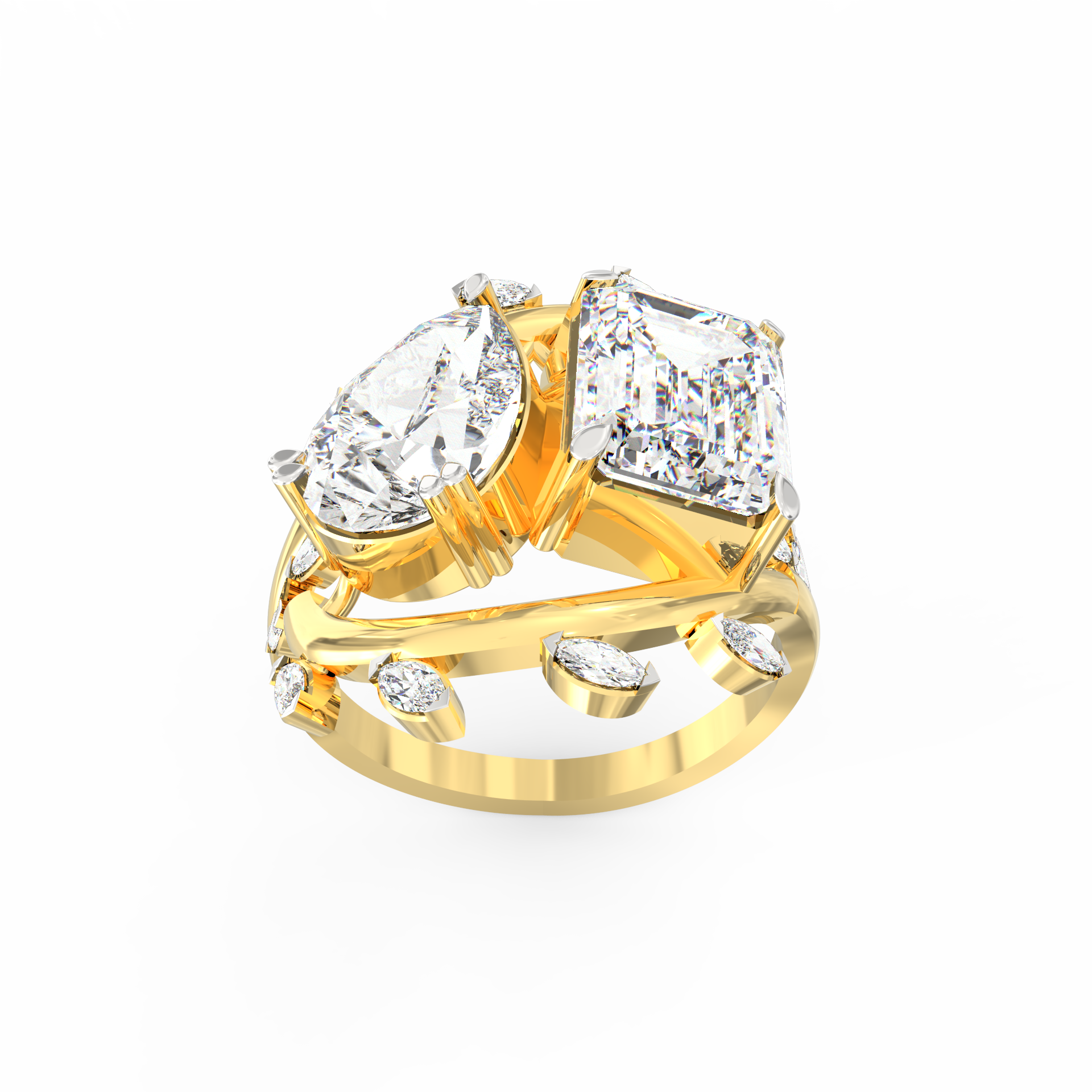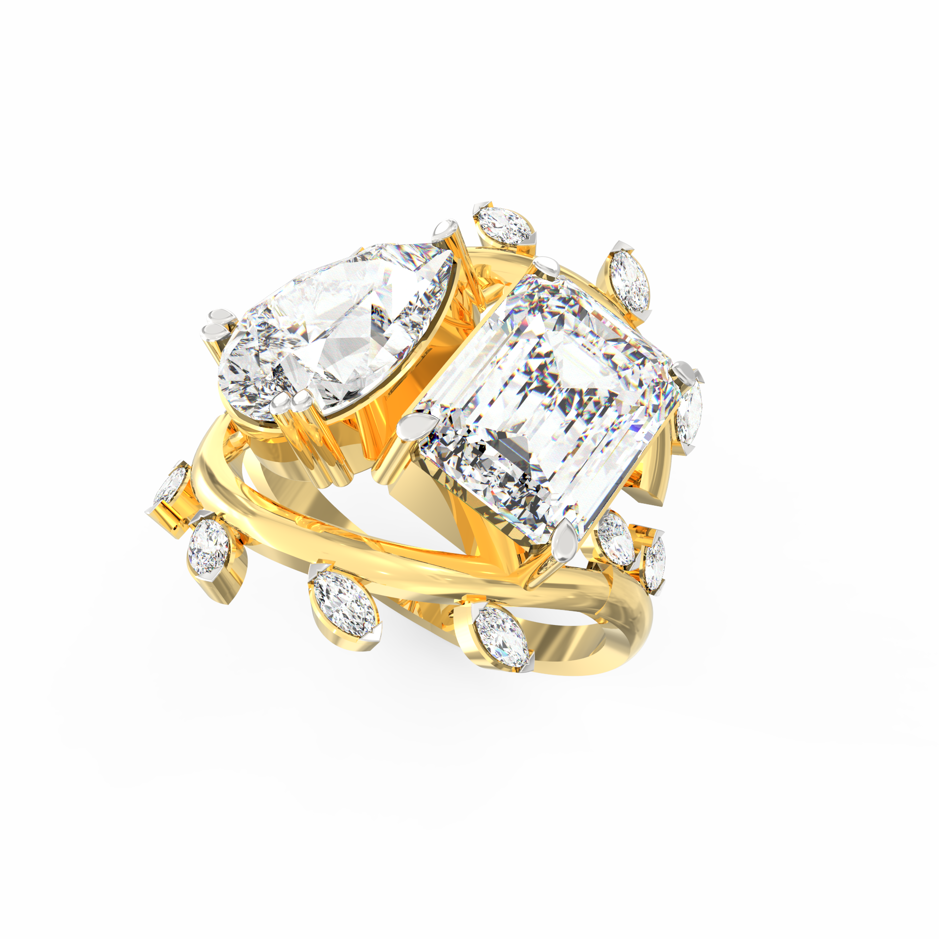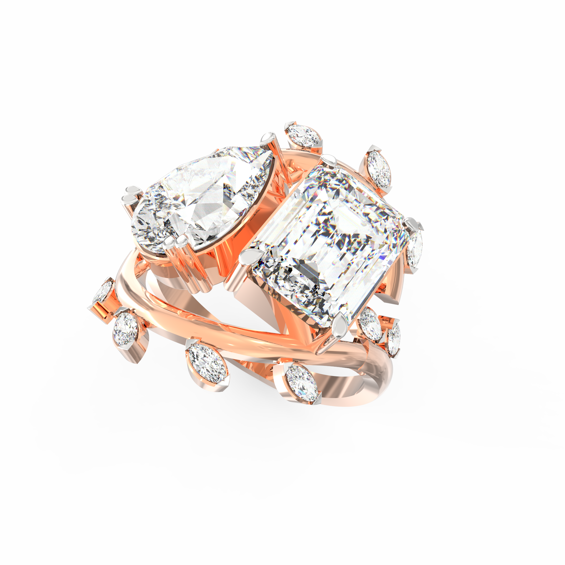 Vyanjana 2.50 Ct Emerald & 2.00 Ct Pear Dual Solitaire Lab-Grown Diamond Ring