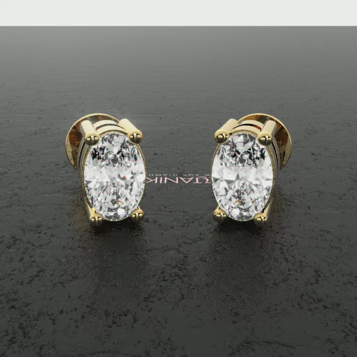 Each stud features a radiant oval-cut diamond, held securely in a classic four-prong setting. The shape naturally elongates and flatters the ear, reflecting light with every turn. Because of its clean design, the diamond stands out with striking clarity and charm.