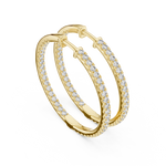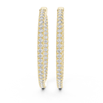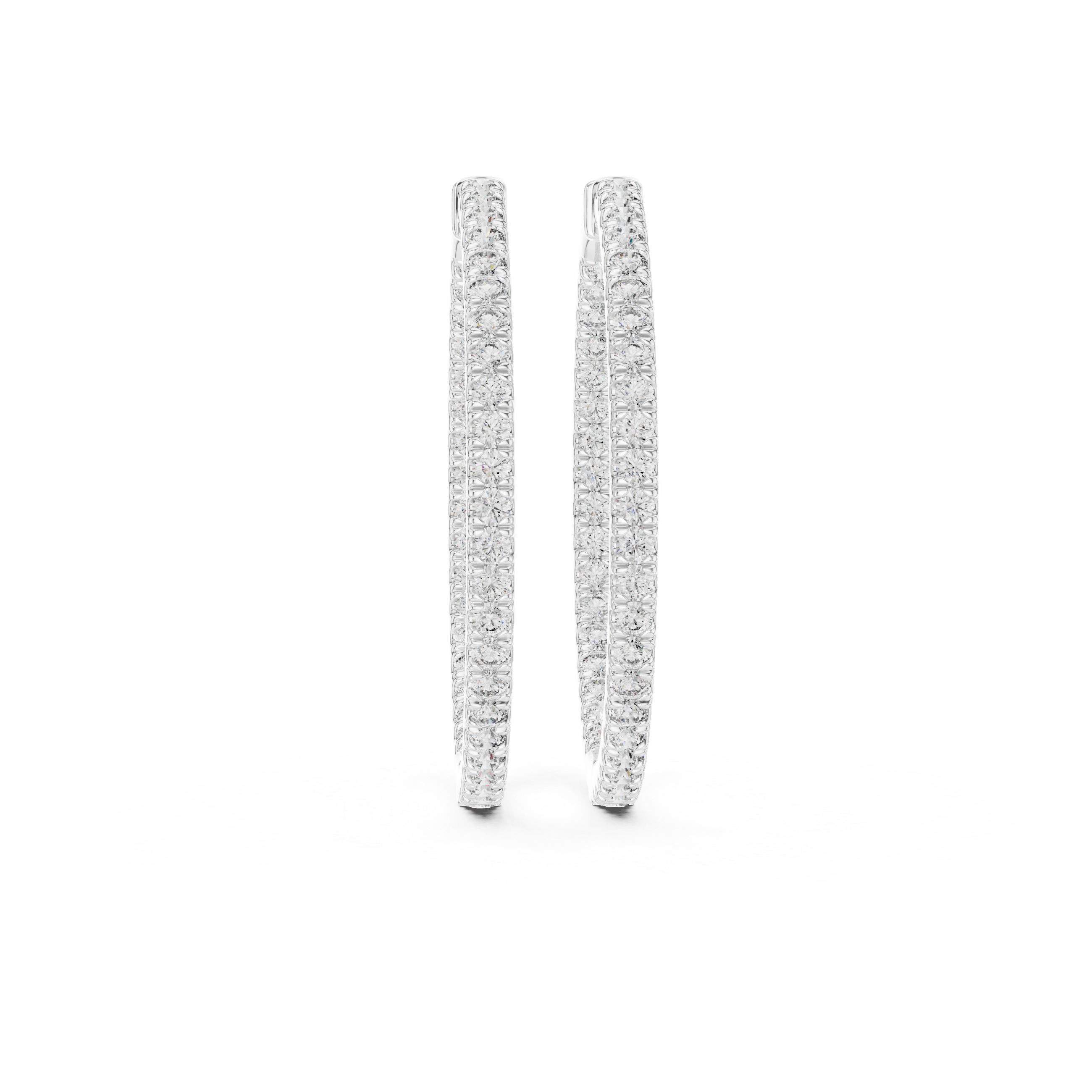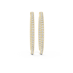 Designed for those who appreciate purity of form, these lab grown diamond hoop earrings celebrate understated luxury through precision and balance. The silhouette is slim, elongated, and perfectly contoured, creating a refined hoop that frames the face with effortless grace. Each hoop is meticulously lined with lab-grown diamonds, set edge-to-edge to form a continuous stream of light.