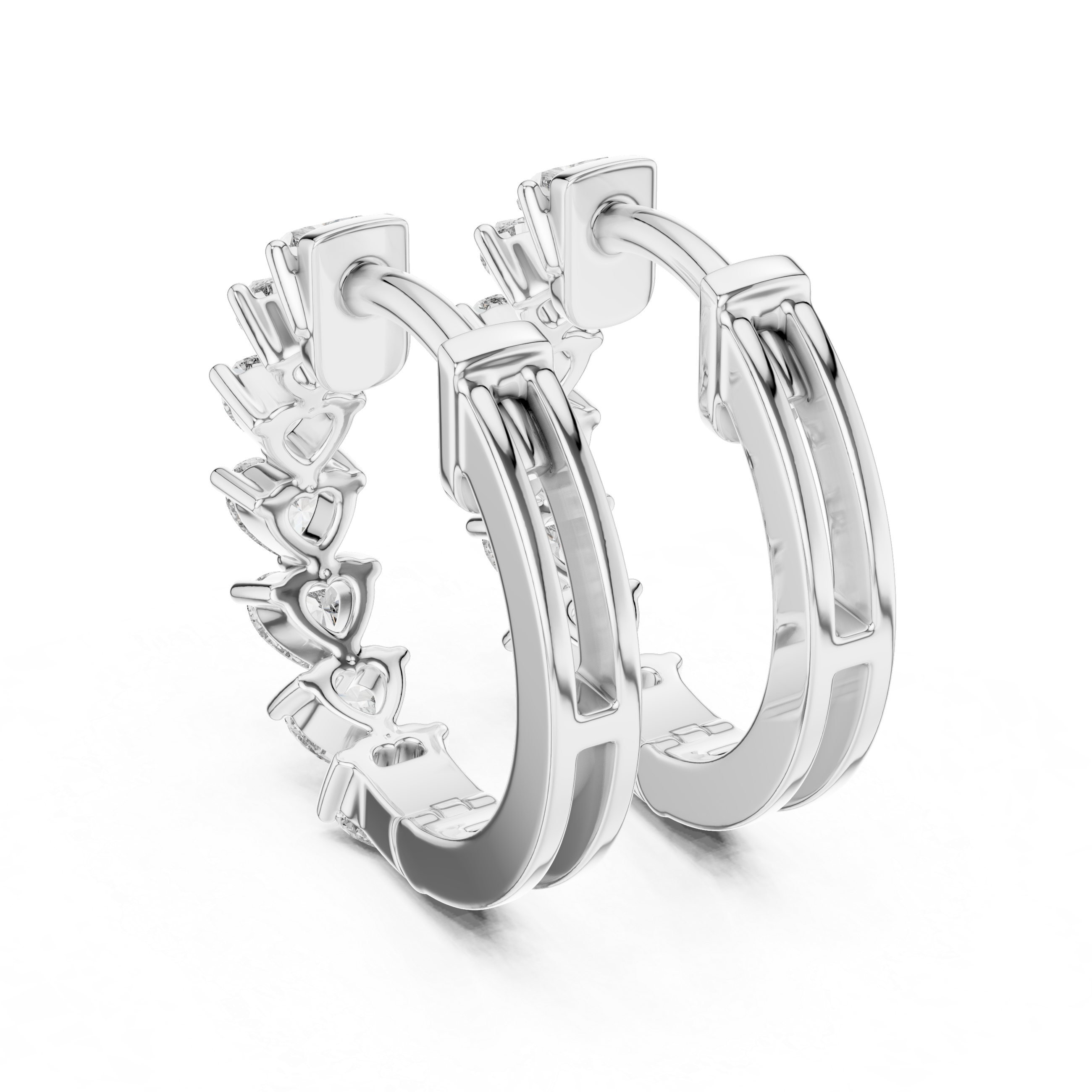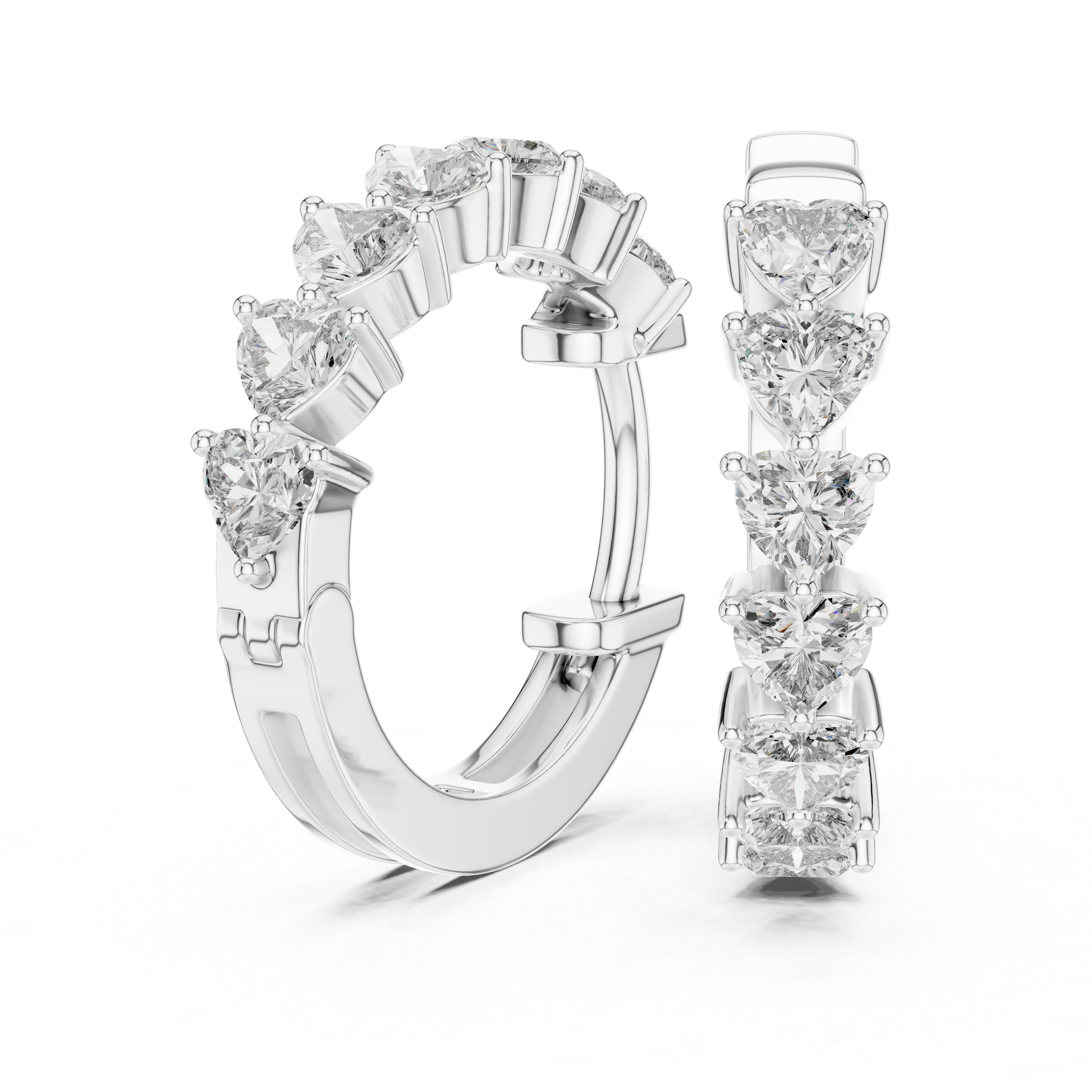 Soft symmetry and emotional design come together in these lab grown diamond hoop earrings, crafted around a continuous line of heart-shaped diamonds. The repeating heart motif creates a graceful vertical rhythm that feels expressive yet refined, offering a modern interpretation of romance without excess. Each heart flows seamlessly into the next, forming a balanced silhouette that feels elegant, intentional, and wearable.