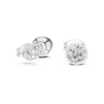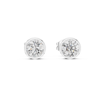 The lab grown diamond stud earrings are designed for those who appreciate quiet luxury and clean form. This pair features a perfectly proportioned round diamond secured in a smooth bezel setting, creating a look that feels contemporary yet enduring. The circular gold frame enhances brilliance while offering a refined, minimal profile that sits close to the ear, making these studs ideal for everyday wear.