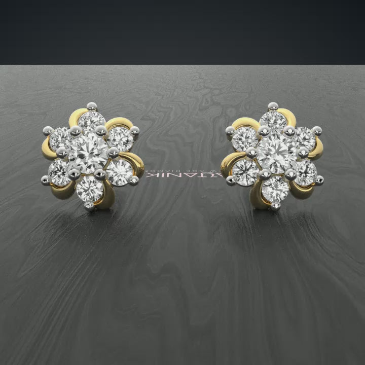 Lab Grown Diamond Earrings – Blooming Radiance Solitaire Studs in BIS Hallmarked Gold