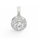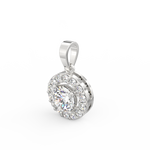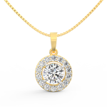 The central lab-grown diamond, graded VS2+ clarity and G+ colour, shines with unmatched brilliance, while the surrounding halo amplifies its sparkle, creating a striking glow from every angle. Using ethical lab-grown diamonds ensures purity and sustainability, giving you the confidence of luxury with a conscience. Every detail of the Selene pendant is crafted to reflect both sophistication and inner radiance.