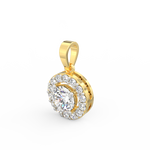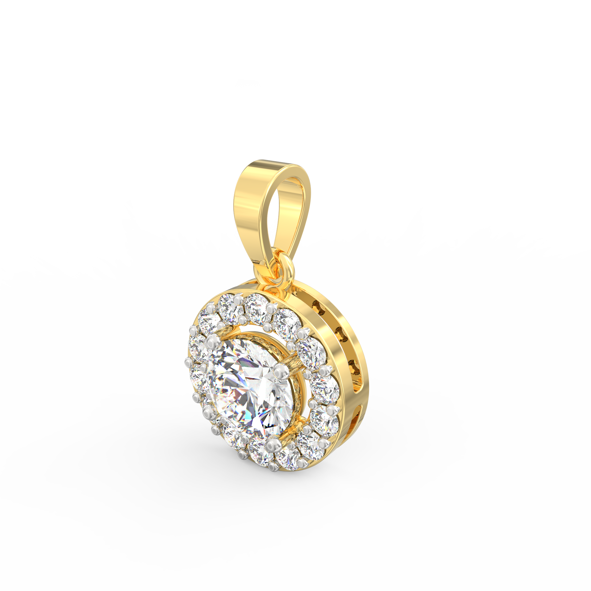 The Selene pendant, named after the Greek goddess of the moon, radiates timeless beauty and harmony. Crafted in BIS Hallmarked Gold, it features a luminous round ethical lab-grown diamond at its centre, encircled by a brilliant halo of smaller diamonds. This celestial design captures the essence of elegance, making it a perfect piece to treasure every day or to gift as a meaningful symbol of love and light.