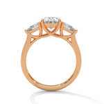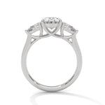 The Astraea 2.00 Ct lab grown diamond ring celebrates harmony, light, and timeless beauty. At its heart shines a 2.00 Ct oval-cut lab grown diamond of VS+ clarity and FG+ colour. Two pear-shaped side stones, totaling 1.00 Ct, frame the center, adding depth and graceful symmetry.