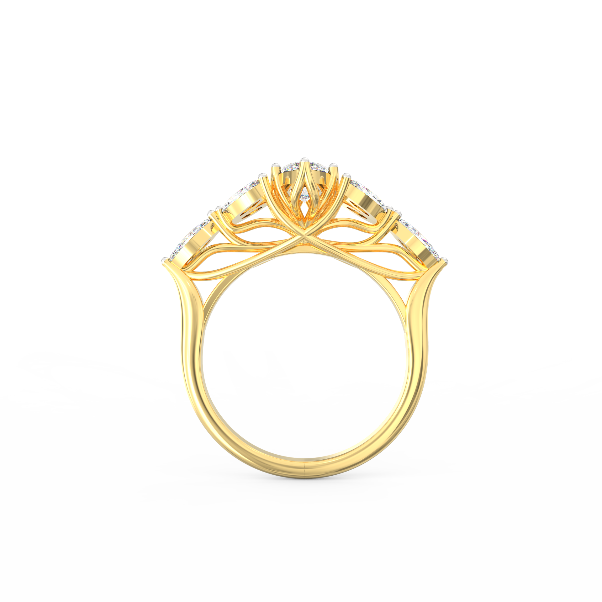 The marquise cut’s elongated silhouette enhances the illusion of length and elegance, creating a sculptural design that feels timeless yet modern.