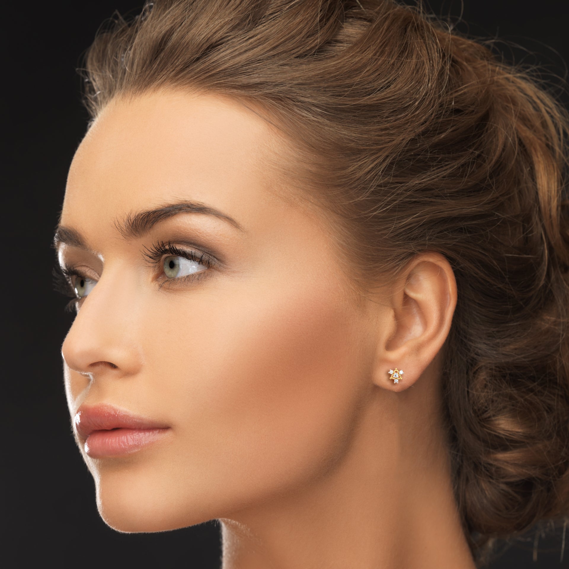 Every diamond is hand-set with precision to ensure balance and brilliance. Because of their compact design and secure push-back closure, these earrings feel weightless and easy to wear all day. You can even sleep in them comfortably. They reflect grace, clarity, and conscious elegance—ideal for women who value quiet sophistication.