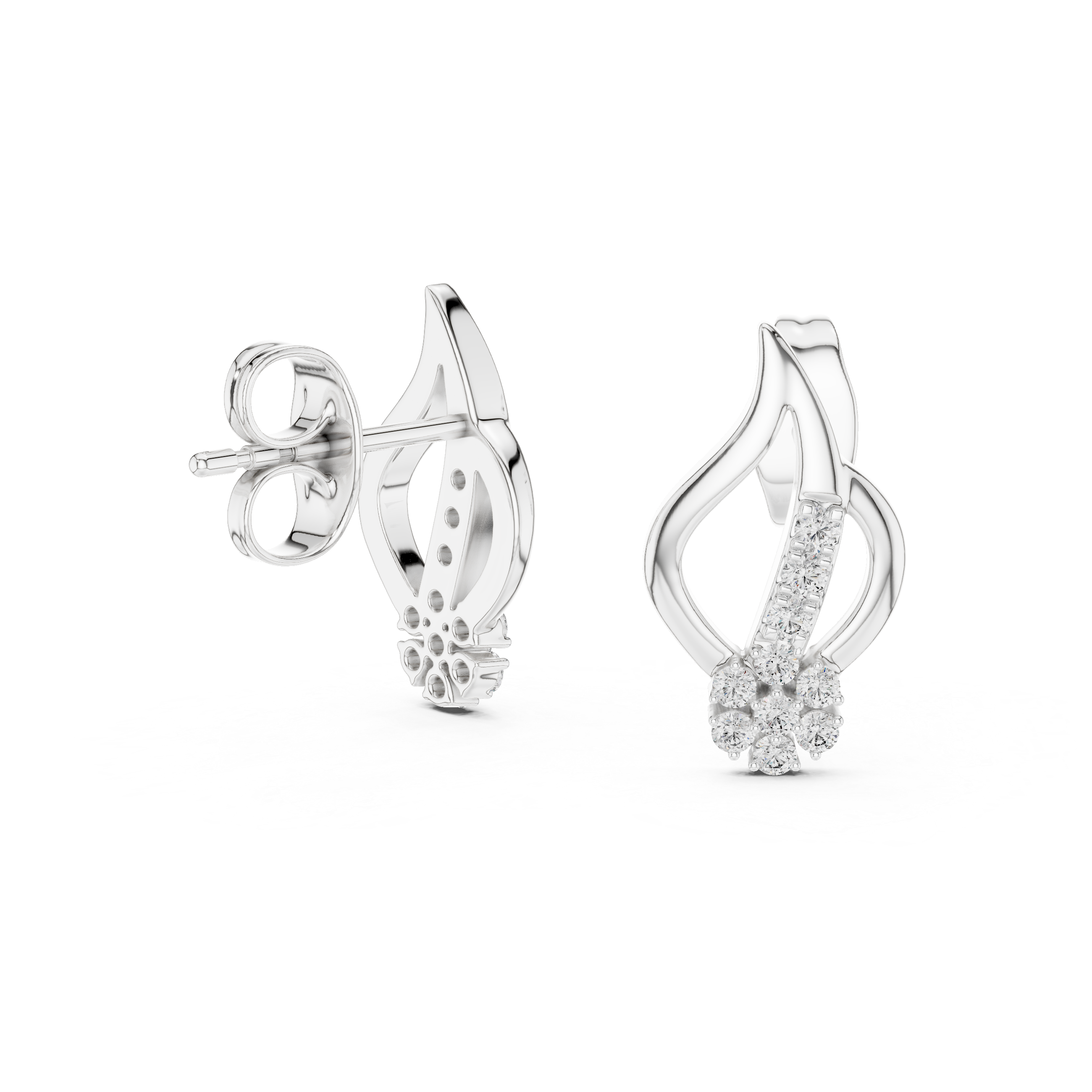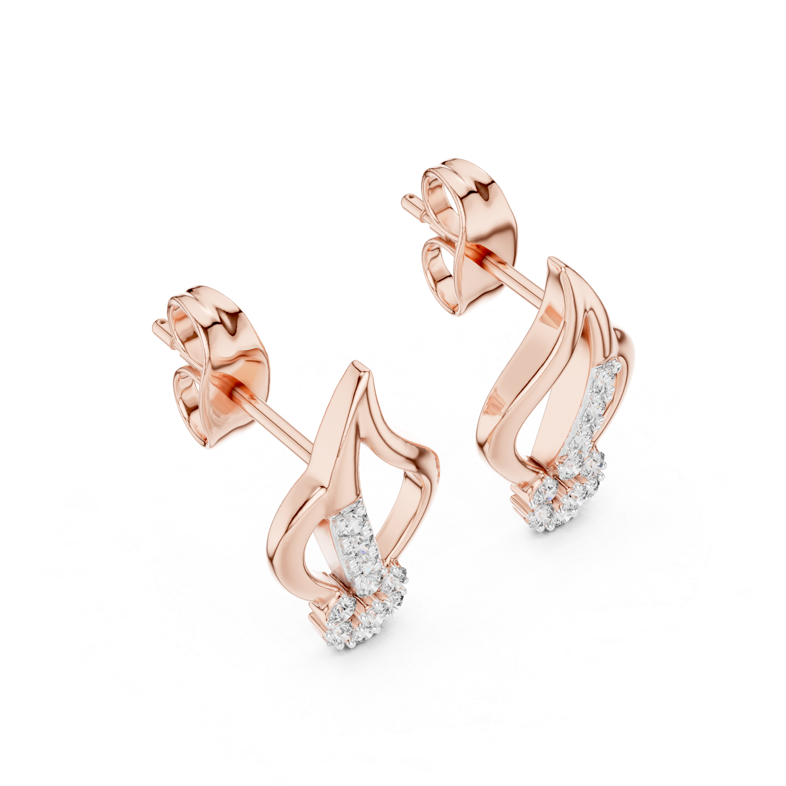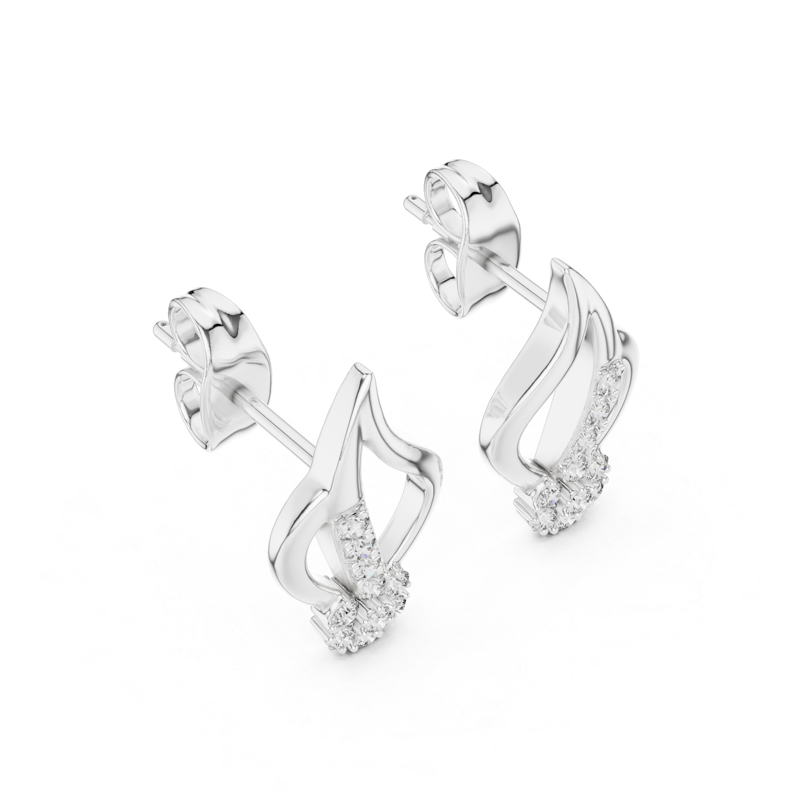Sculptural and expressive, these lab grown diamond stud earrings draw inspiration from fluid flame-like forms. The design features softly rising gold curves that taper upward, creating a sense of movement and grace. At the center, a slim vertical line of lab-grown diamonds adds refined brilliance, while a delicate diamond cluster at the base anchors the design with gentle sparkle.