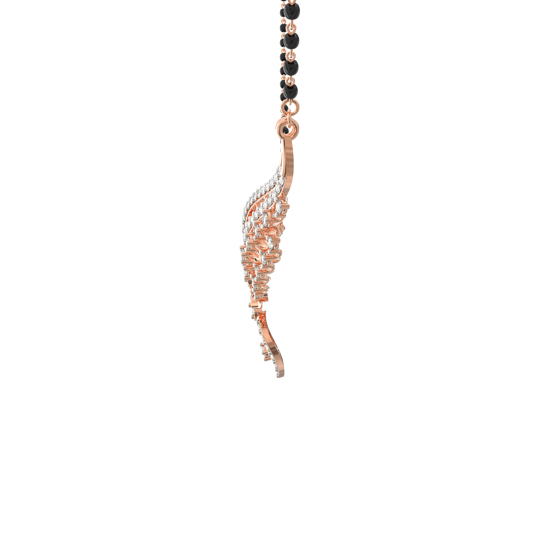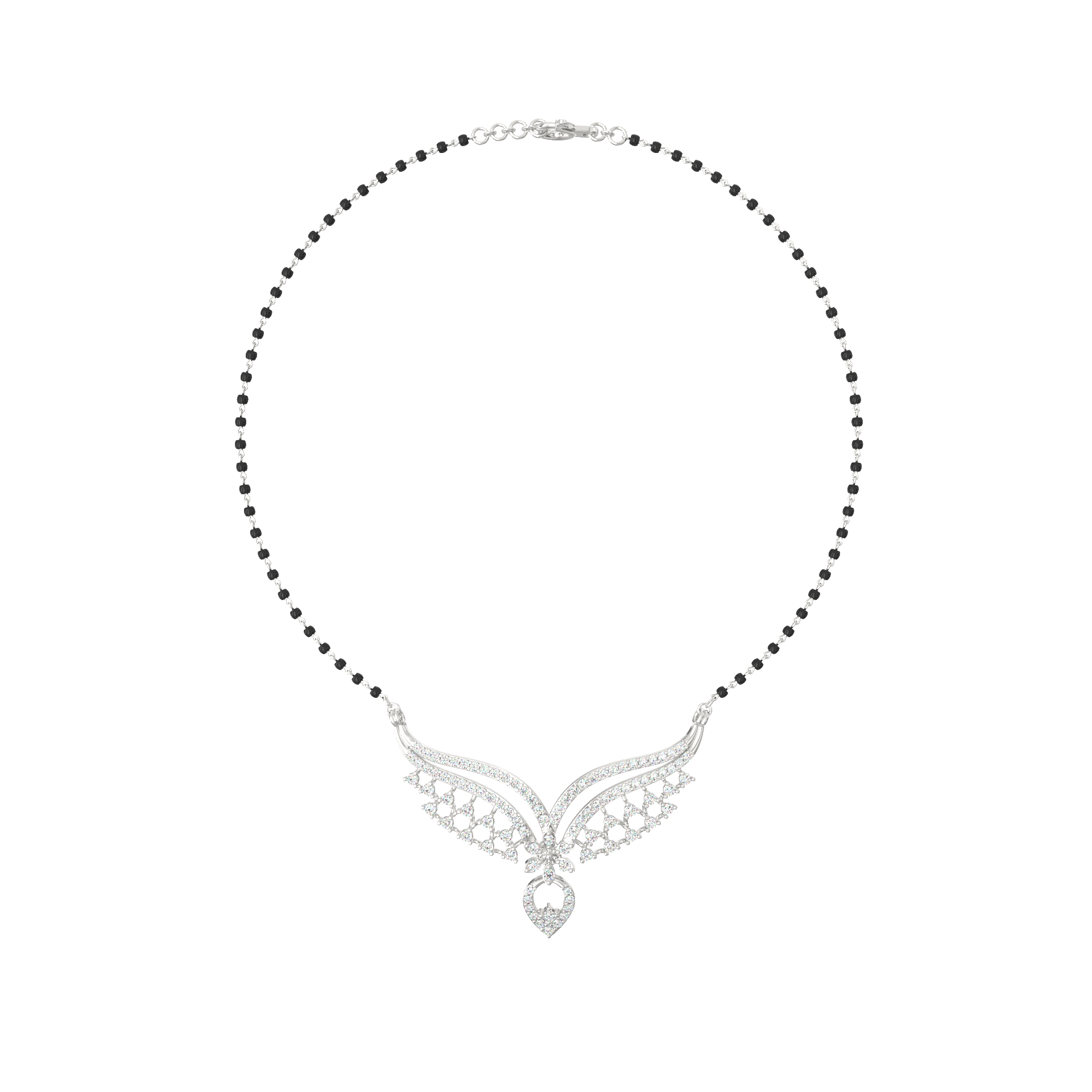 This elegant mangalsutra necklace brings together tradition and modernity with a beautifully stylized floral motif. The design features intricately arranged marquise and round-cut diamonds forming a blooming flower, while layers of circular diamond clusters taper into the signature black beaded chain. Designed to celebrate sacred bonds, this piece radiates both strength and delicacy. Whether worn every day or on special occasions, it brings timeless meaning to your jewellery collection.