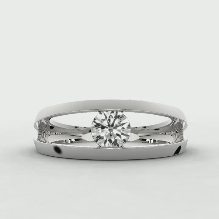 Make a sleek statement with this men's solitaire diamond ring. The streamlined design emphasizes the diamond's brilliance, creating a refined and powerful accessory.