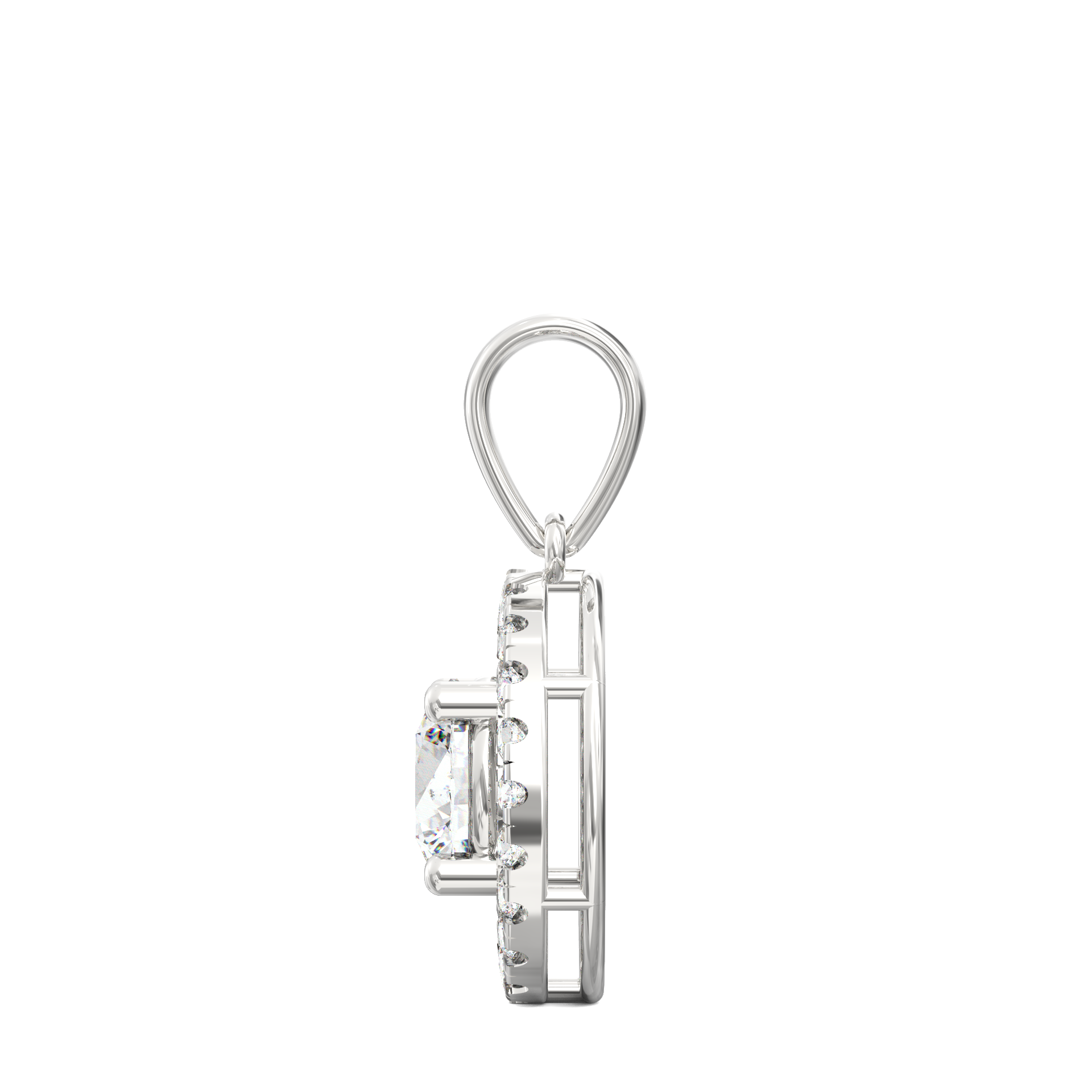 Pair the Celeste pendant with solitaire studs for a coordinated look or layer it with fine chains for a contemporary style. For formal occasions, an off-shoulder or sweetheart neckline highlights its halo glow beautifully.