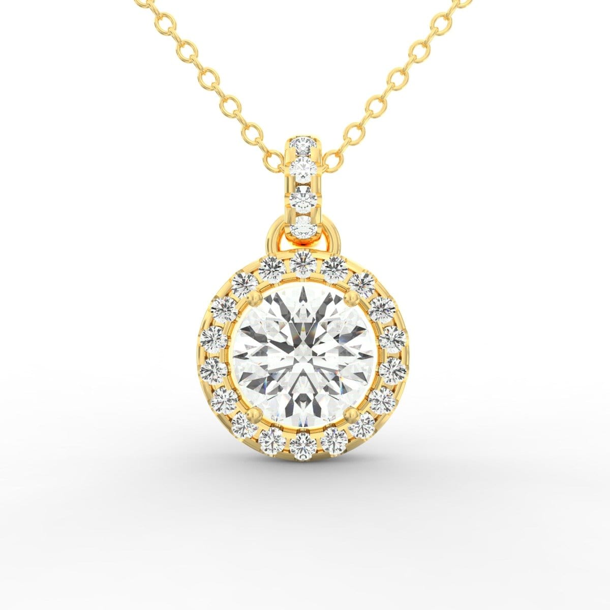 Radiate timeless beauty with our stunning 1.25 ct Solitaire Pendant, featuring a captivating diamond accent delicately placed on the side and a mesmerizing halo design. Crafted with precision and exquisite detail, this pendant exudes elegance and grace, making it the perfect accessory for any occasion. Adding an extra touch of sophistication, a diamond accent adorns the side of the pendant, creating a subtle asymmetrical design that captures attention from every angle. The accent diamond complements the overall allure of the pendant, enhancing its radiant charm.
