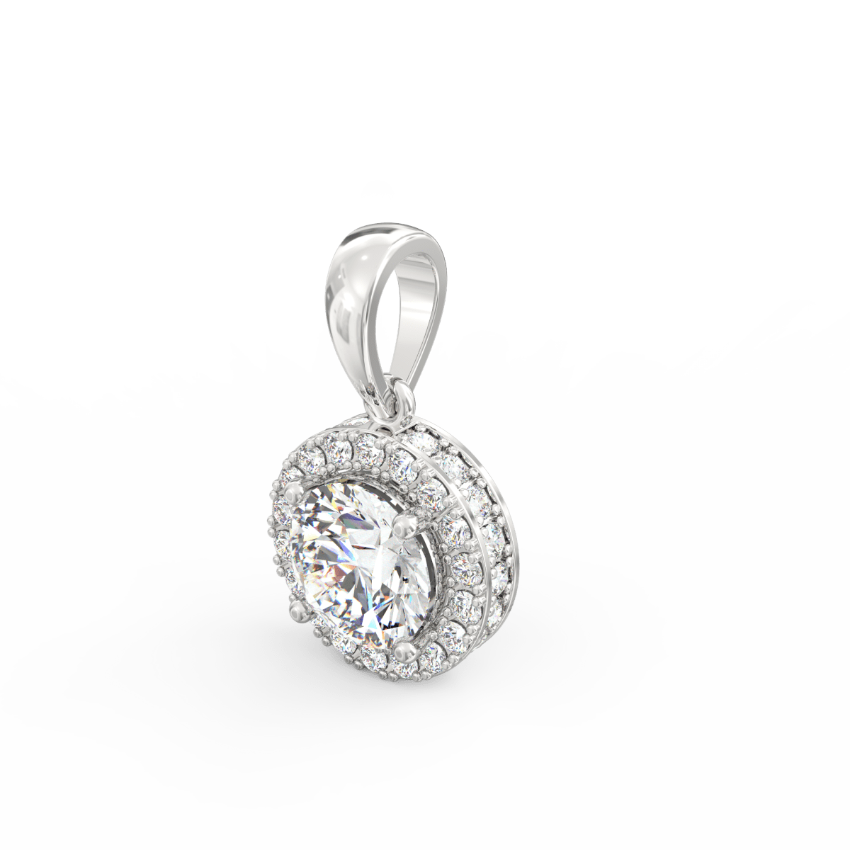 This lab grown diamond pendant is designed to shine in every moment. The Celestia Halo Pendant features a sparkling round solitaire diamond at its center. Surrounding it, 37 hand-set round lab grown diamonds form a glowing halo that adds light from every side.