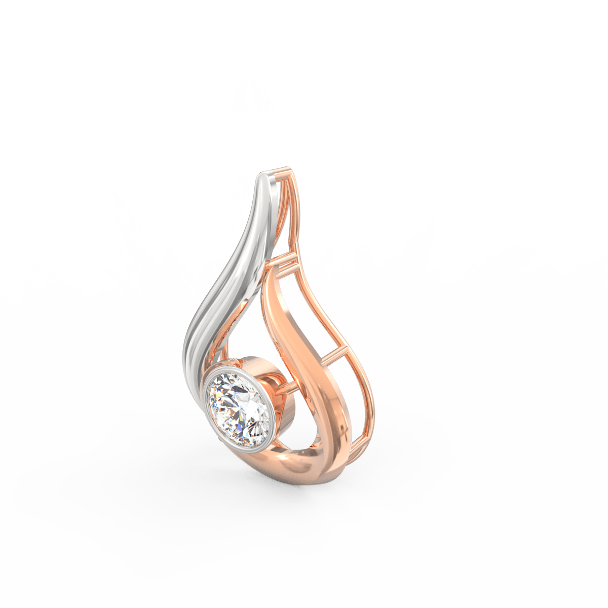 Crafted in BIS Hallmarked Gold, the pendant sits in a flowing, dual-tone design that adds movement and grace. The sleek curves wrap around the solitaire, highlighting its brilliance while offering a soft, modern finish. As a result, it becomes a piece you’ll want to wear again and again.