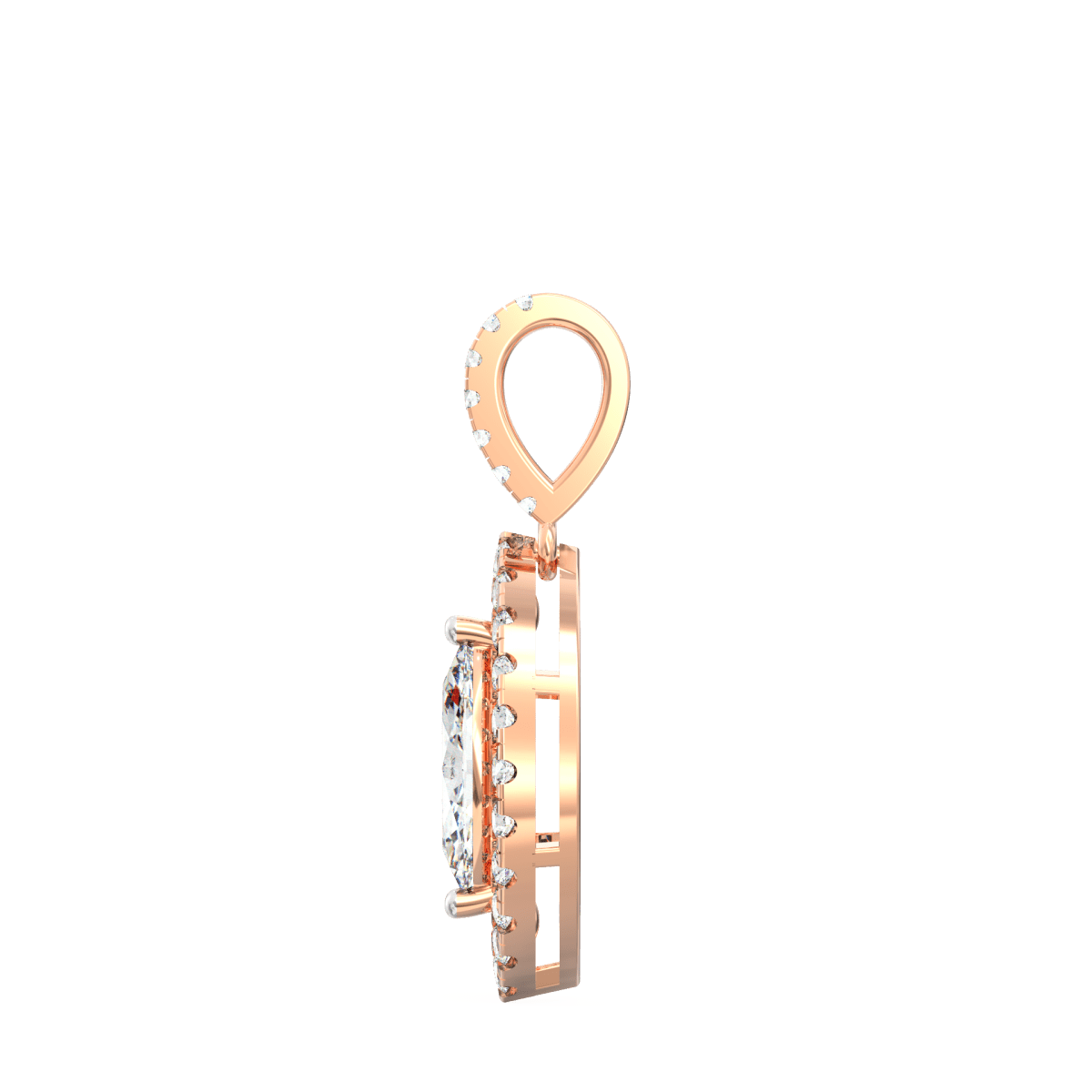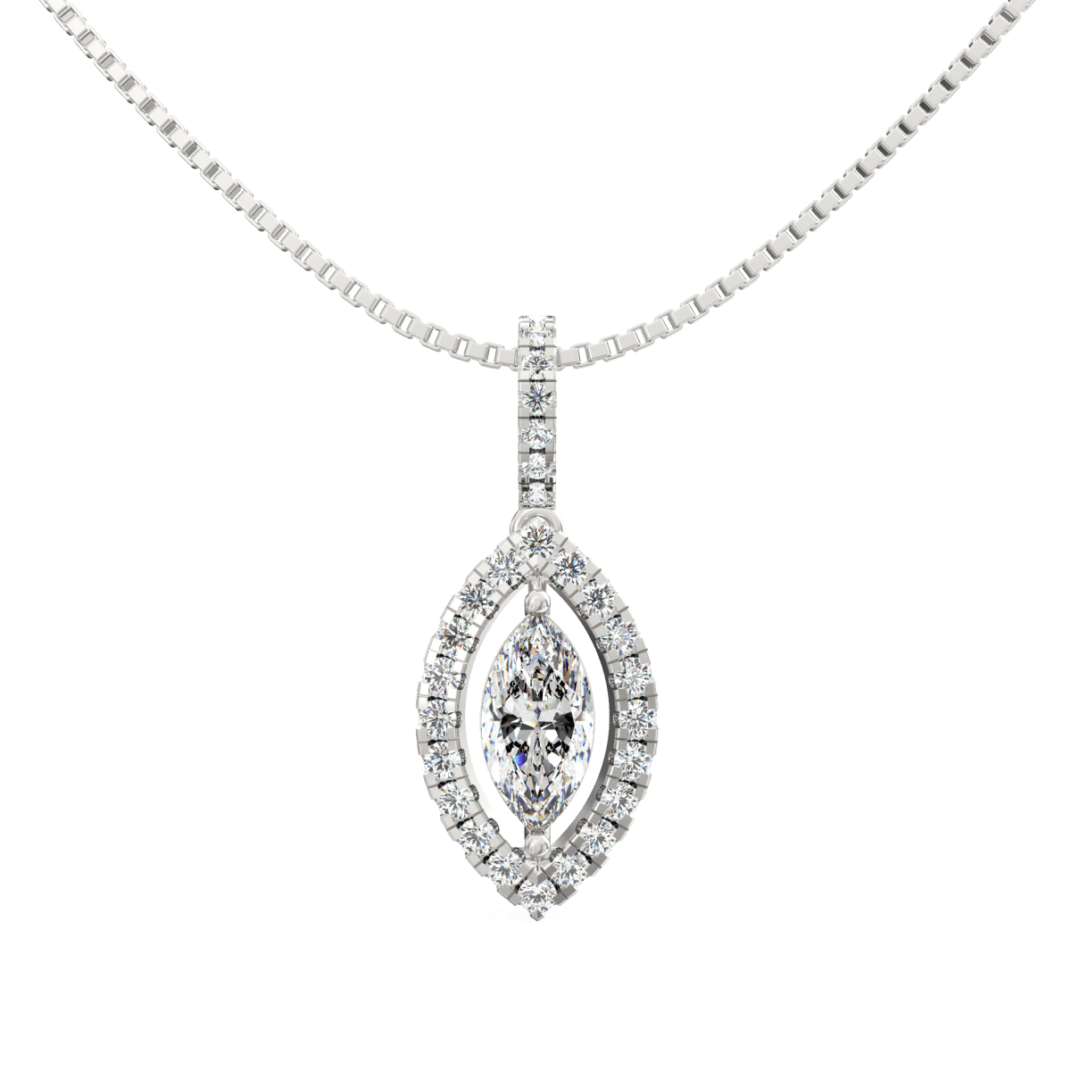 This lab grown diamond pendant reflects grace, sparkle, and meaning. The Elysia Pendant features a striking marquise-shaped diamond, set at the center of a glowing halo. Around it, finely set round diamonds enhance the shape and shimmer with every movement.