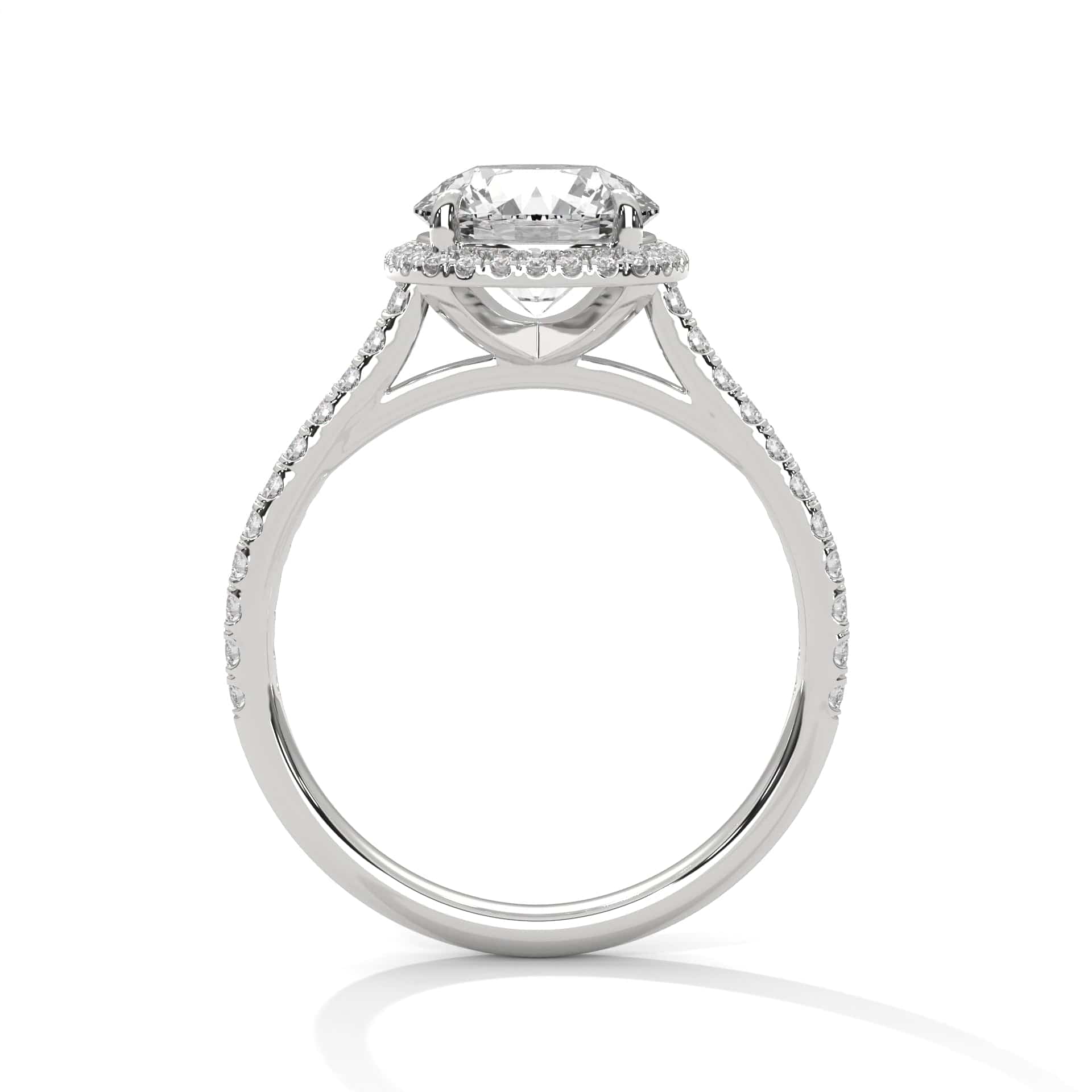 Embrace grace and brilliance with Ayanikas 2-carat round-cut diamond ring, a true symbol of elegance. The centerpiece features a stunning 2-carat round diamond, perfectly accentuated by 50 small round diamonds (0.304 carat) that surround it with a dazzling shimmer. Every diamond is meticulously set to enhance its graceful allure. This ring exudes timeless beauty, making it an exquisite choice for engagements, special occasions, or simply adding a touch of refined luxury to your collection.