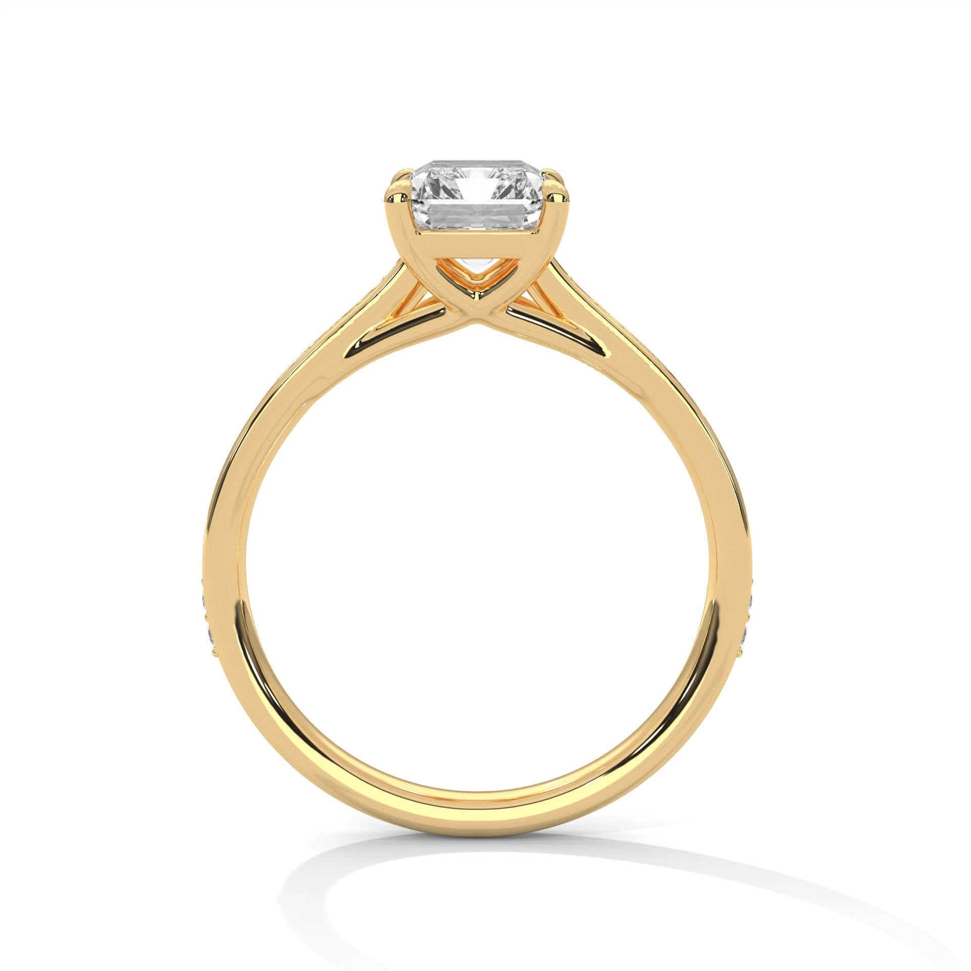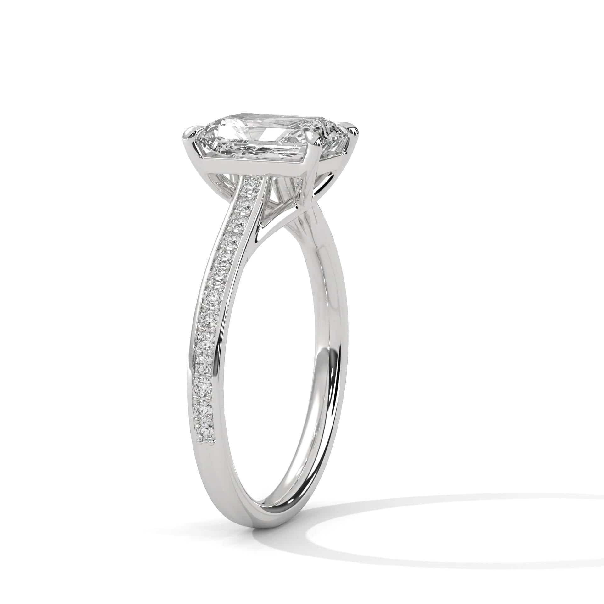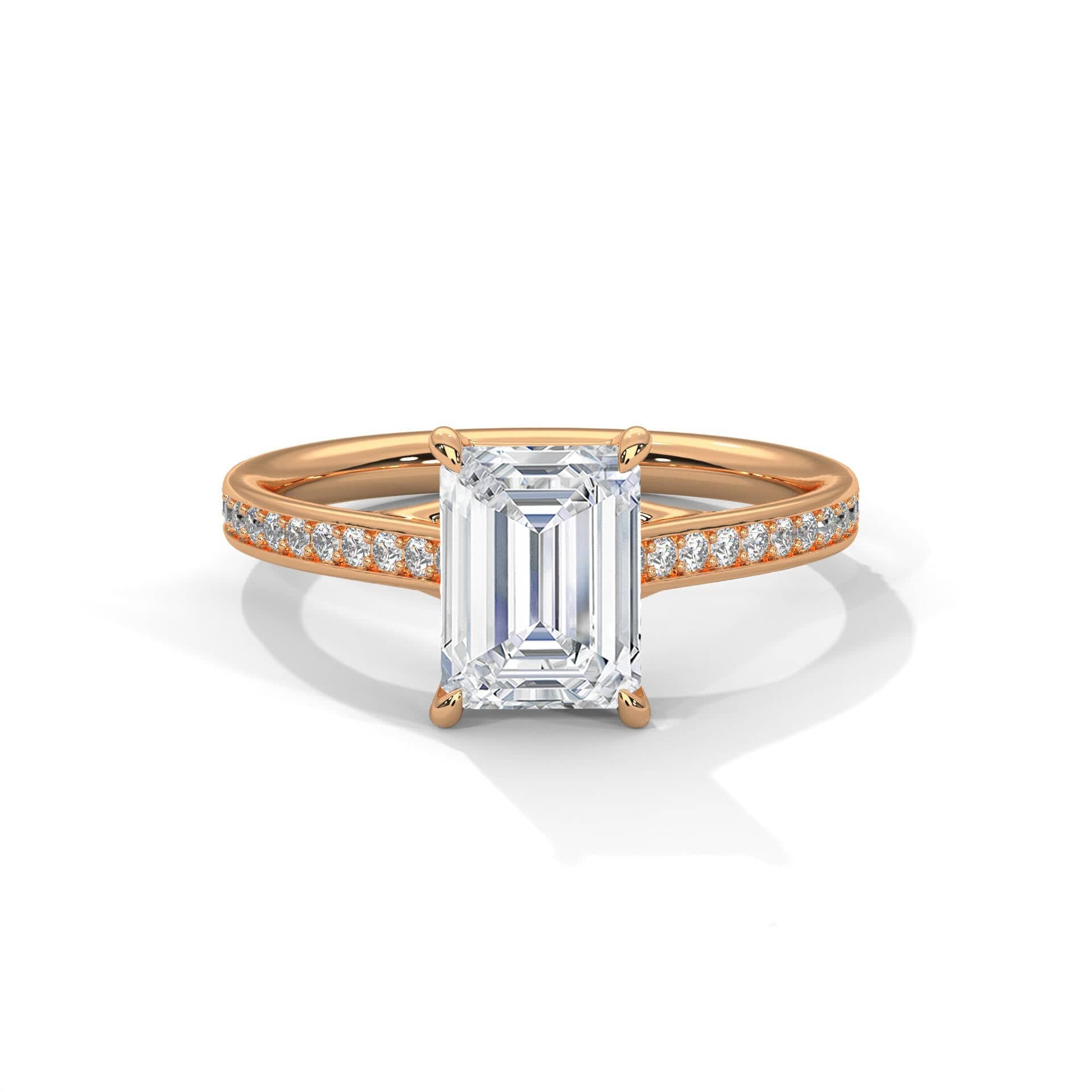 Make a confident statement with the Celine Emerald Solitaire Ring — where geometry meets grace. At its center sits a striking 1.5-carat emerald-cut lab-grown diamond, known for its clean lines and calm radiance. Flanked by a slender pavé-set band of 26 round diamonds, this ring blends modern elegance with timeless charm.