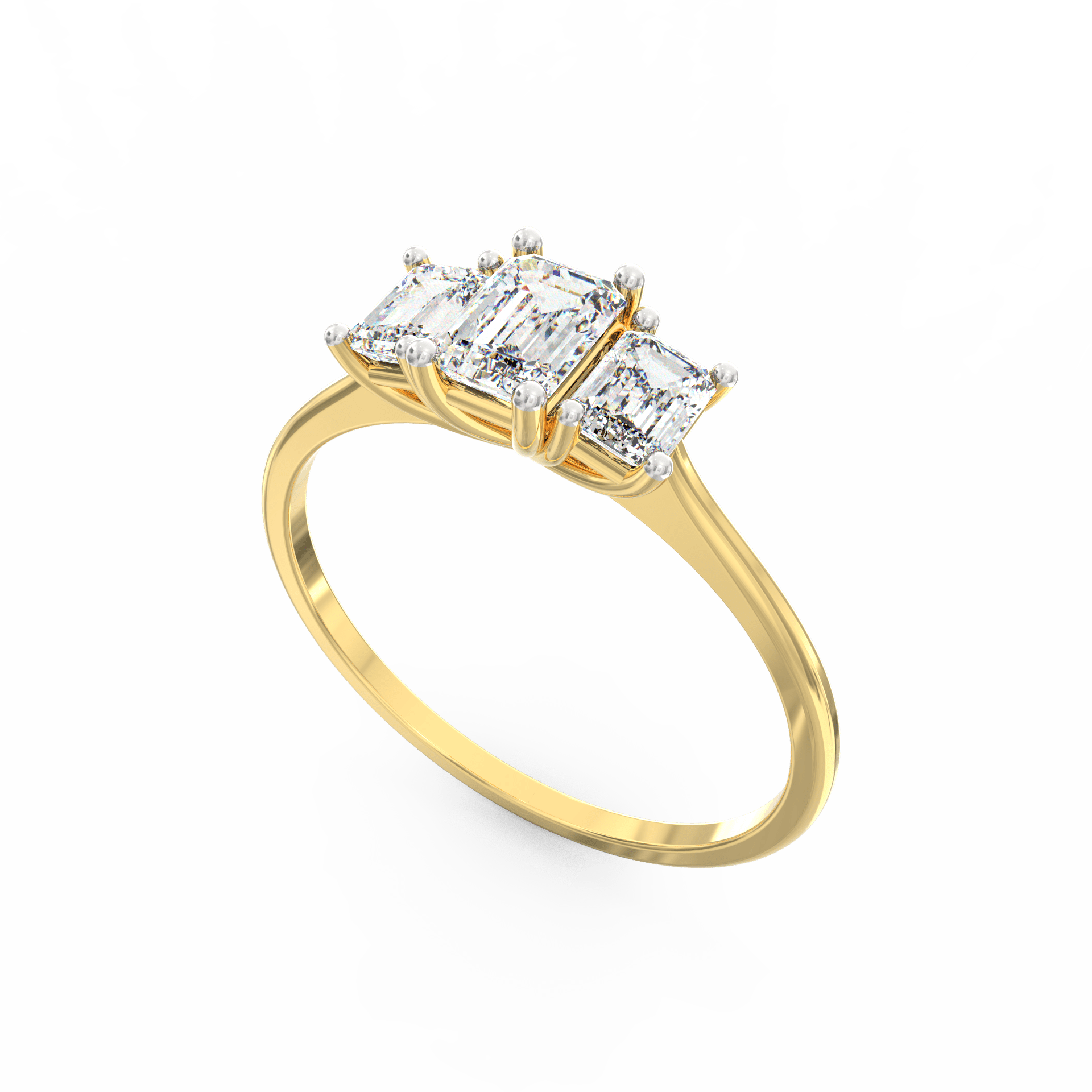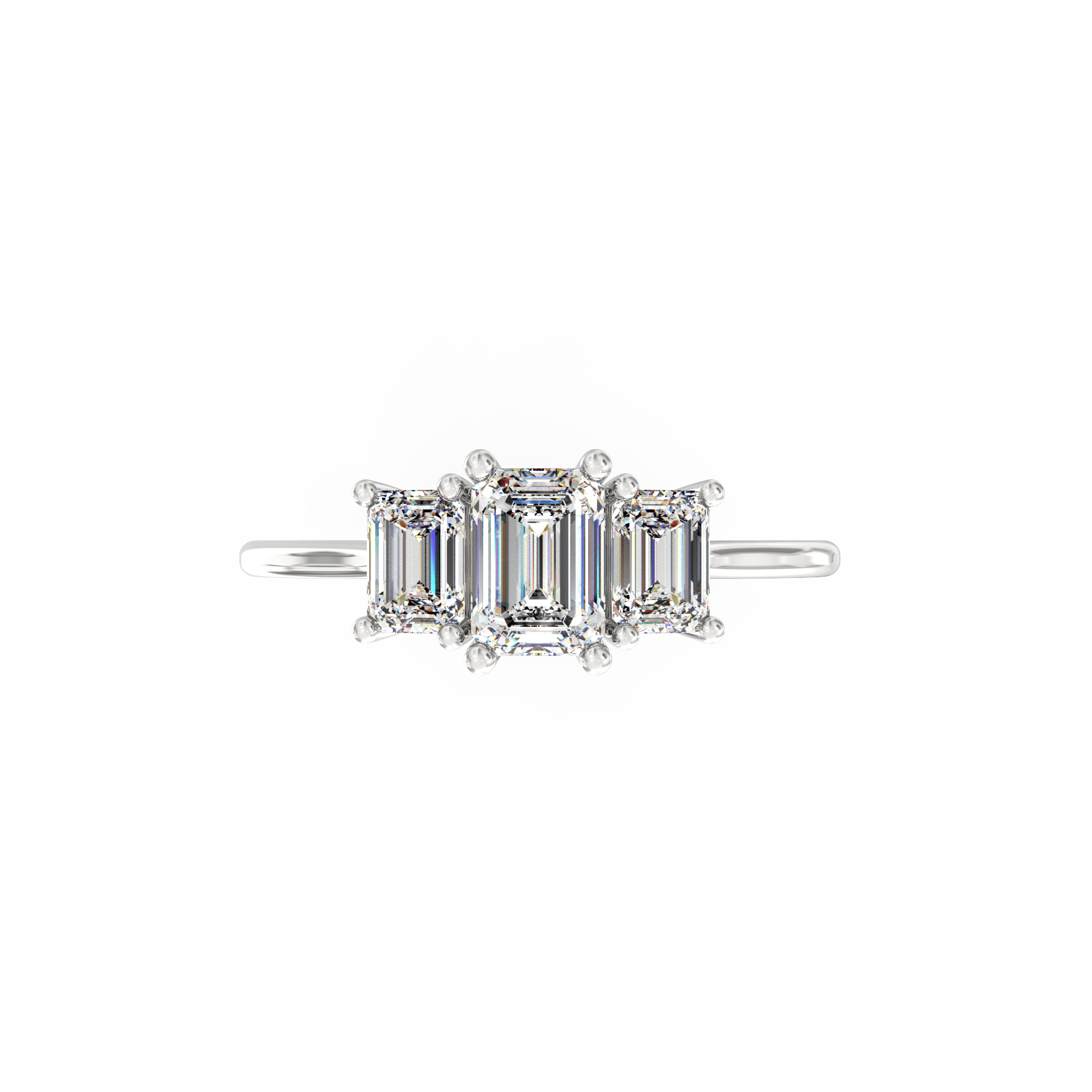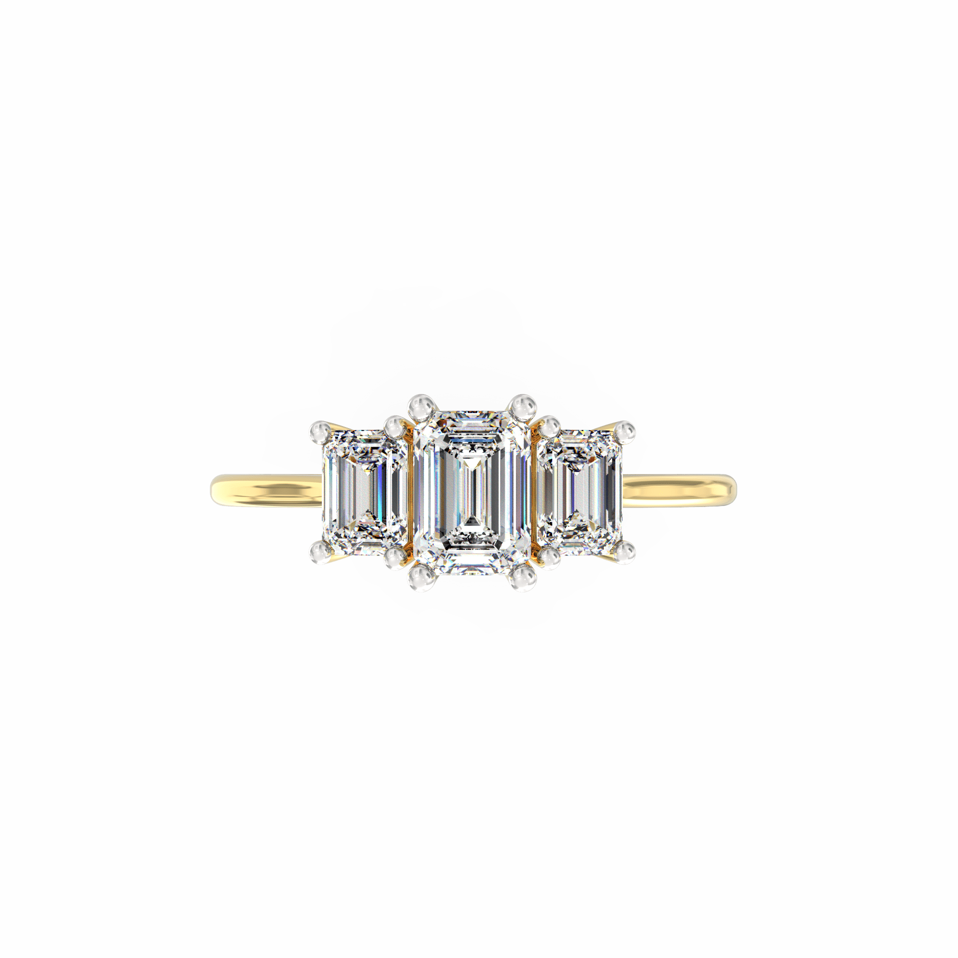 Indulge in timeless luxury with the Ayanika diamond ring, a masterpiece featuring an exquisite emerald-cut diamond flanked by two stunning cushion-cut diamonds. The central emerald-cut diamond is renowned for its captivating brilliance and sophisticated elegance, while the cushion-cut diamonds add a touch of classic charm and sparkle. This exquisite design is set in a beautifully crafted band, ensuring that each diamond is showcased to its fullest potential. Perfect for special occasions or as a statement piece, the Ayanika diamond ring epitomizes grace and sophistication. Elevate your jewelry collection with this luxurious piece that combines modern flair with traditional craftsmanship.