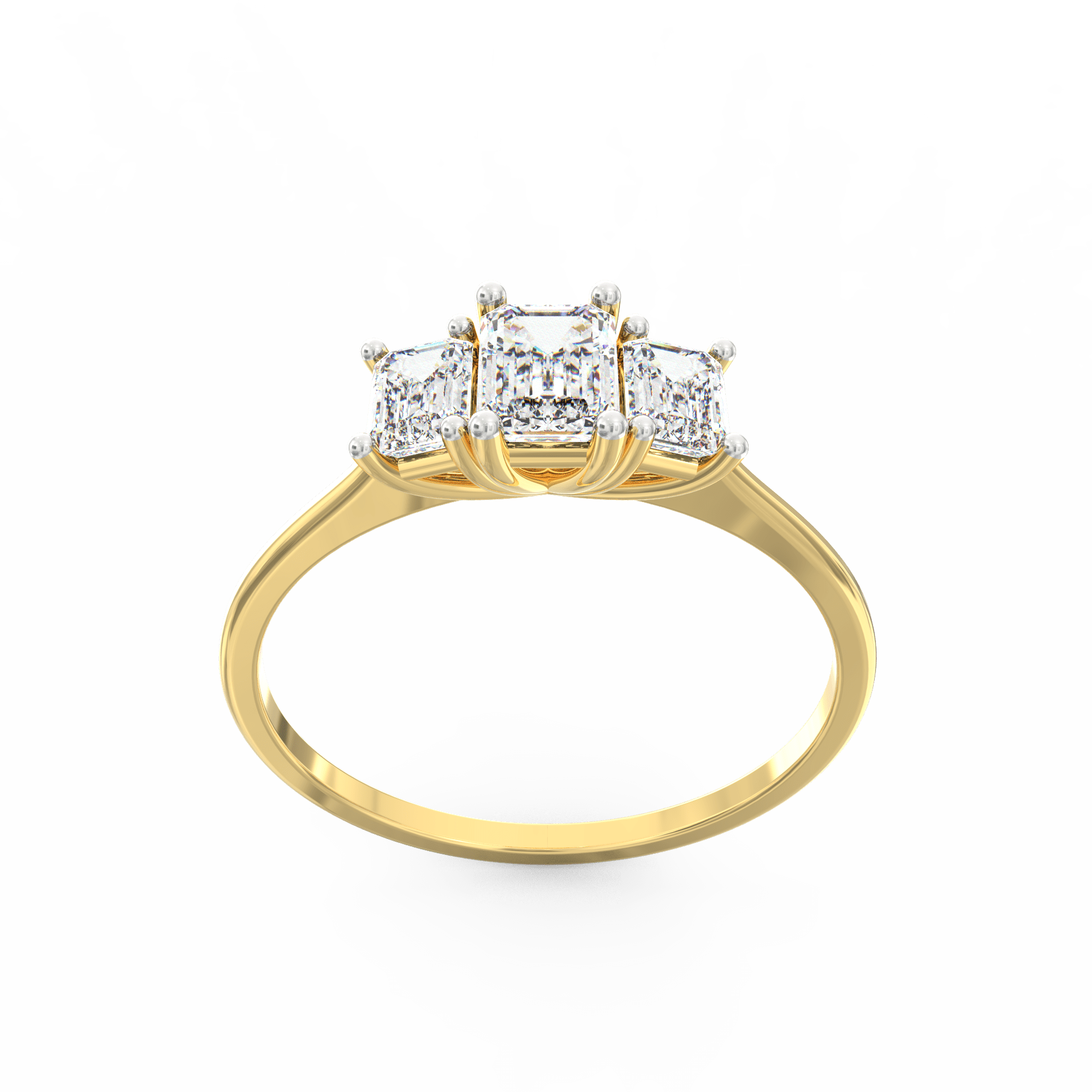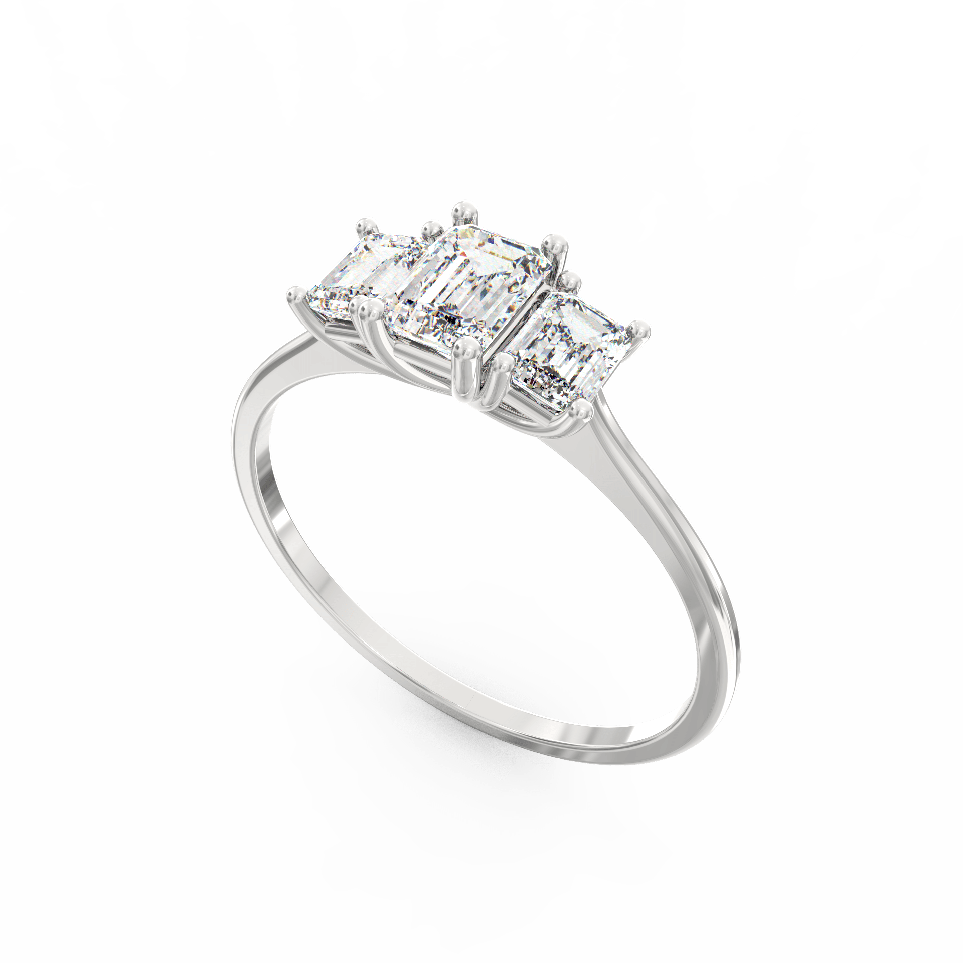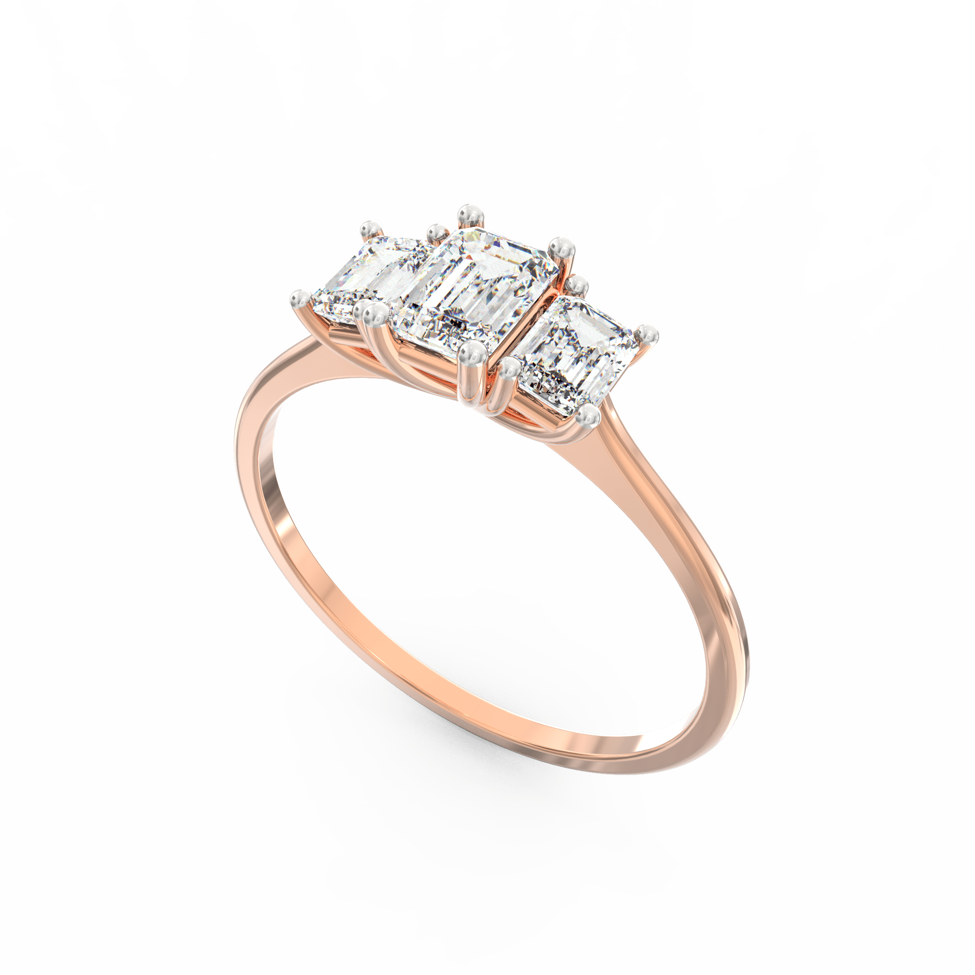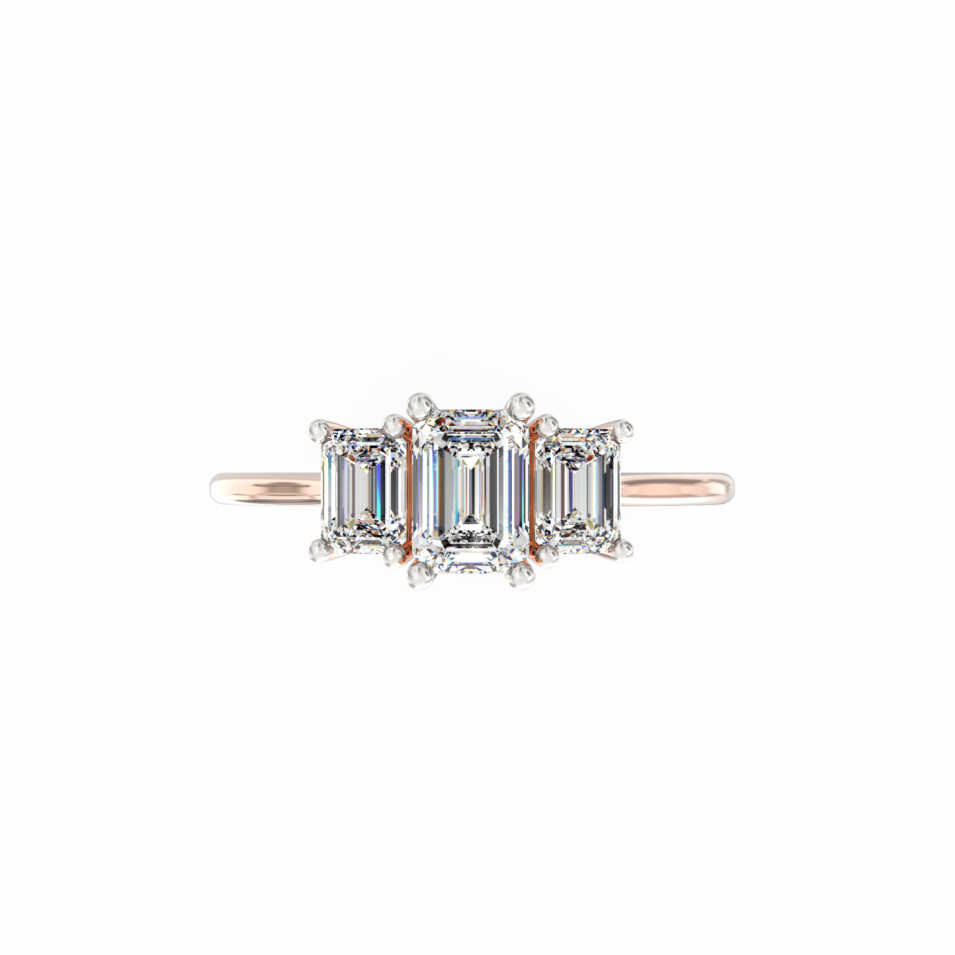 Indulge in timeless luxury with the Ayanika diamond ring, a masterpiece featuring an exquisite emerald-cut diamond flanked by two stunning cushion-cut diamonds. The central emerald-cut diamond is renowned for its captivating brilliance and sophisticated elegance, while the cushion-cut diamonds add a touch of classic charm and sparkle. This exquisite design is set in a beautifully crafted band, ensuring that each diamond is showcased to its fullest potential. Perfect for special occasions or as a statement piece, the Ayanika diamond ring epitomizes grace and sophistication. Elevate your jewelry collection with this luxurious piece that combines modern flair with traditional craftsmanship.