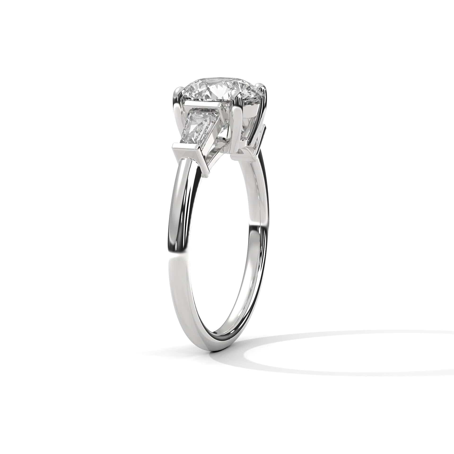 The Soraya Solitaire Ring embodies balance, beauty, and boldness. At its heart is a stunning 2.00 carat round lab-grown diamond — precision-cut and securely held by four elegant prongs. Flanking this centerpiece are two perfectly tapered baguette diamonds, totaling 0.44 carats, creating a clean, architectural silhouette. Together, the three stones represent the past, present, and future — a timeless motif for lasting love or personal evolution.