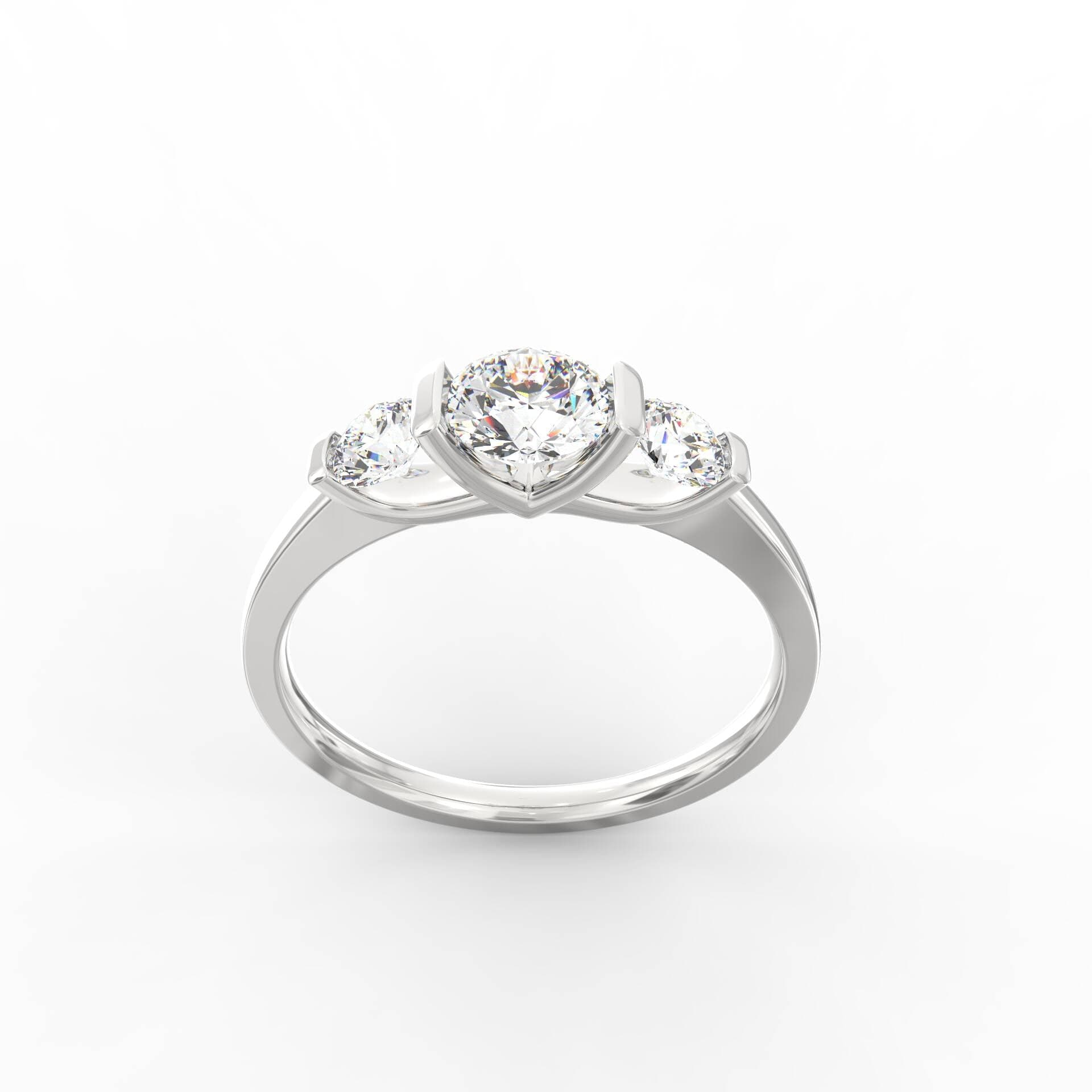 Crafted to tell your story in three parts — past, present, and future — this three-stone lab-grown diamond ring is a modern heirloom. At its center sits a 0.63 Ct round diamond, flanked by two 0.35 Ct diamonds on either side, totalling 1.33 carats of brilliance. Each stone is secured with sleek bar prongs that blend into the tapered BIS Gold band, offering clean lines and timeless grace.