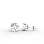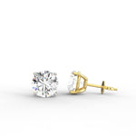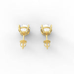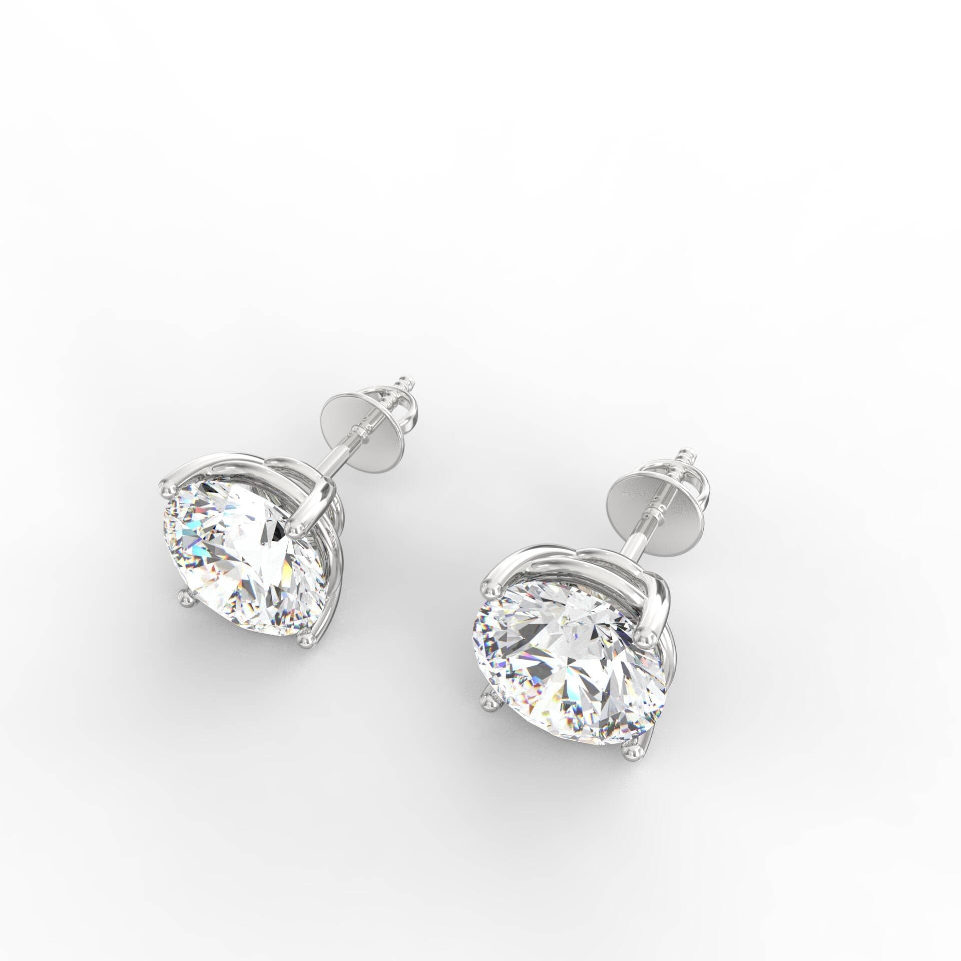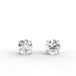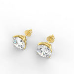 Timeless in design, these stud earrings feature round solitaire stones set in classic four-prong settings. The design emphasizes maximum light reflection, showcasing the brilliance of the centerpiece from every angle. The basket-style mount and sleek profile lend a refined yet impactful presence to the earrings, making them a true wardrobe staple.