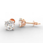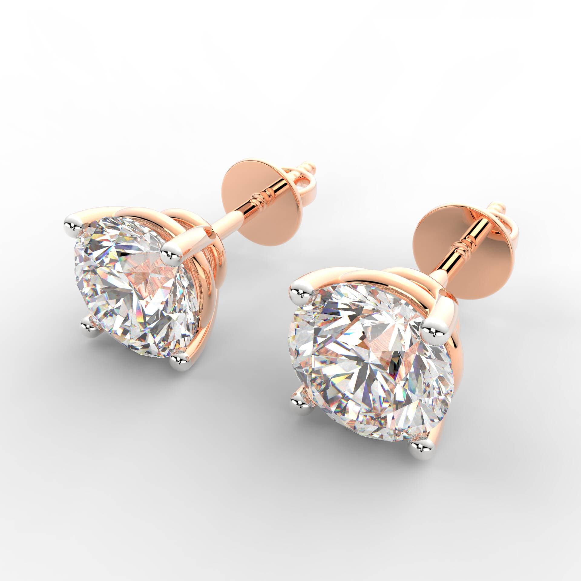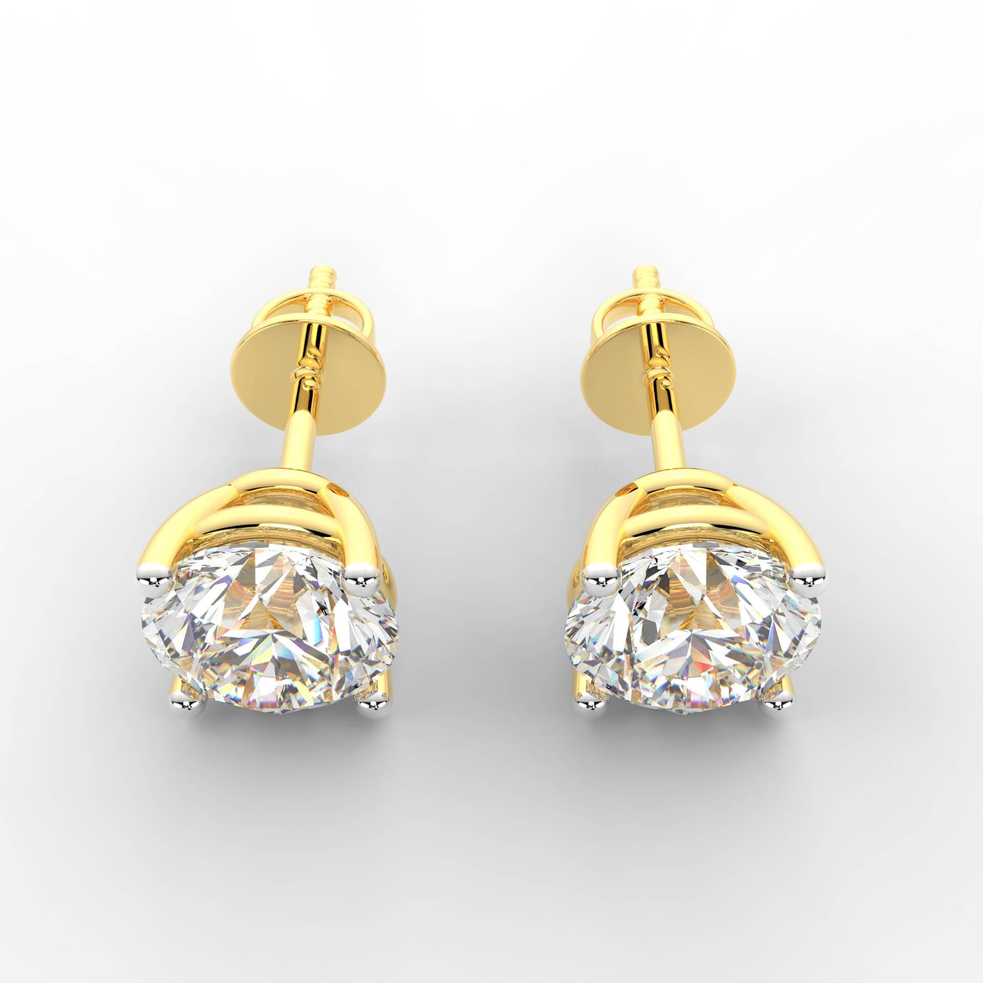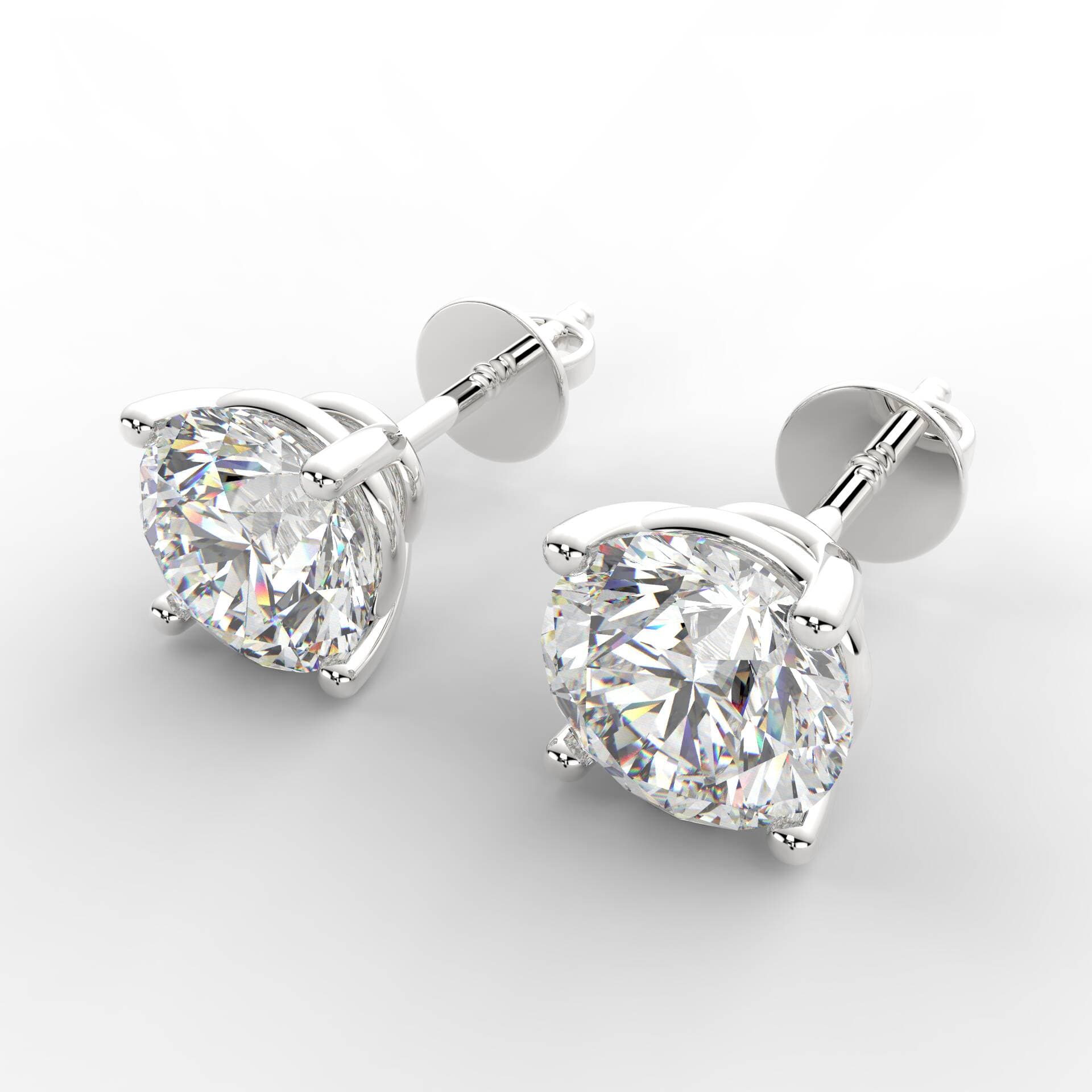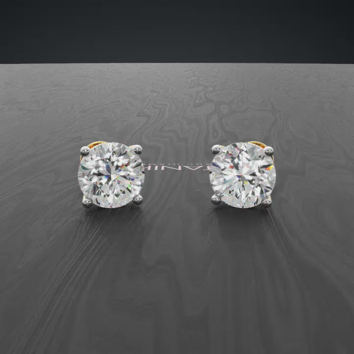 These classic stud earrings embody timeless elegance with their perfectly cut round stones, set in a traditional four-prong mount. Their clean, symmetrical design highlights the brilliance and fire of the center stones, offering a versatile look that complements both casual and formal outfits. Designed for those who appreciate refined simplicity, these studs are a jewelry essential.