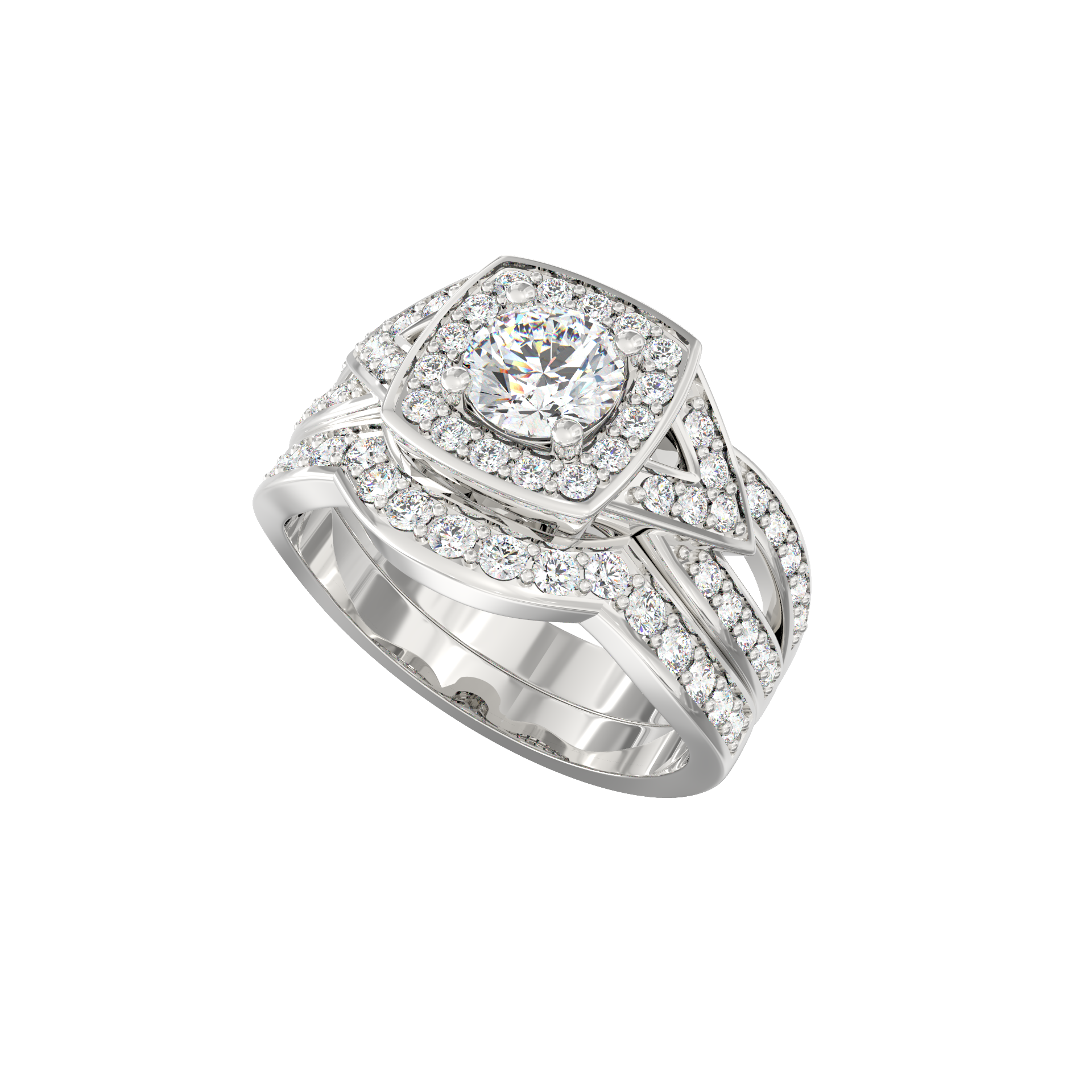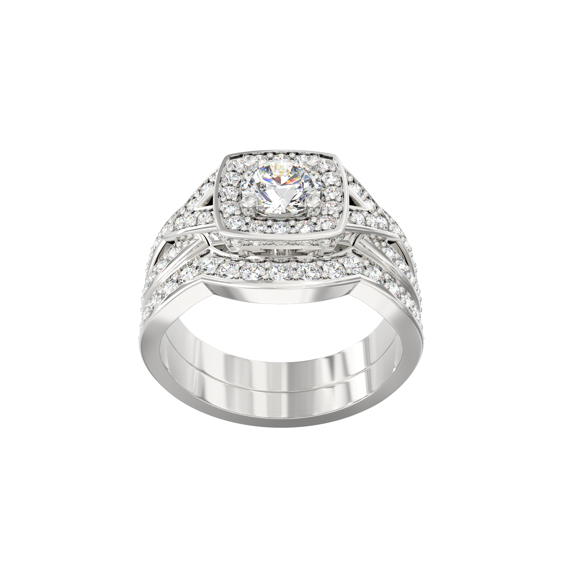 The Ardente lab grown diamond halo ring blends passion, detail, and refined structure. Inspired by the Italian word “Ardente,” meaning warm intensity, this design highlights the connection between emotion and craft. At its center sits a 0.50 Ct round-cut lab-grown diamond, framed by a cushion-shaped halo that softens the lines while adding depth. Since the halo includes 63 finely placed accent stones, the ring creates a glowing field of light that moves gently with every gesture.