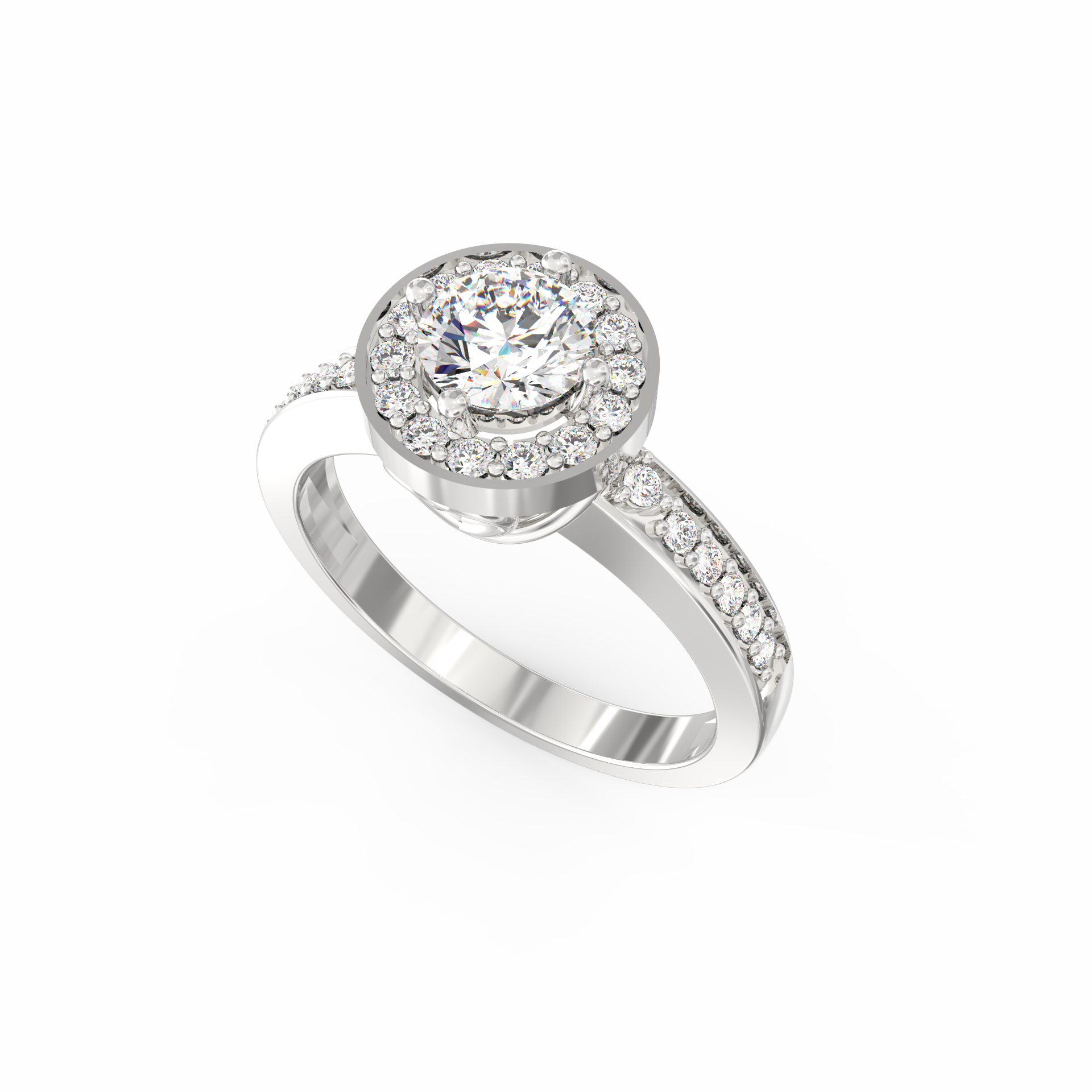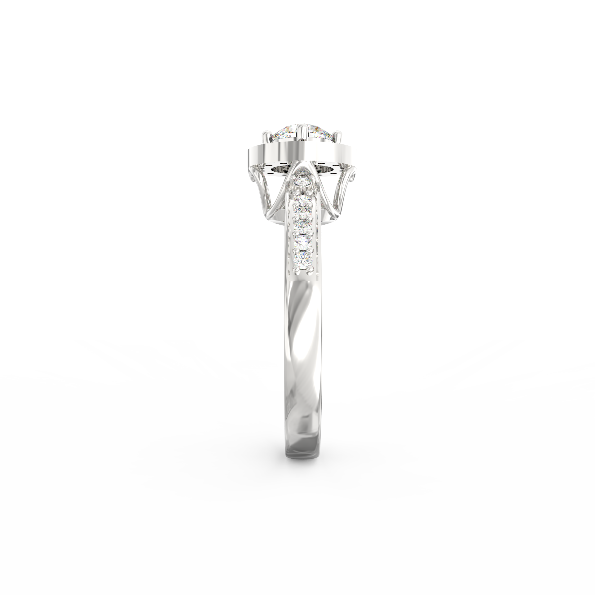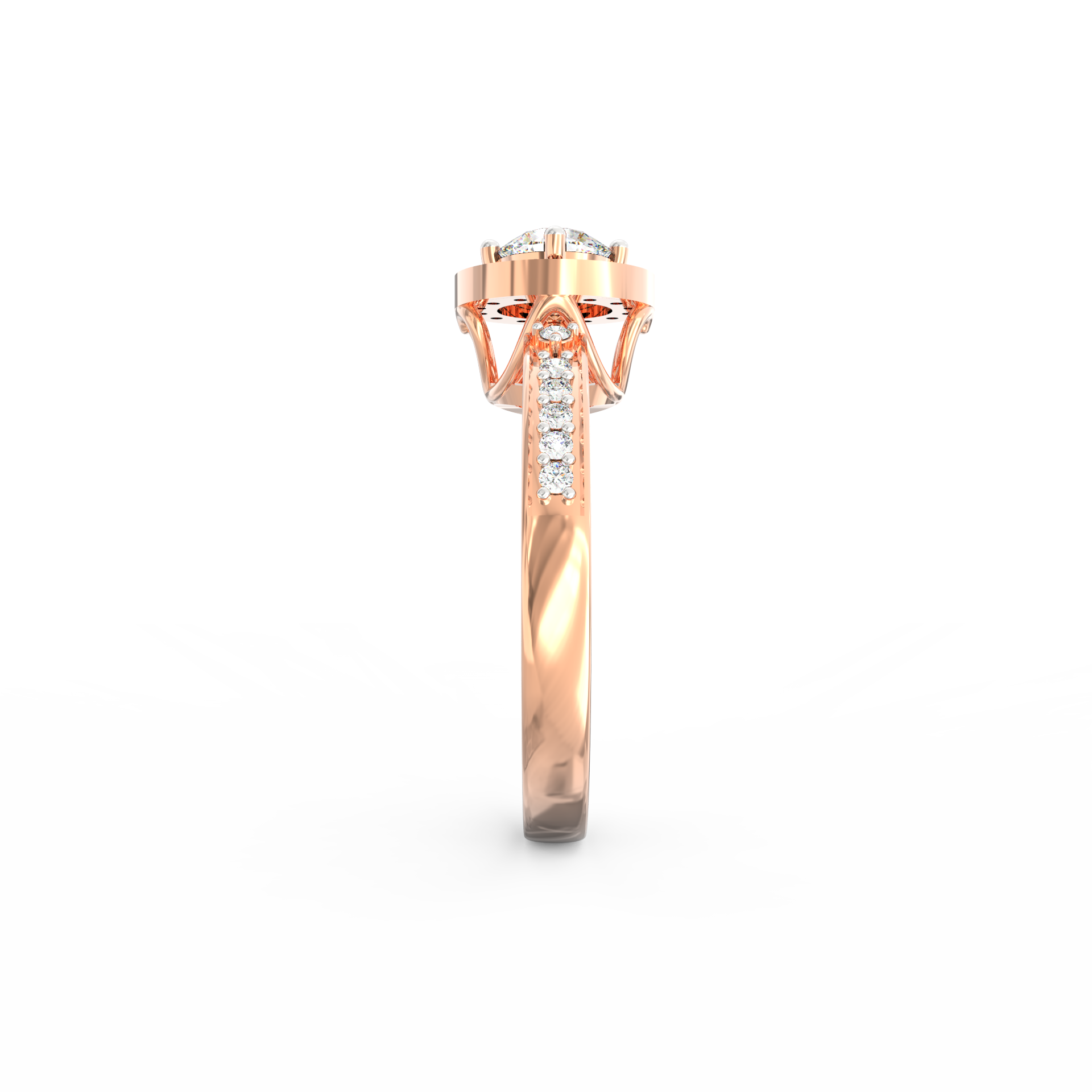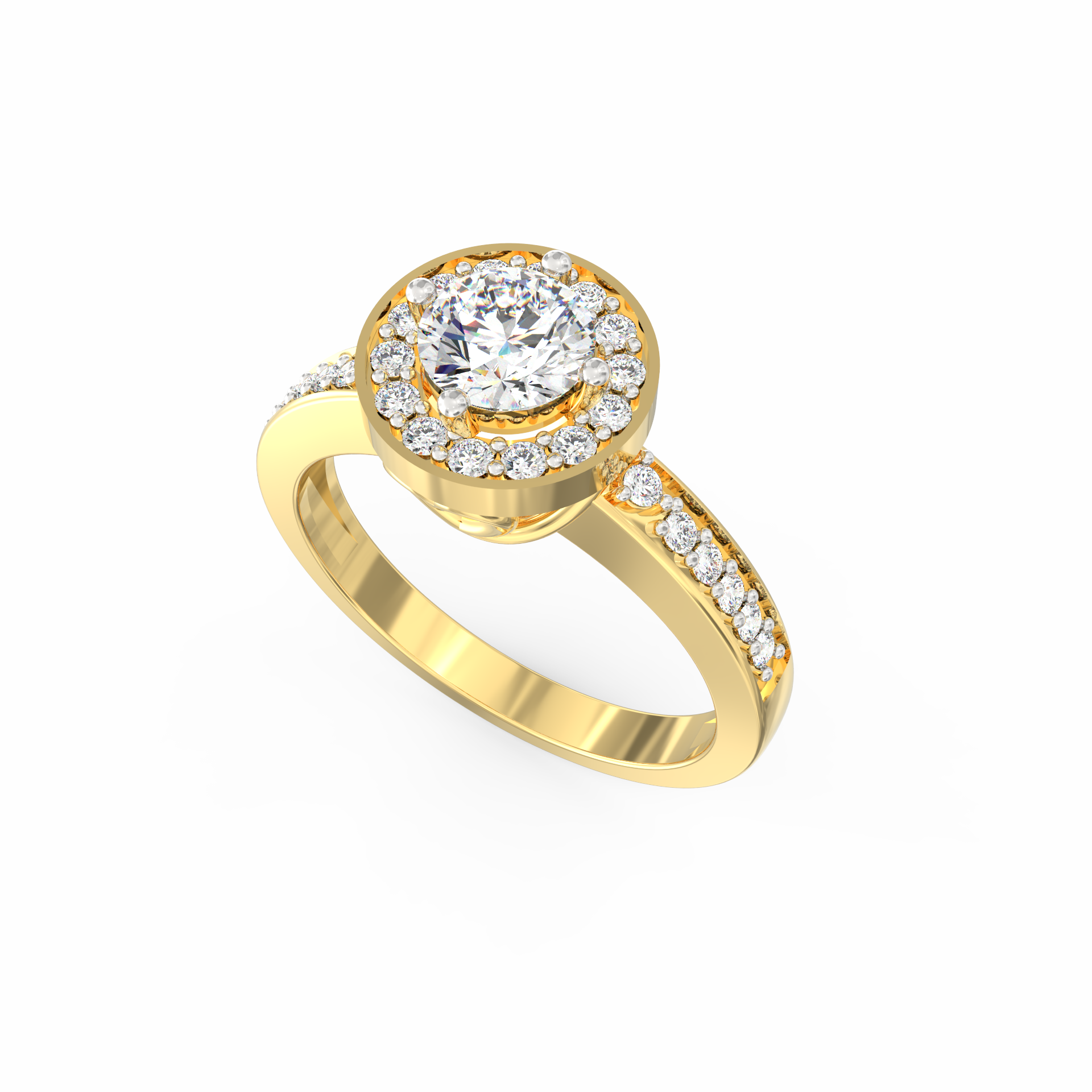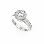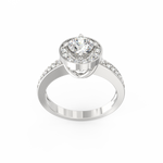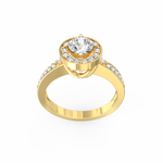 The Auretta lab grown diamond halo ring blends soft radiance with graceful structure, making it a beautiful choice for women who appreciate refined detail. Inspired by the Italian word “Auretta,” which means “little golden one,” this design expresses warmth, clarity, and quiet confidence. At the center rests a 0.75 Ct round lab-grown diamond, shaped to capture light with a steady and natural brilliance. Surrounding it, a marquise-shaped halo with 14 accent stones creates a smooth outline that enhances the ring’s delicate geometry.