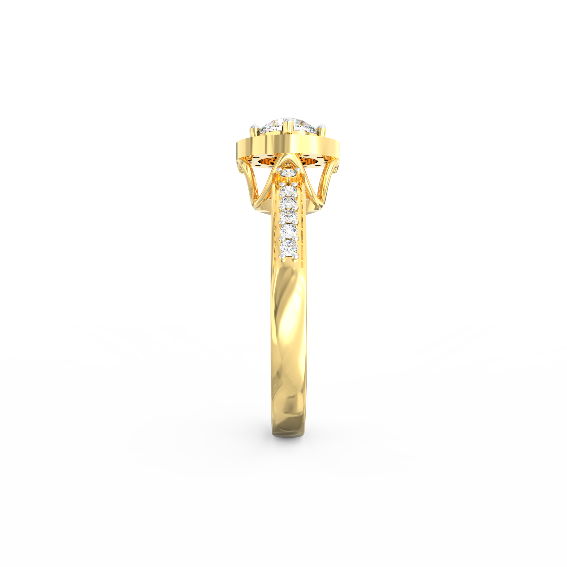 Crafted in BIS Hallmarked Gold, the band offers a polished finish that balances the sparkle above it. Because each diamond carries VS2+ clarity and G+ color, the ring maintains a bright, clean look that feels uplifting in any light. The arrangement of stones is compact yet expressive, giving the piece a charming profile that works for both daily wear and meaningful celebrations.