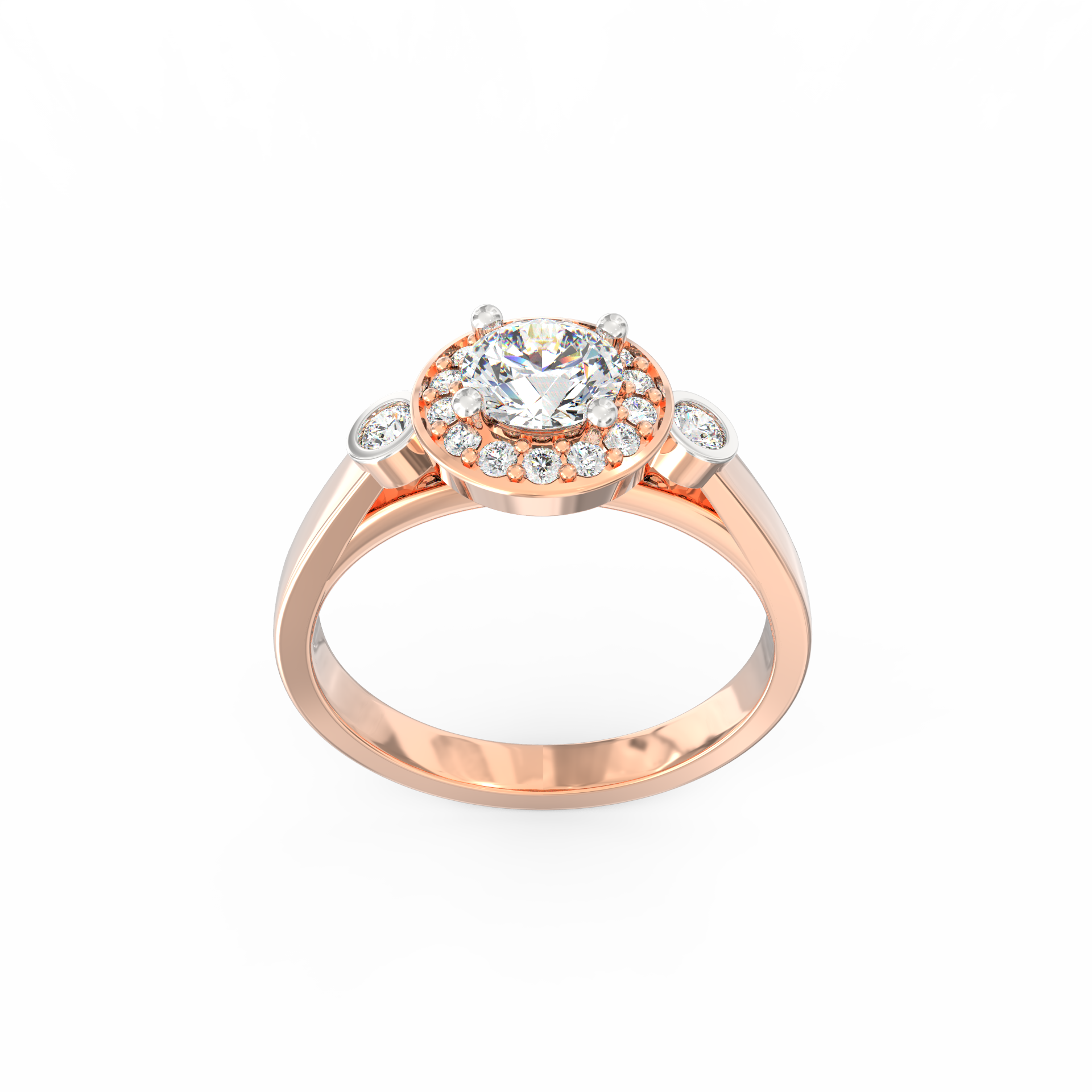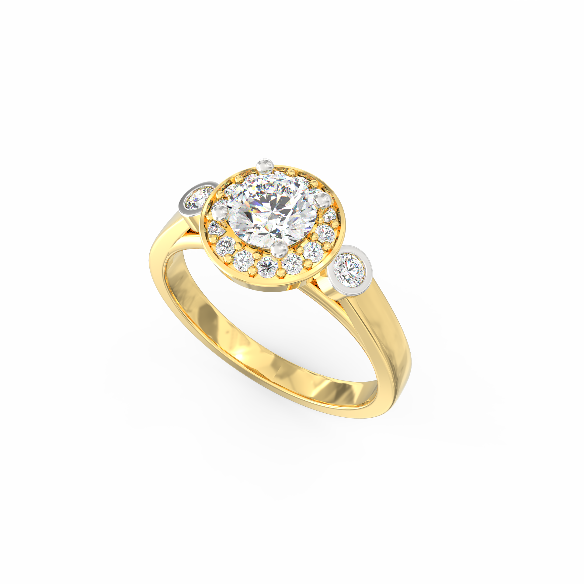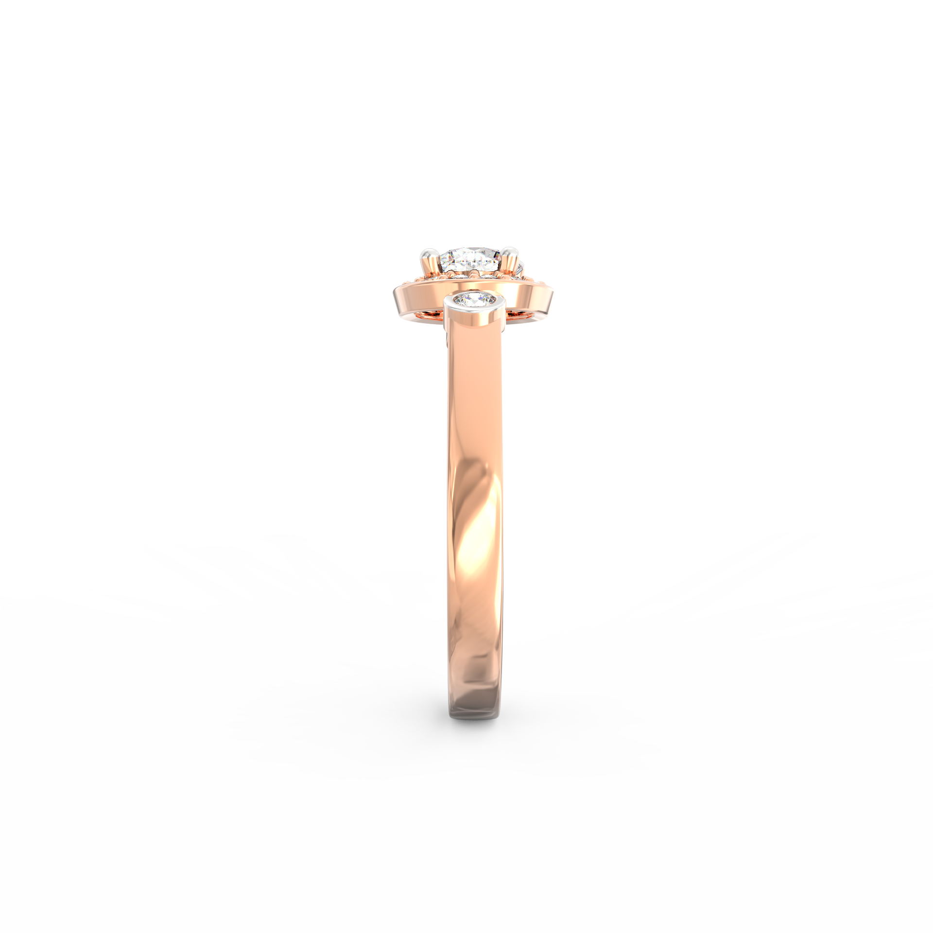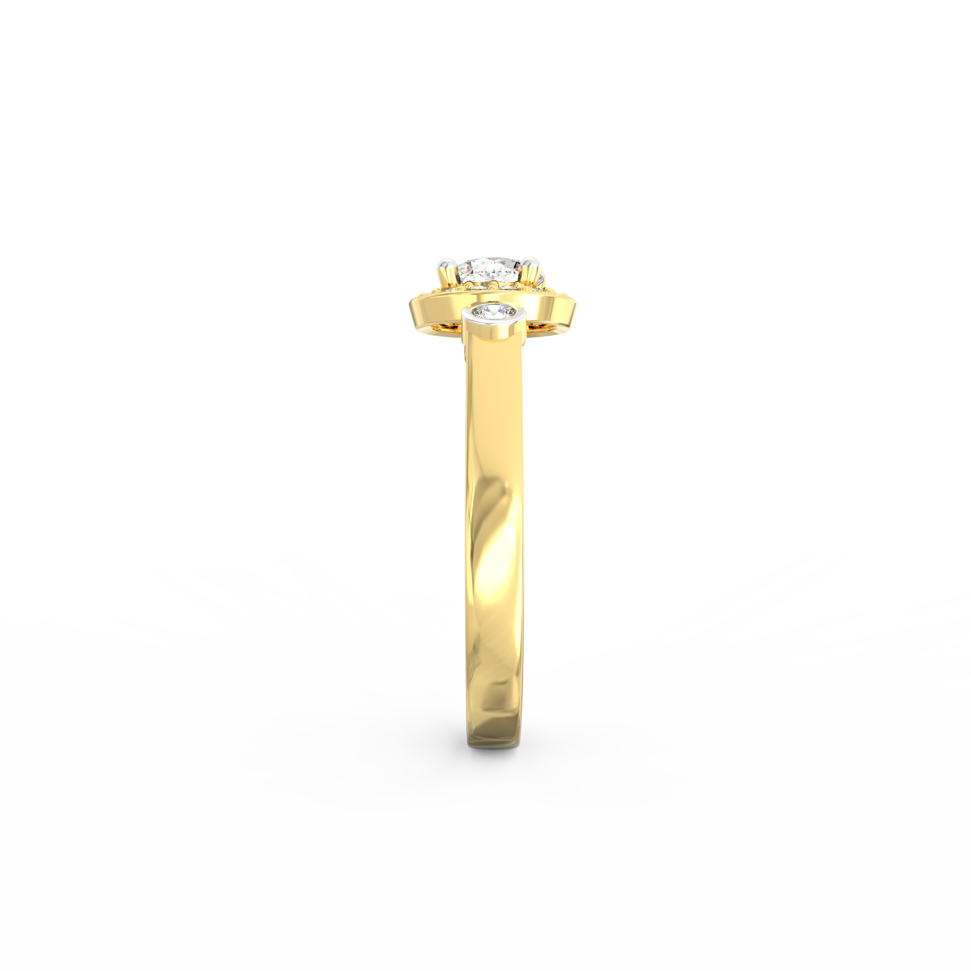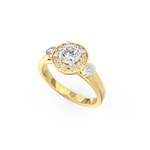 Two bezel-set diamonds placed along the band add a unique touch, giving the ring an artistic profile that stands out without feeling loud. The smooth BIS Hallmarked Gold band enhances the setting while keeping the overall design balanced and graceful. Since every stone carries VS2+ clarity and G+ color, the sparkle remains consistent across the entire surface.