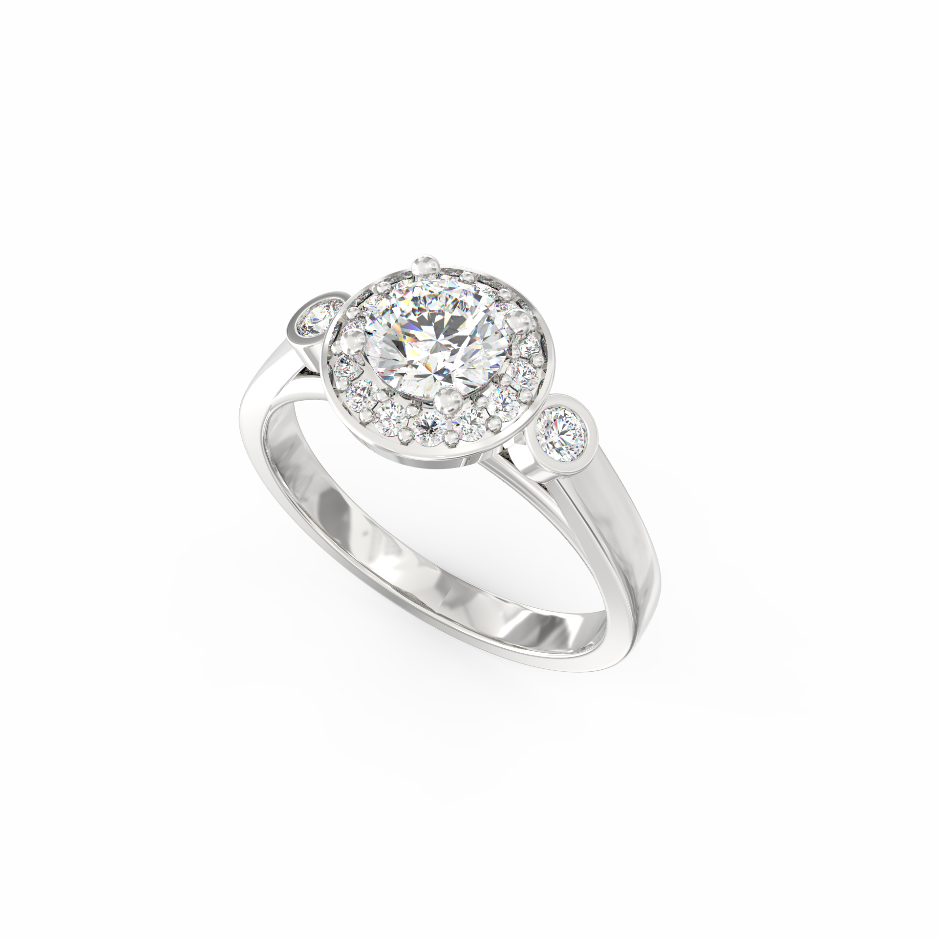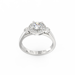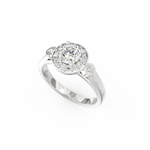 The Lucina lab grown diamond halo ring is created for women who appreciate soft sparkle with meaningful detail. Inspired by Lucina, the Roman goddess of light, this design reflects clarity, hope, and gentle radiance. At the center rests a 0.50 Ct round-cut lab-grown diamond, framed by 16 accent stones that form a glowing halo. Because the halo amplifies the central diamond’s shine, the ring feels bright and full of character.