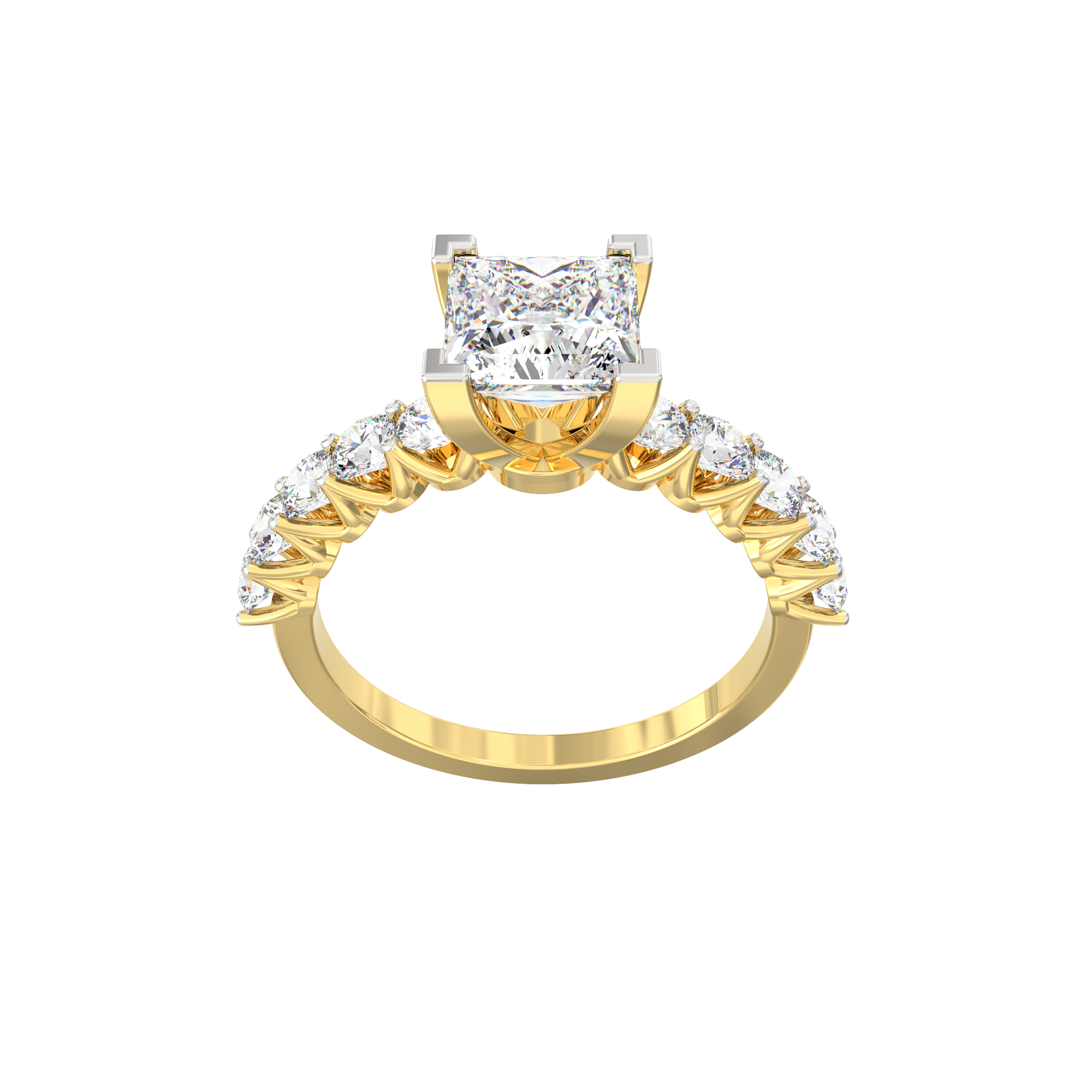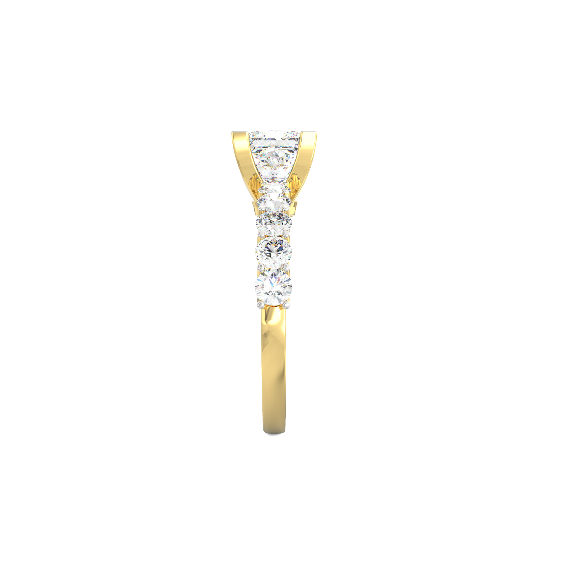 The Selene lab grown diamond ring brings together clarity, structure, and graceful charm. Inspired by Selene, the Greek goddess of the moon, this ring reflects a calm glow and a sense of quiet strength. At its center sits a 1.20 Ct princess-cut lab-grown diamond, known for its crisp edges and bright reflection. The stone rises gently from a four-prong setting, allowing clean lines that highlight its modern form.