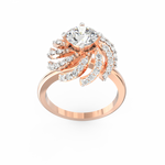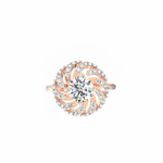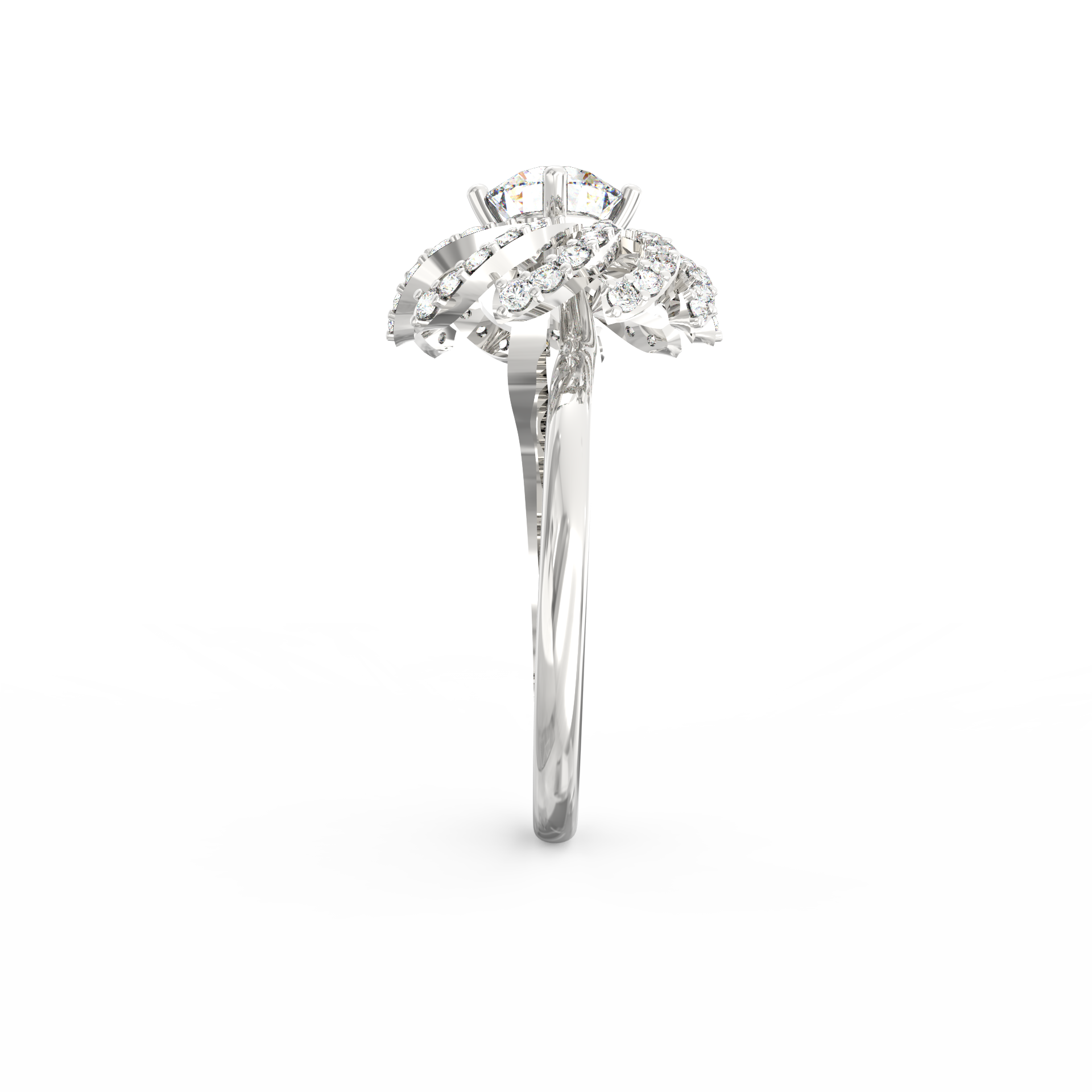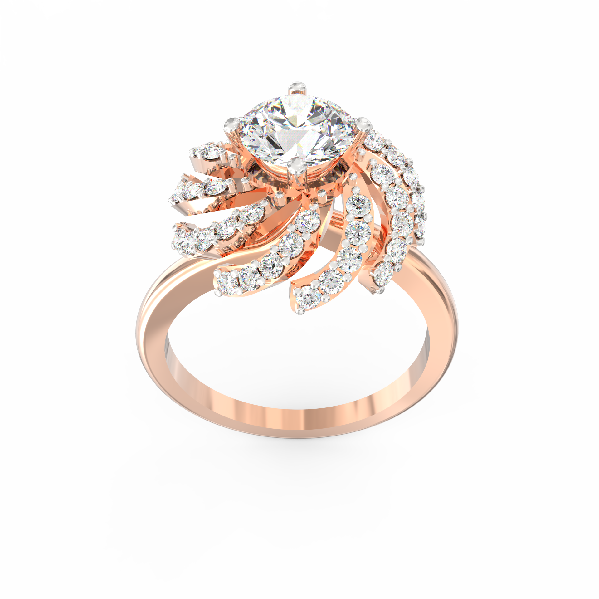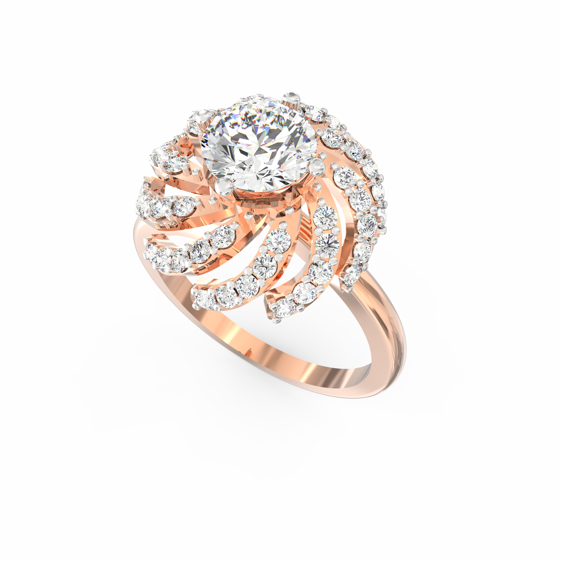 The Vortice lab grown diamond swirl ring brings together movement, form, and modern style. Inspired by the Italian word “Vortice,” meaning whirlwind, the design captures the feeling of flow and energy. At the center sits a 0.75 Ct round-cut lab-grown diamond that shines with clarity and structure. Surrounding it, 50 smaller diamonds trace an expressive swirl, forming a pattern that looks alive with motion. Each stone reflects light in a clean and steady rhythm, adding depth and character to the piece.