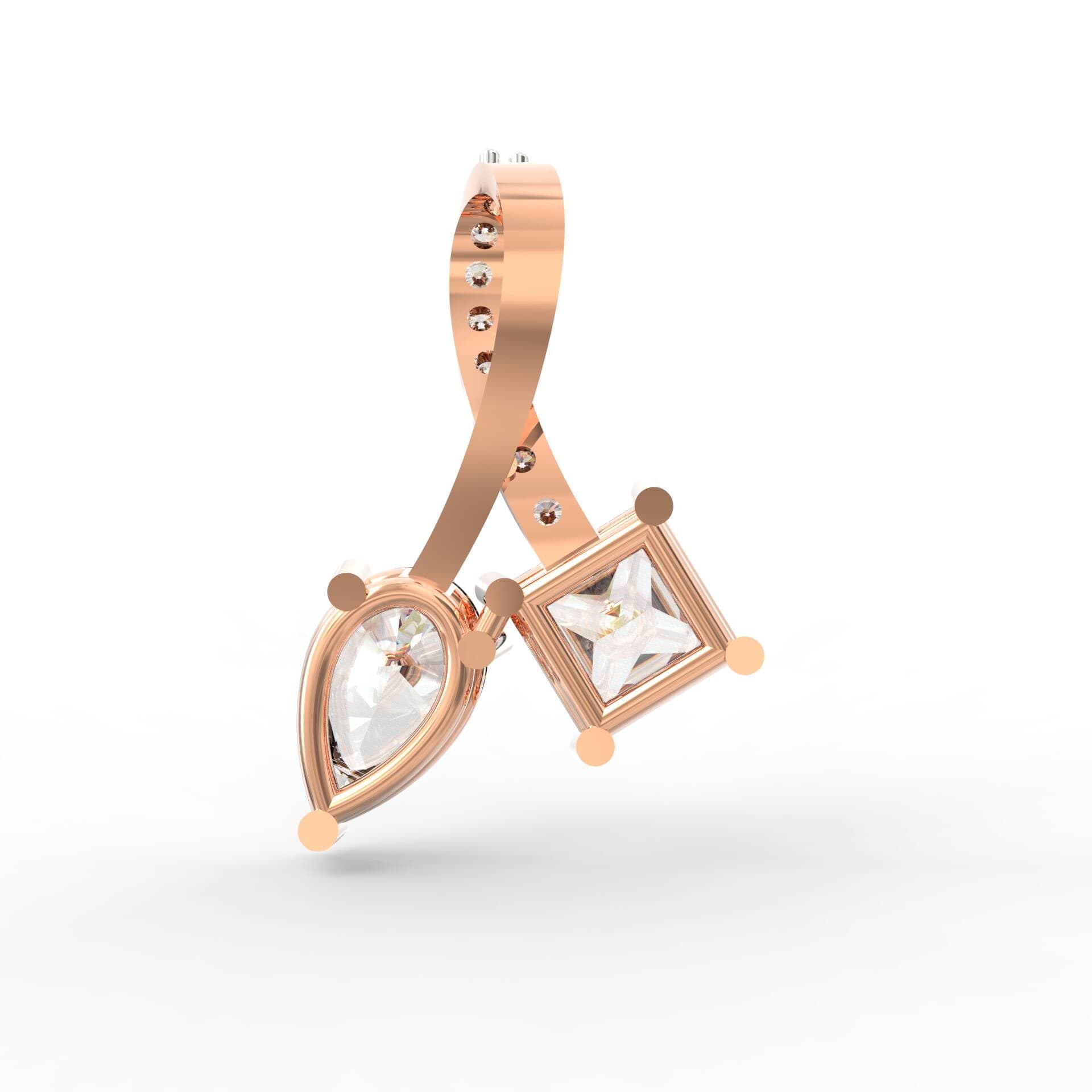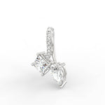 Introducing the Celeste Embrace Pendant – a timeless masterpiece that celebrates the union of modern artistry and classic elegance. This pendant features a graceful crossover design encrusted with sparkling round diamonds, converging into a stunning composition of a 0.9 carat pear-shaped diamond and a 1 carat princess-cut diamond. Each diamond is crafted with VS clarity and F-G colour, offering exceptional brilliance.