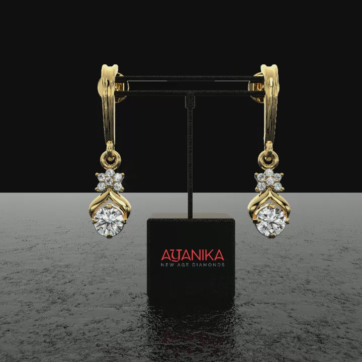 The Radiant Cascades Dangling Diamond Earrings blend fluid motion with timeless sparkle. Each earring showcases a 0.25 Ct round lab grown diamond that radiates clarity and charm. Below it, smaller lab grown diamonds cascade gracefully, adding rhythm and brilliance to every movement.